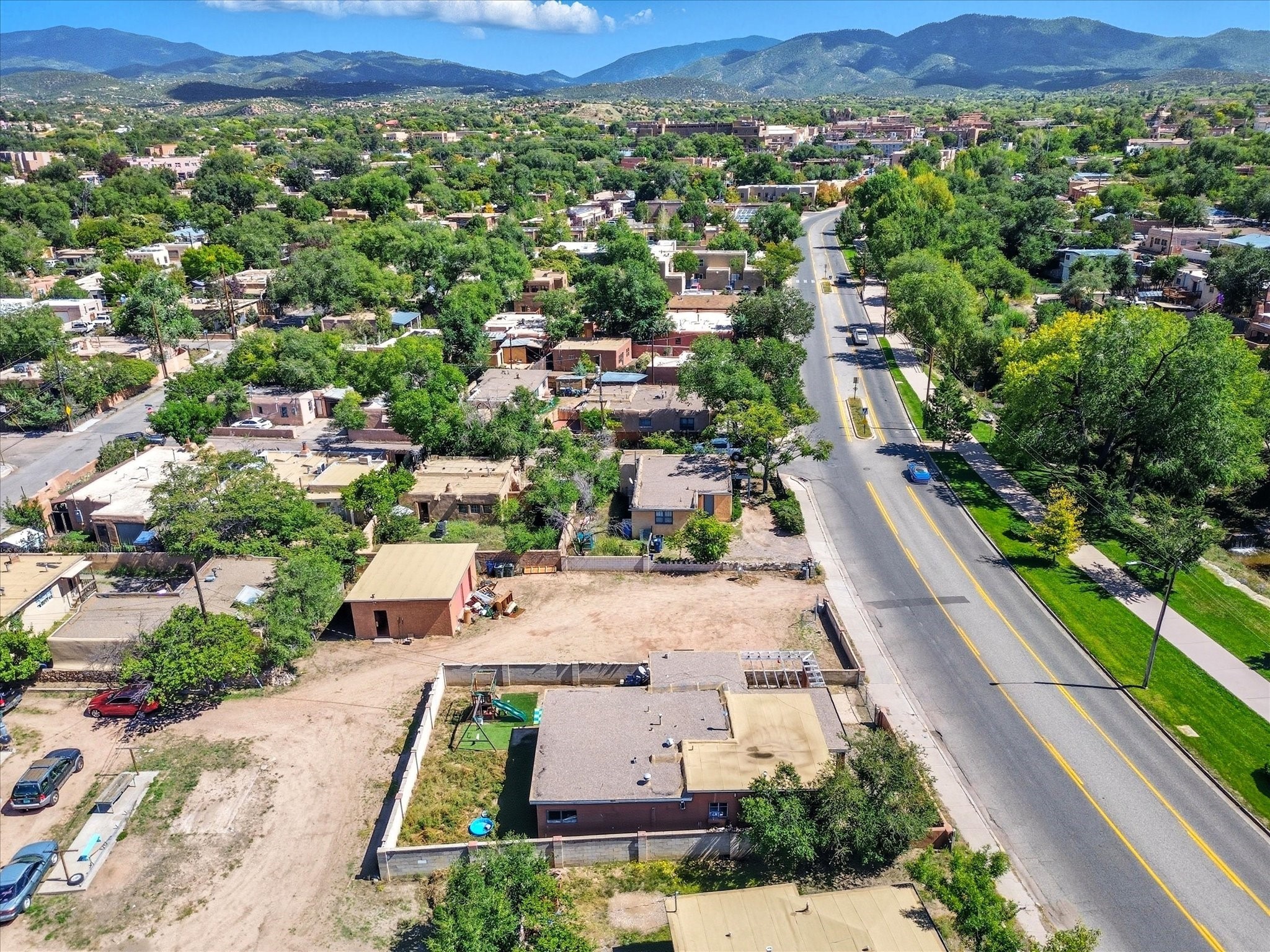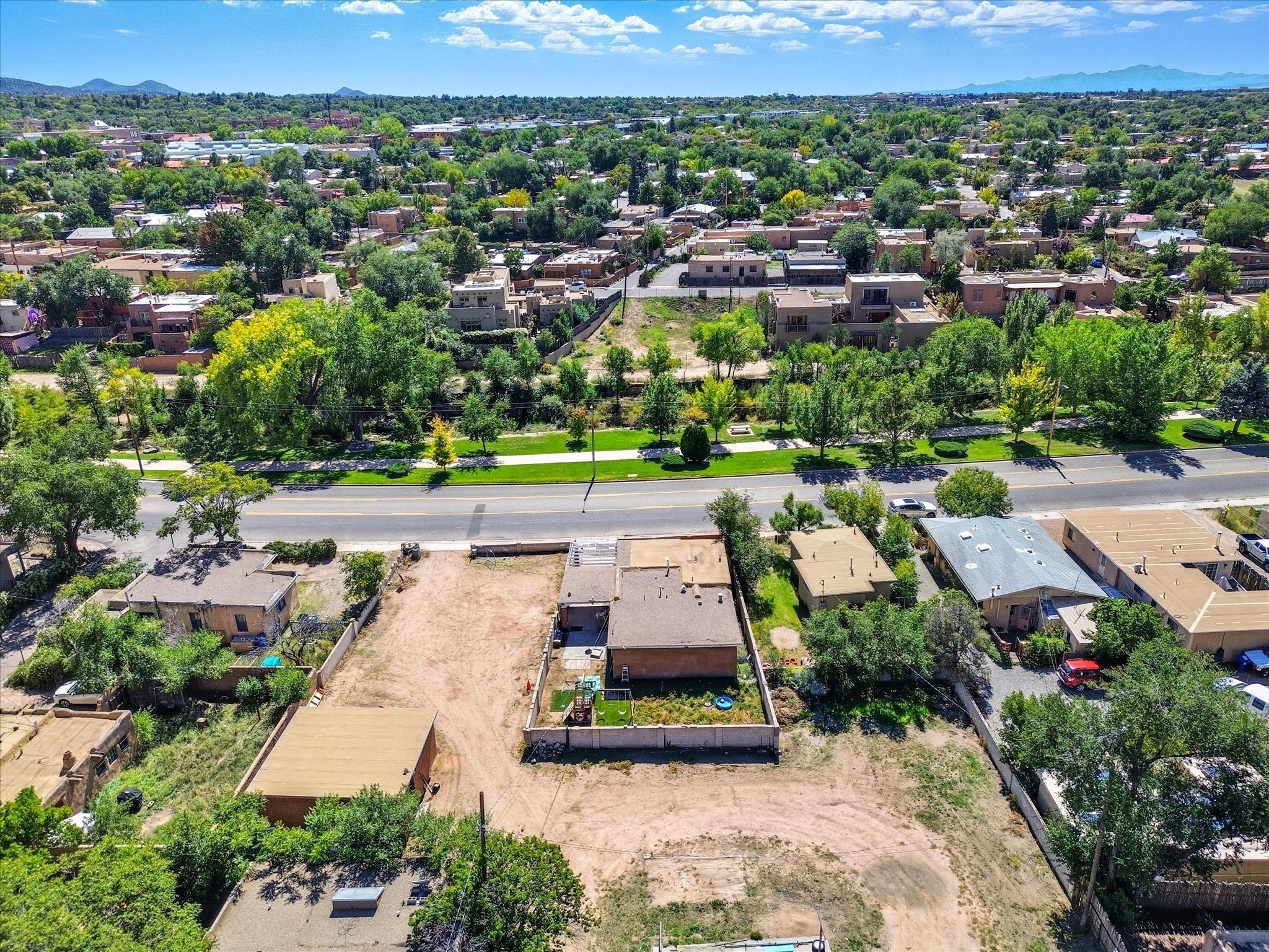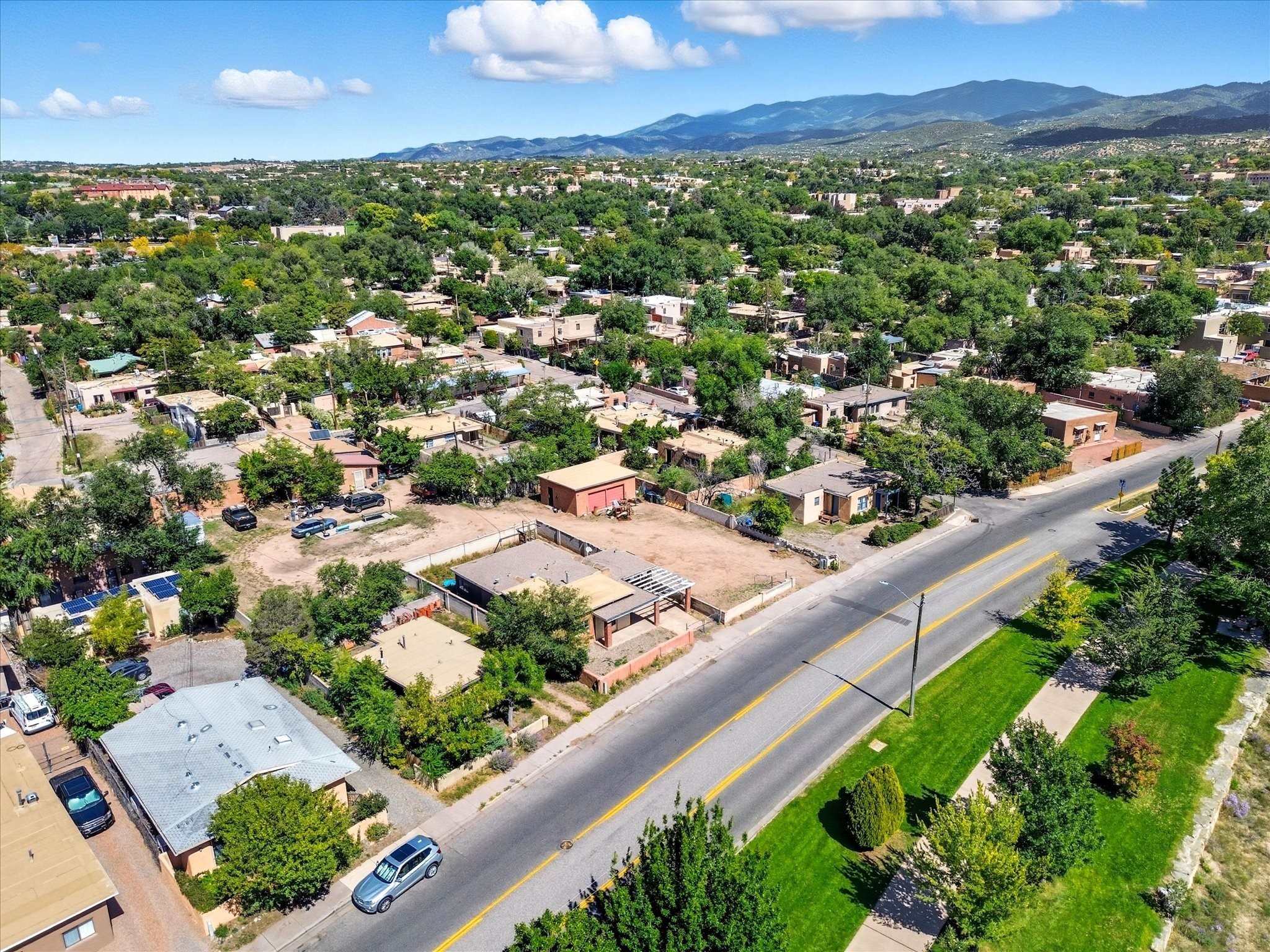In one of Santa Fe's coveted historic corridors, across from the Santa Fe River, minutes from the Plaza, this home offers an exceptional opportunity to acquire a rare double-lot adobe estate. Price includes adjacent .25 acre lot. Spanning about .34 acres across two parcels, warmth and traditional design blend with the potential for a truly bespoke compound in the heart of the city. Imagine stepping out and seeing the gentle flow of the Santa Fe River just across the street, offering a peaceful green ribbon, soothing natural views, and a connection to Santa Fe history.This 1,391-sq ft home designed with a modest footprint was constructed in 1940, this home carries the patina of time--original details, generous ceiling heights, and the warm adobe-era bones that Santa Fe lovers covet, surrounded by ample space. The home itself is steeped in character, showcasing timeless wood and tile floors, a gas cooking range, and a gracious floor plan that reflects the spirit of historic Santa Fe. A welcoming covered porch sets the tone for intimate gatherings or quiet moments of reflection, while the expansive fenced yard provides a private sanctuary, ideal for curated gardens, outdoor dining under the stars, or future architectural visions.Recent upgrades, including new sewer lines, ensure the residence is well prepared for its next chapter. The presence of a 2 car garage adds a touch of convenience rarely found in this location. Yet it is the land itself--a true rarity in this highly prized area--that sets the stage for limitless possibilities, all within a short stroll of world-class galleries, fine dining, schools, shopping, and the cultural vibrancy of downtown Santa Fe. Whether you seek a charming adobe residence or a strategic investment, this represents more than a home; it is a heritage investment. The marriage of adobe authenticity, expansive grounds, and unmatched location offers the opportunity to craft a legacy property of distinction in treasured Santa Fe.