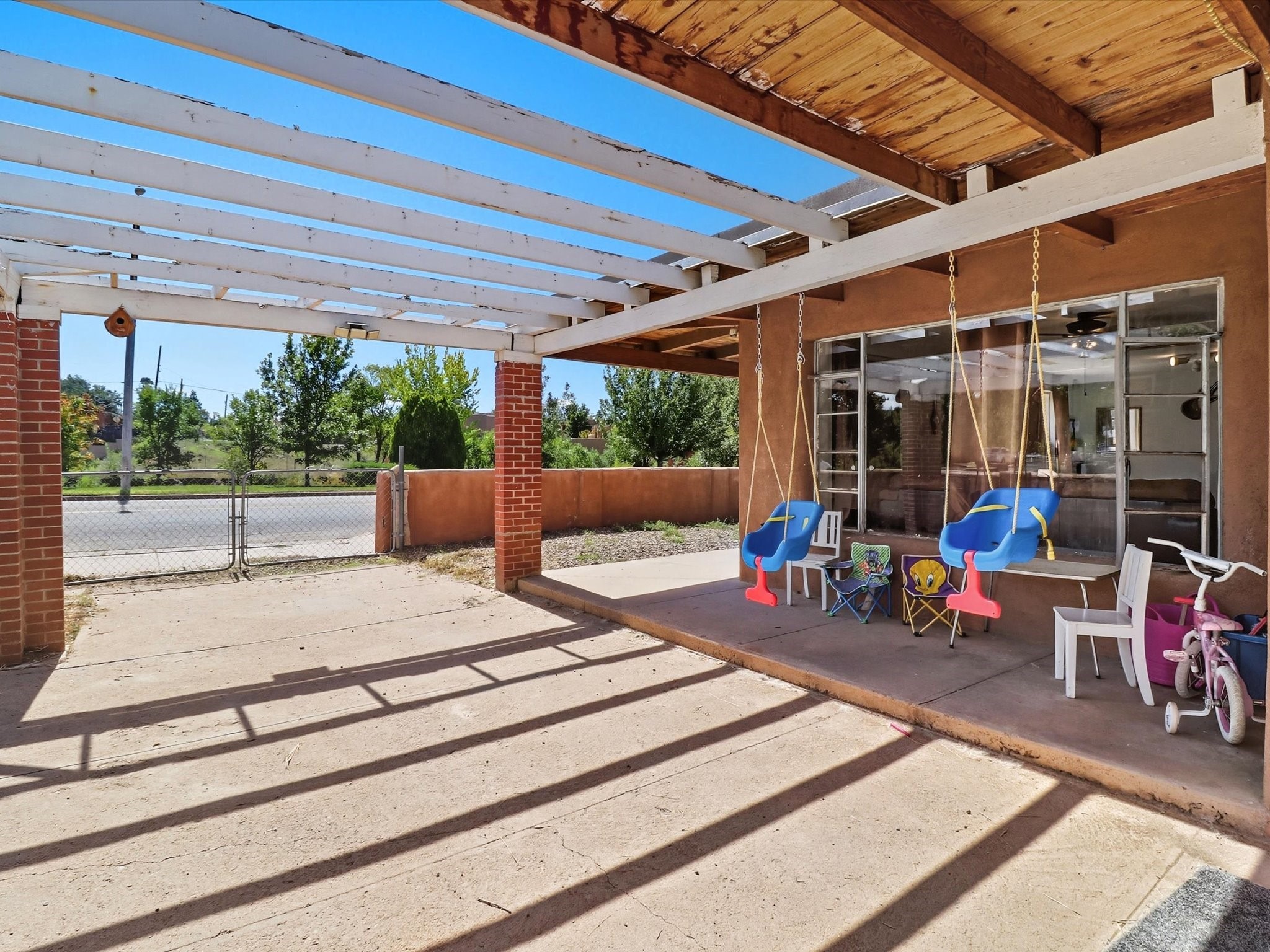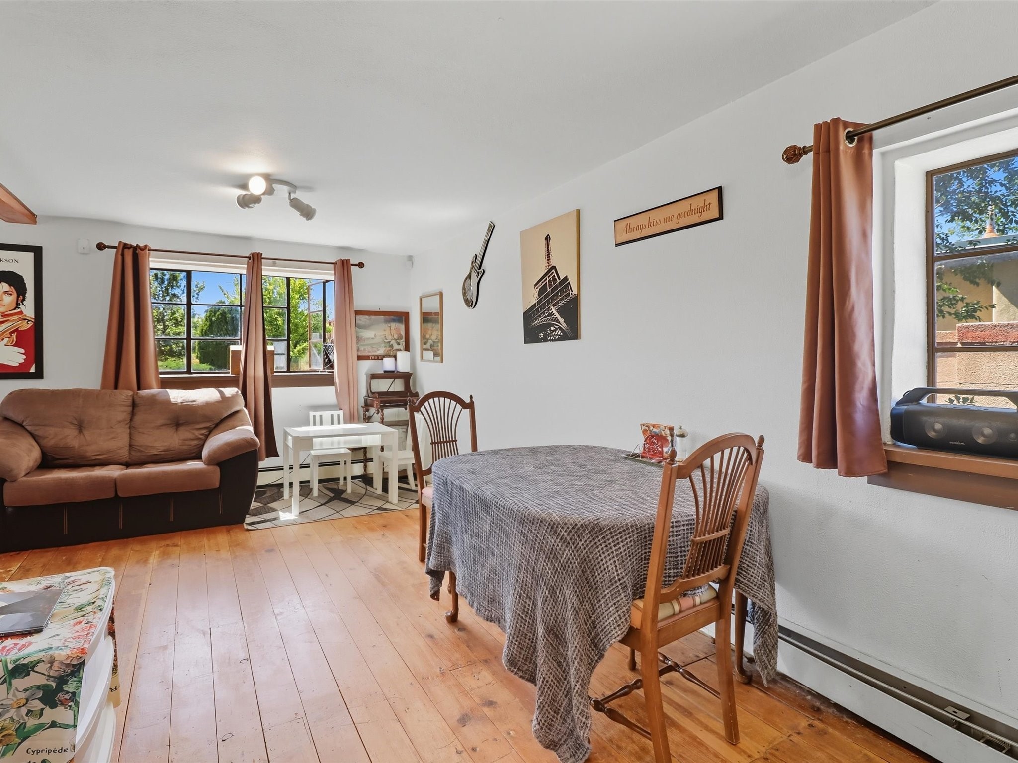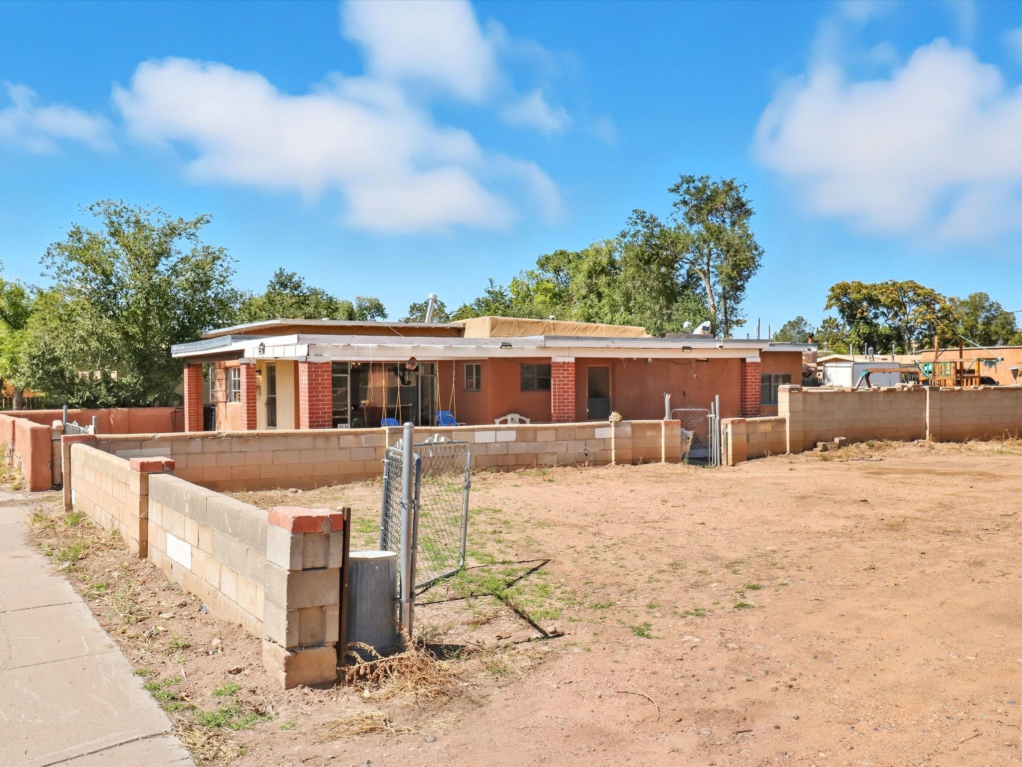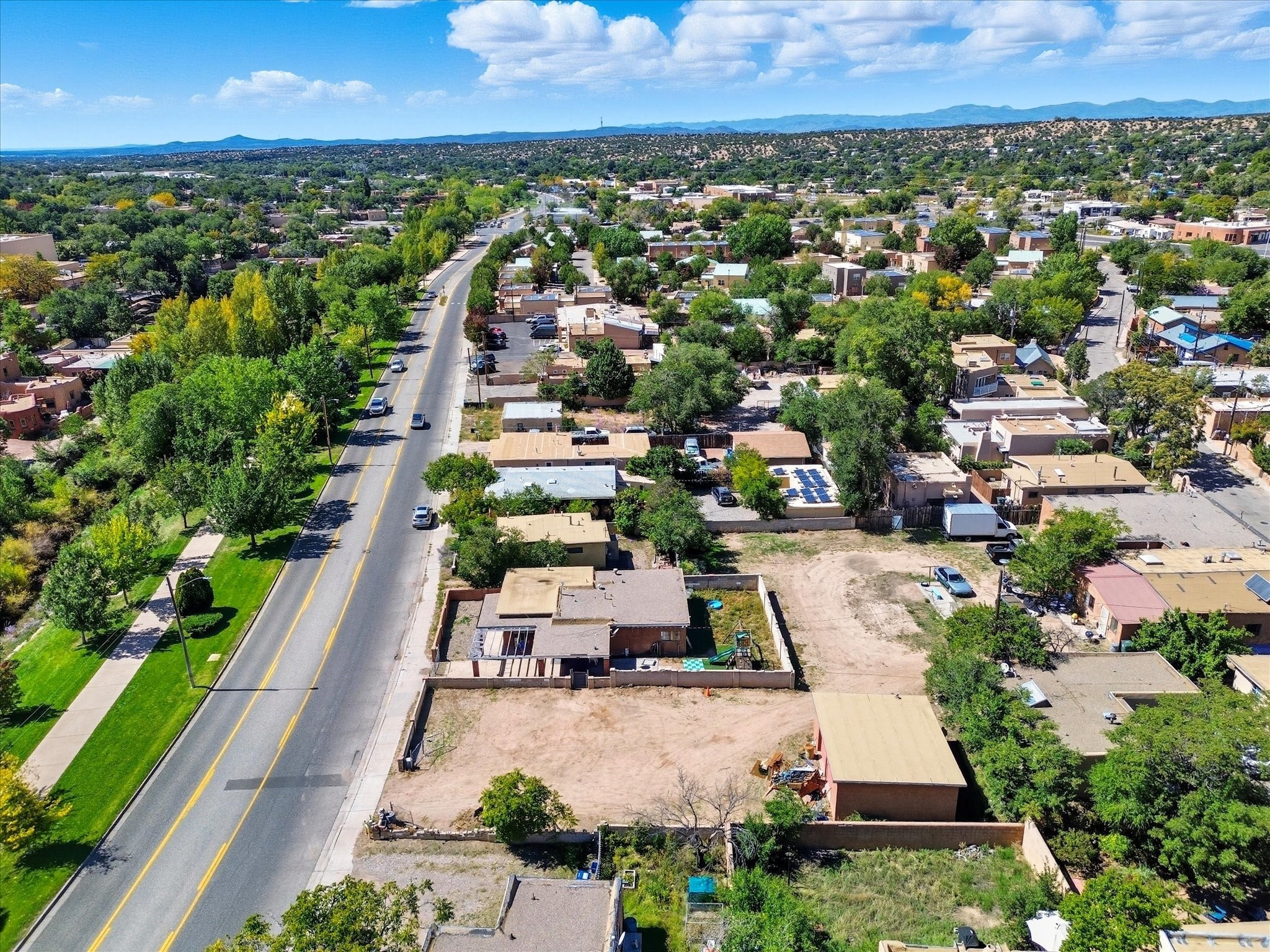 In one of Santa Fe's coveted historic corridors, across from the Santa Fe River, minutes from the Plaza, this home offers an exceptional opportunity to acquire a rare double-lot adobe estate. Price includes adjacent .25 acre lot. Spanning about .34 acres across two parcels, warmth and traditional design blend with the potential for a truly bespoke compound in the heart of the city. Imagine stepping out and seeing the gentle flow of the Santa Fe River just across the street, offering a peaceful green ribbon, soothing natural views, and a connection to Santa Fe history.This 1,391-sq ft home designed with a modest footprint was constructed in 1940, this home carries the patina of time--original details, generous ceiling heights, and the warm adobe-era bones that Santa Fe lovers covet, surrounded by ample space. The home itself is steeped in character, showcasing timeless wood and tile floors, a gas cooking range, and a gracious floor plan that reflects the spirit of historic Santa Fe. A welcoming covered porch sets the tone for intimate gatherings or quiet moments of reflection, while the expansive fenced yard provides a private sanctuary, ideal for curated gardens, outdoor dining under the stars, or future architectural visions.Recent upgrades, including new sewer lines, ensure the residence is well prepared for its next chapter. The presence of a 2 car garage adds a touch of convenience rarely found in this location. Yet it is the land itself--a true rarity in this highly prized area--that sets the stage for limitless possibilities, all within a short stroll of world-class galleries, fine dining, schools, shopping, and the cultural vibrancy of downtown Santa Fe. Whether you seek a charming adobe residence or a strategic investment, this represents more than a home; it is a heritage investment. The marriage of adobe authenticity, expansive grounds, and unmatched location offers the opportunity to craft a legacy property of distinction in treasured Santa Fe.