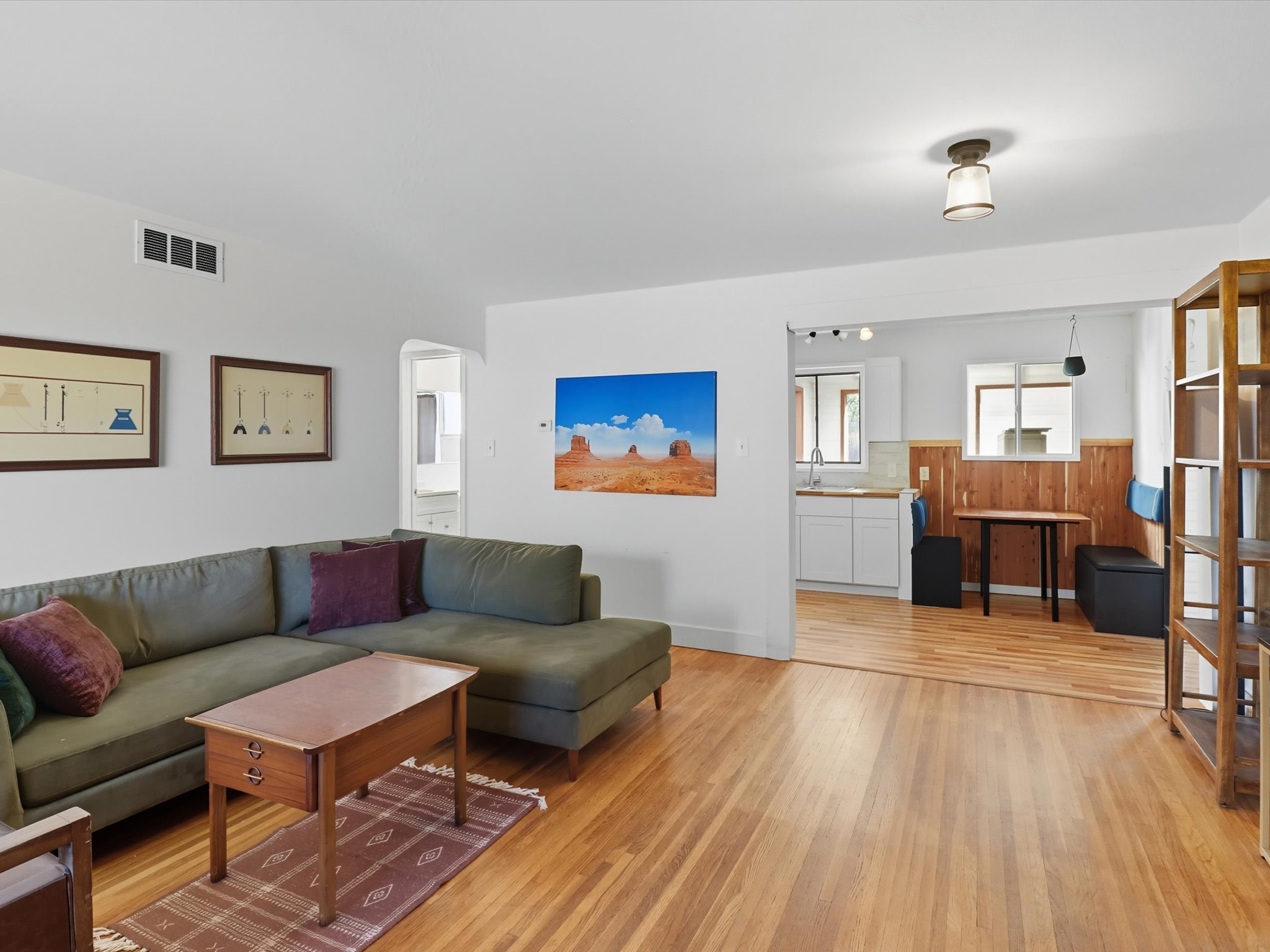 Located in the desirable Casa Alegre neighborhood, this cozy single-level 2-bedroom, 1-bathroom home seamlessly blends classic Santa Fe style with modern updates, including a recent electrical upgrade and timeless wood floors throughout. An inviting and spacious sunroom offers a light-filled retreat, while the converted one-car garage provides flexible bonus space, perfect for a home office, studio, or extra storage. Step outside to a private backyard featuring a beautiful gazebo, ideal for outdoor entertaining and relaxation, complemented by a low-maintenance flagstone front yard that adds to its undeniable curb appeal.