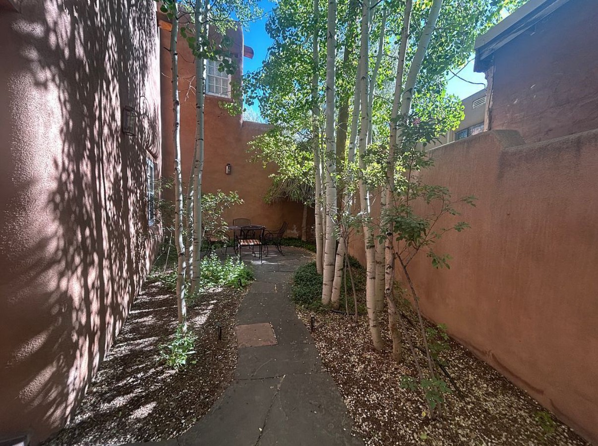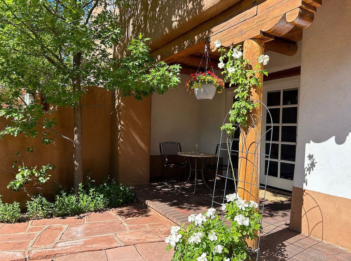 Outstanding opportunity to own a slice of Santa Fe with this quarter-share 2-bedroom, 2.5-bathroom condo in the heart of downtown's Campanilla Compound. Steps from the Plaza, Canyon Road, and Railyard, this two-story condo blends Santa Fe style--vigas, three kiva fireplaces, Saltillo and pine floors, Talavera-tiled kitchen and baths--with modern comfort, convenience and accessibility. Enjoy sunset views from the private upstairs deck or relax and dine al fresco in the landscaped courtyard. Fully furnished and managed by the HOA, including maintenance, cleaning, and a rental program, this sweet Southwest retreat is perfect for a turnkey vacation or investment property offering quarter ownership without the demands of full time ownership. Quiet and peaceful neighborhood with great views, this is a place to savor the best of Santa Fe in any season.