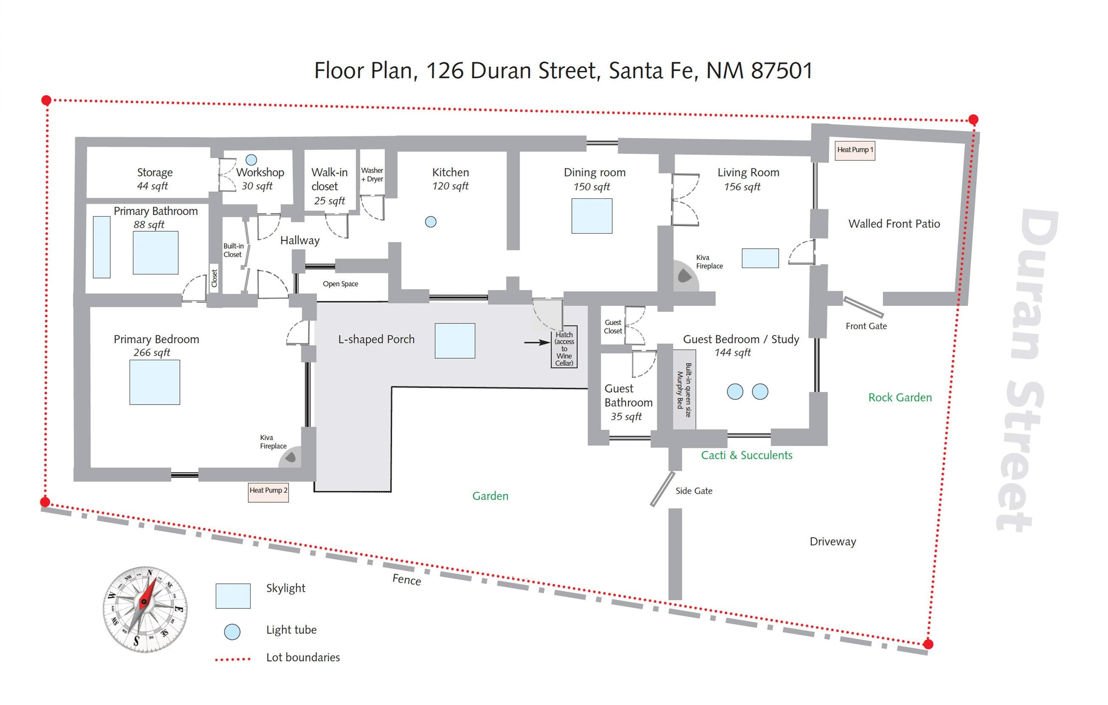 When a French-American designer couple falls in love with New Mexico and the unique charm and character of adobe architecture, it comes as no surprise that the result combines Old World elegance with an almost extravagant attention to craftsmanship, originality and visual appeal. Open one of the two painstakingly restored period gates, cross the immaculately designed and maintained garden, and enter this authentic adobe house through the walled, sunny front patio or the south-facing porch. The home has been upgraded from top to bottom, while keeping intact its charm and character. This includes the two original, wood-burning kiva fireplaces, which have been restored both technically and aesthetically. All-new plumbing and electrical installation are part of several major upgrades. The remodel is complemented by hand-troweled plaster walls, new stucco and windows, ceiling restoration and all mechanicals including reversible Carrier heat pumps supplying zoned heat and A/C via ceiling registers. New floors have been installed in every room and on the porch, alternating between hardwood and custom-finished saltillo tiles. Five antique doors feature intricate, hand-carved teak wood panels and original hardware dating back to the 19th century, while the others have been made to measure in a combination of wire-brushed ponderosa pine and incense cedar. The new primary bathroom is especially striking: inspired by Japanese ryokans, it is an enchanting oasis of refinement and serenity. The tastefully upgraded kitchen features a luxury Lacanche 'Fourneaux de France' cooking range. With its polished brass burners, double convection oven, simmer plate and signature vintage look, it is the dream of any gourmet. In addition, the property offers ample storage space. It includes several built-in closets a partial basement / wine cellar. This is a home like no other--without even one standard feature anywhere. Set in a very quiet street behind adobe walls, the house is an island of peace and privacy in the very heart of the Historic Guadalupe District, a mere 10 minutes walk away from the iconic Santa Fe Plaza and the trendy Railyard.