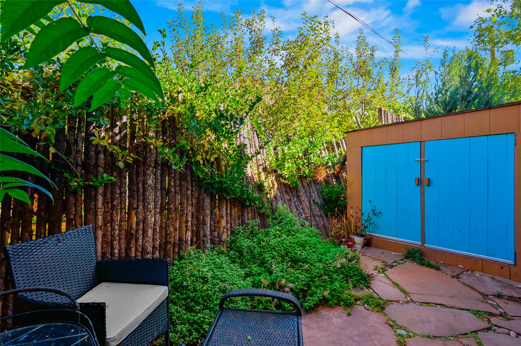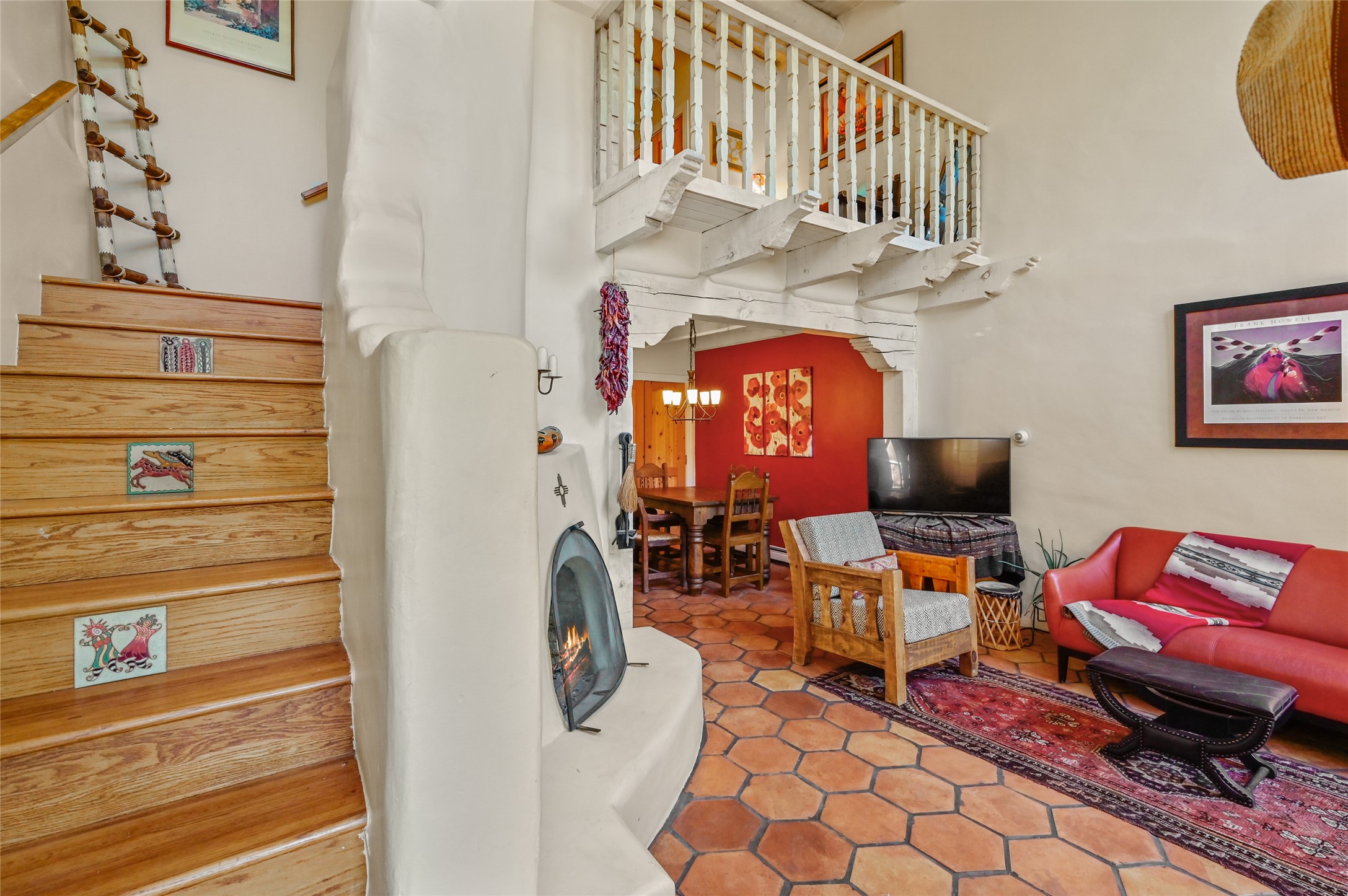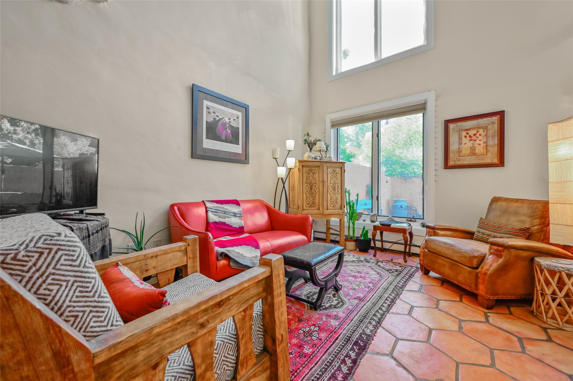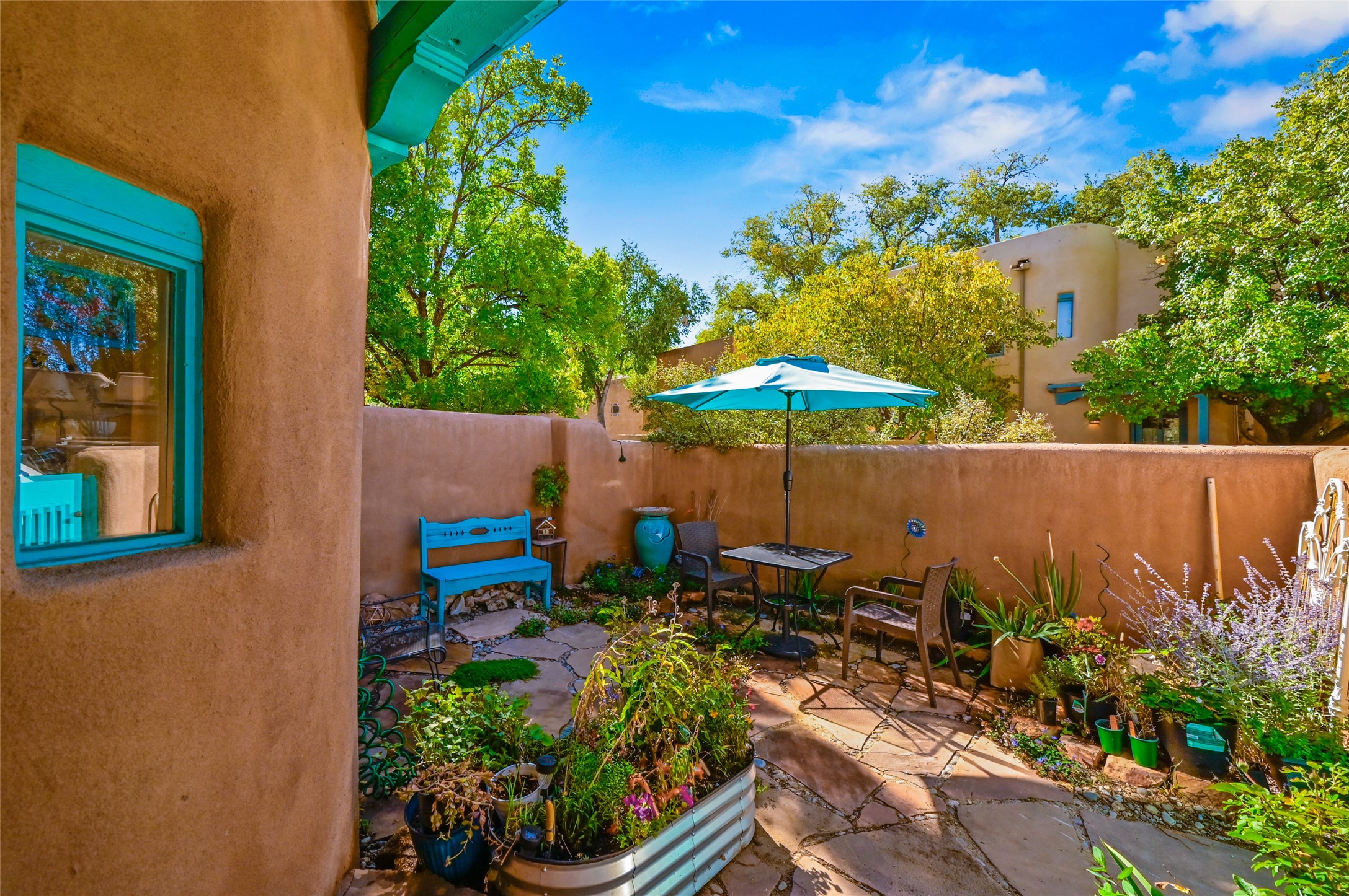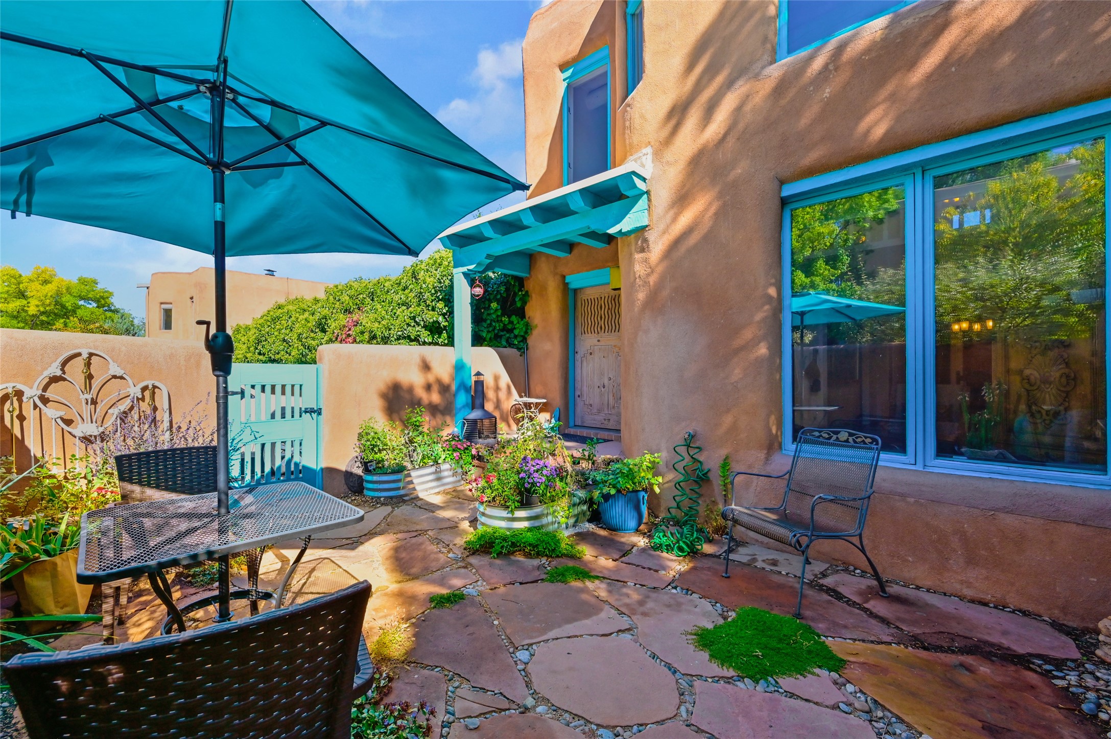 Bright and filled with light, this 2 bedroom 2 bath condo offers an excellent location for all that Santa Fe has to offer yet a very quiet neighborhood in South Capital. Brimming with many southwest features such as vigas, kiva fireplace, adobe walls with curved accents, talavera tile in the bathrooms, Saltillo tile and oak floors. Front courtyard with adobe walls for privacy. And rear patio has coyote fencing for privacy. Extra storage on the back patio. Las Brisas takes care of the exterior of the home and the roof. New TPO roof as of summer 2025. New boiler and hot water tank in 2022.