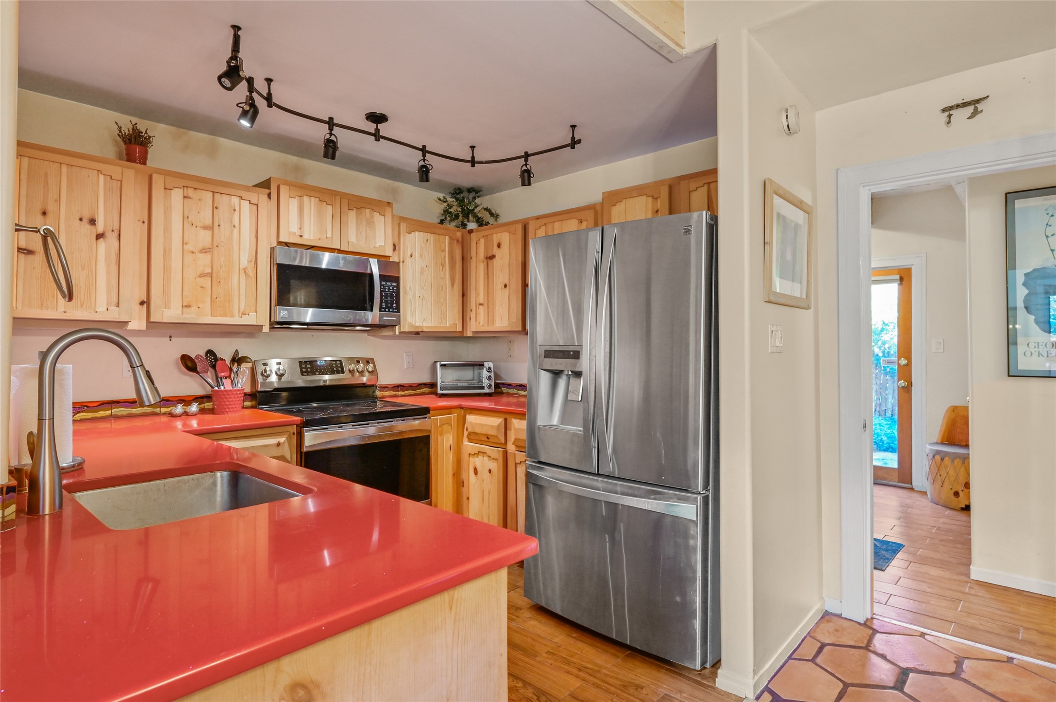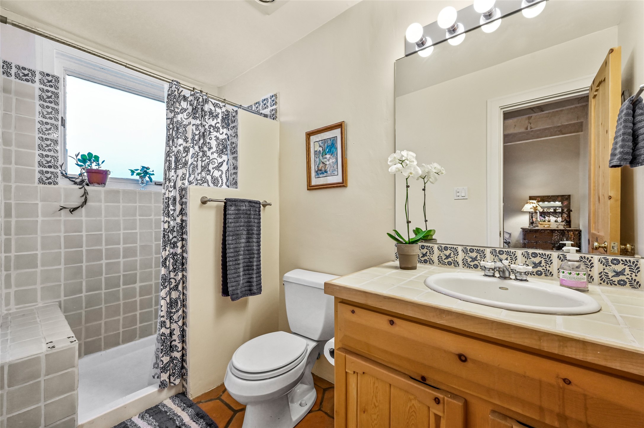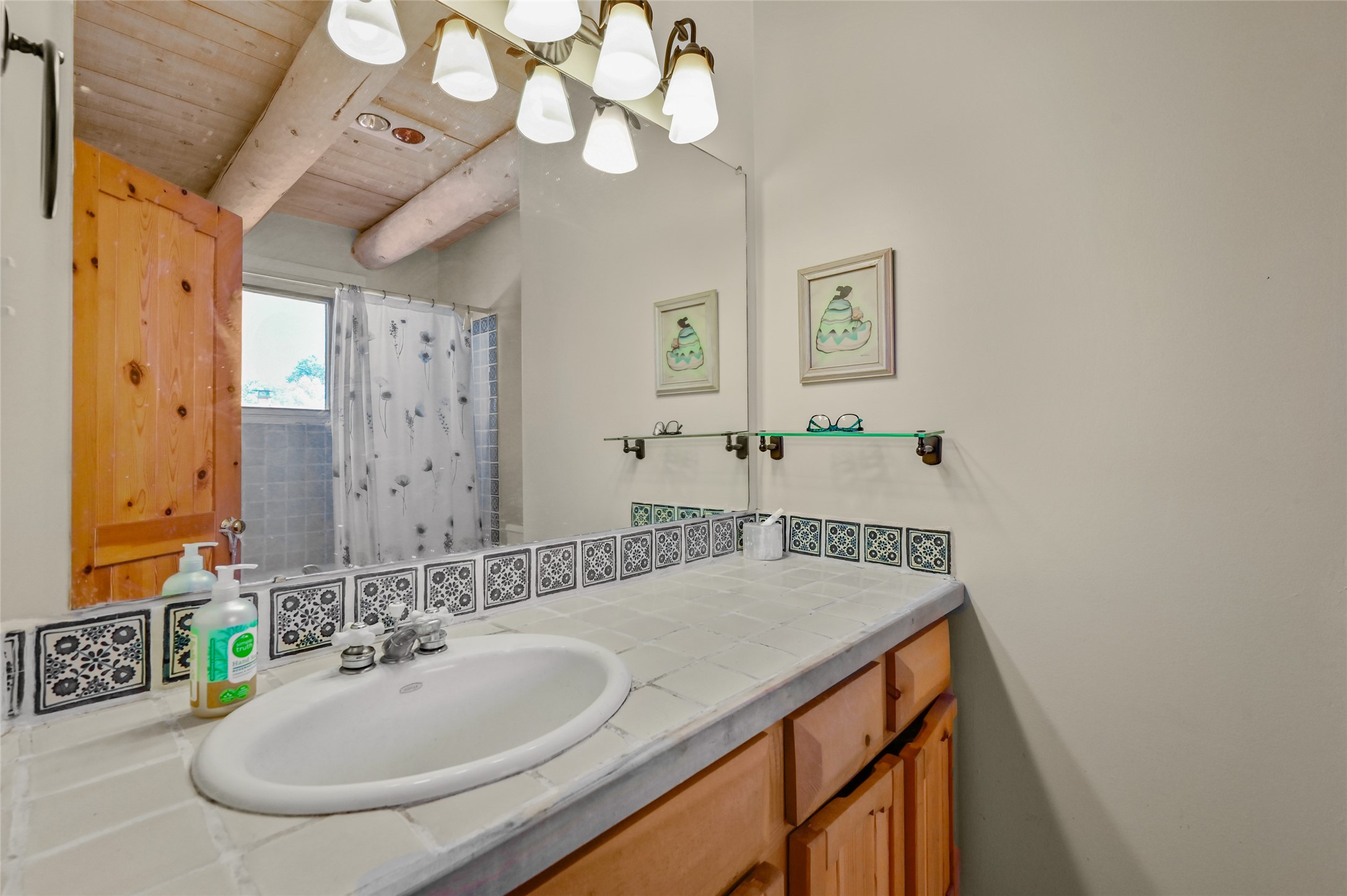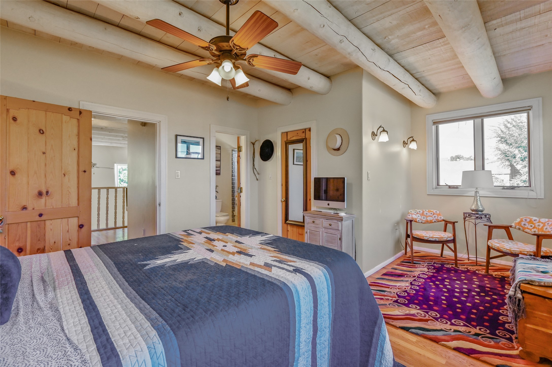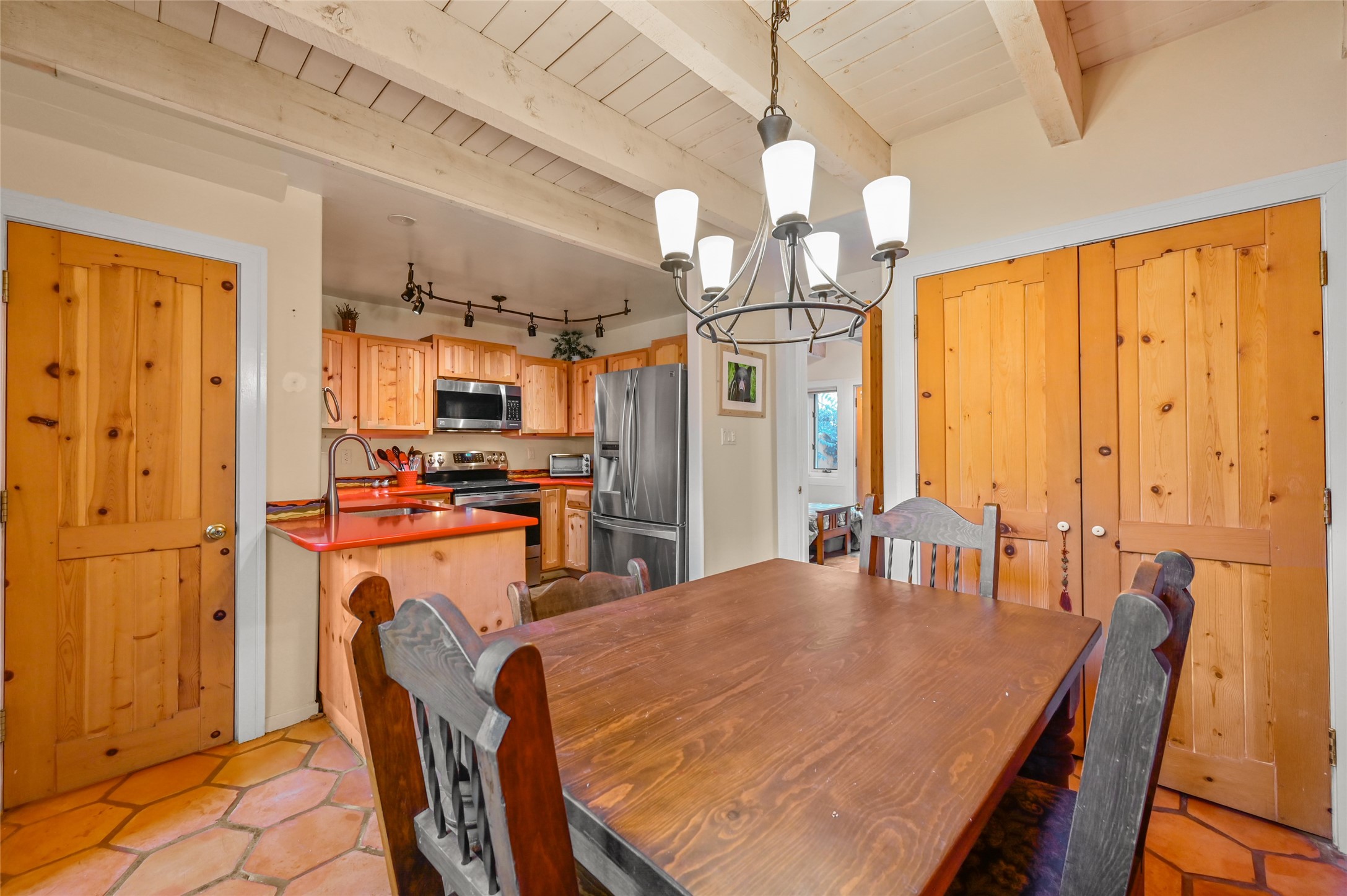 Bright and filled with light, this 2 bedroom 2 bath condo offers an excellent location for all that Santa Fe has to offer yet a very quiet neighborhood in South Capital. Brimming with many southwest features such as vigas, kiva fireplace, adobe walls with curved accents, talavera tile in the bathrooms, Saltillo tile and oak floors. Front courtyard with adobe walls for privacy. And rear patio has coyote fencing for privacy. Extra storage on the back patio. Las Brisas takes care of the exterior of the home and the roof. New TPO roof as of summer 2025. New boiler and hot water tank in 2022.