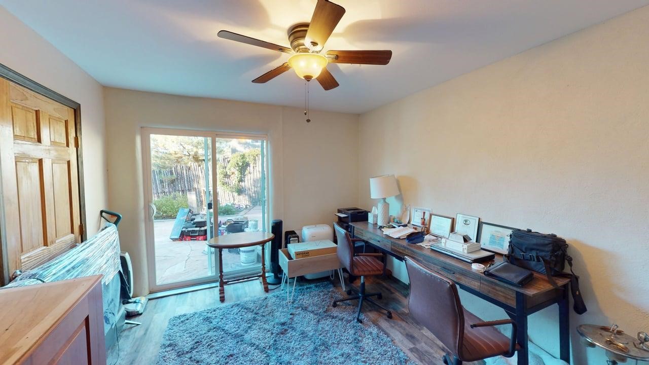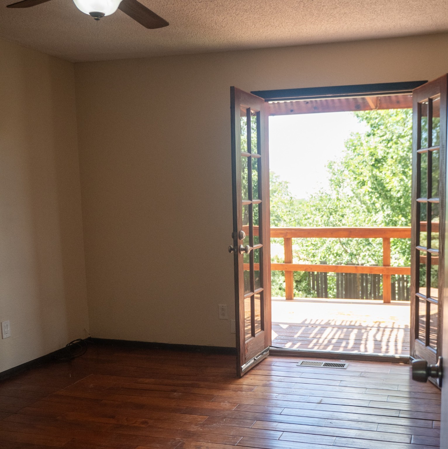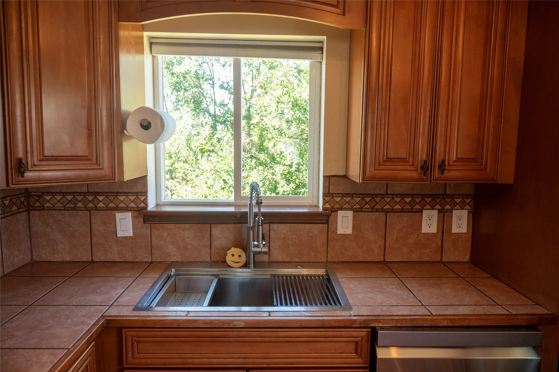 This spacious home offers versatile living across two levels, featuring beautiful and well-maintained outdoor spaces. The main entry level features a bedroom, two bathrooms, dual kitchen areas, built-in storage, and a laundry closet. The lower level features three additional bedrooms, a comfortable living area, and ample storage space. Updates include wood flooring, a kitchen, and bathrooms with granite countertops, as well as carpet in the downstairs area. From the upper level, enjoy sweeping views, while the landscaped yard provides the perfect setting for relaxation or entertaining.
