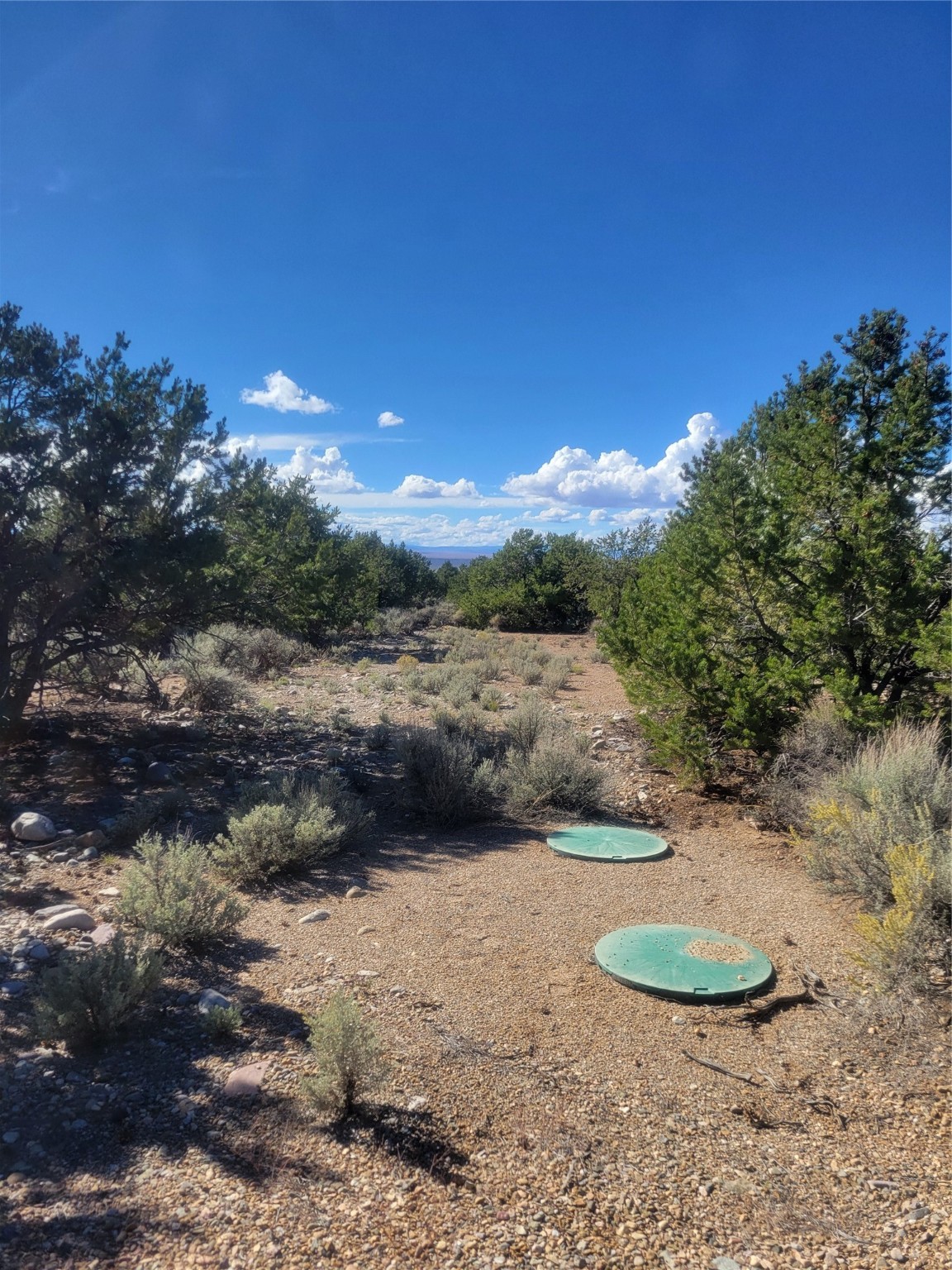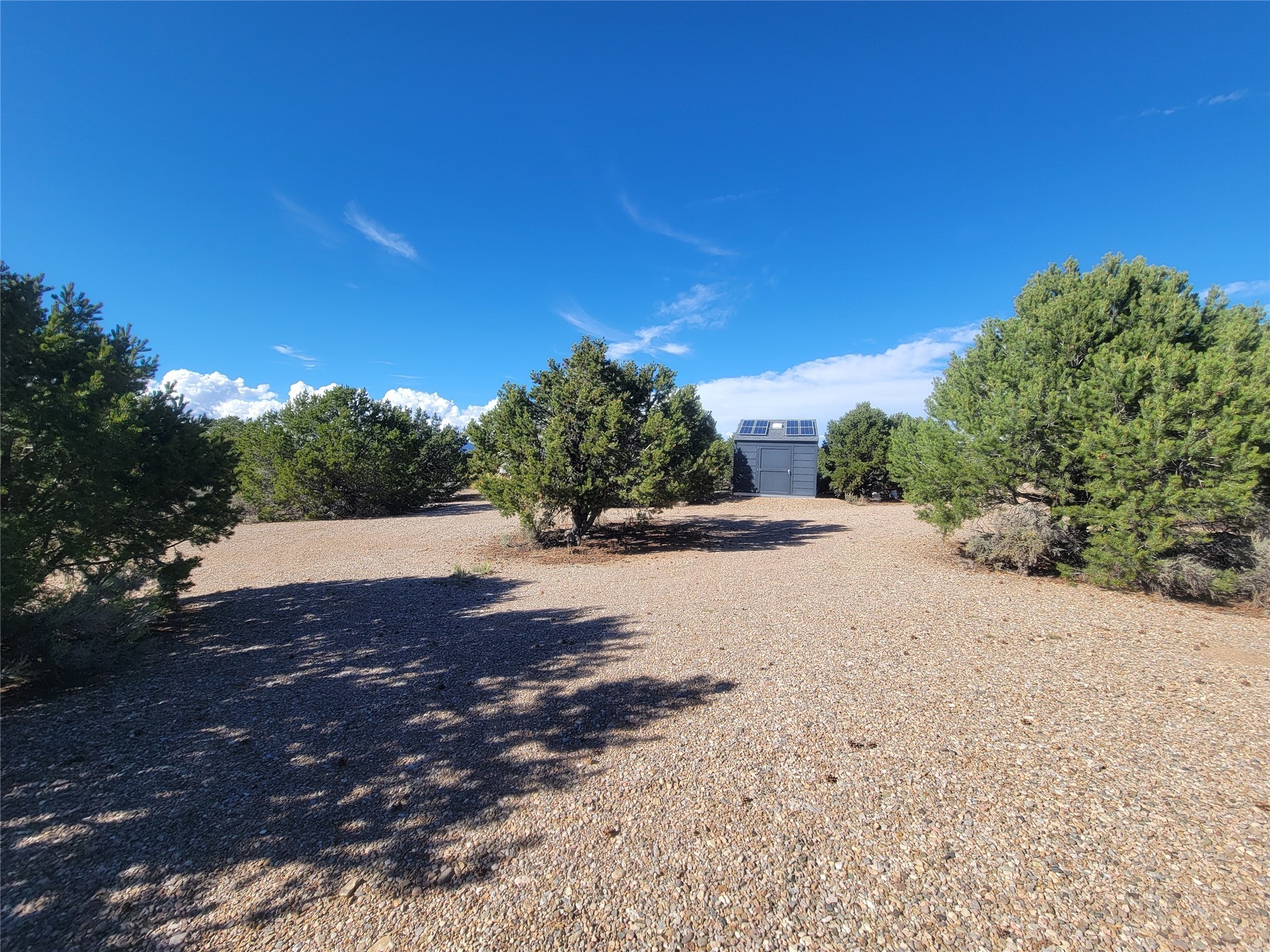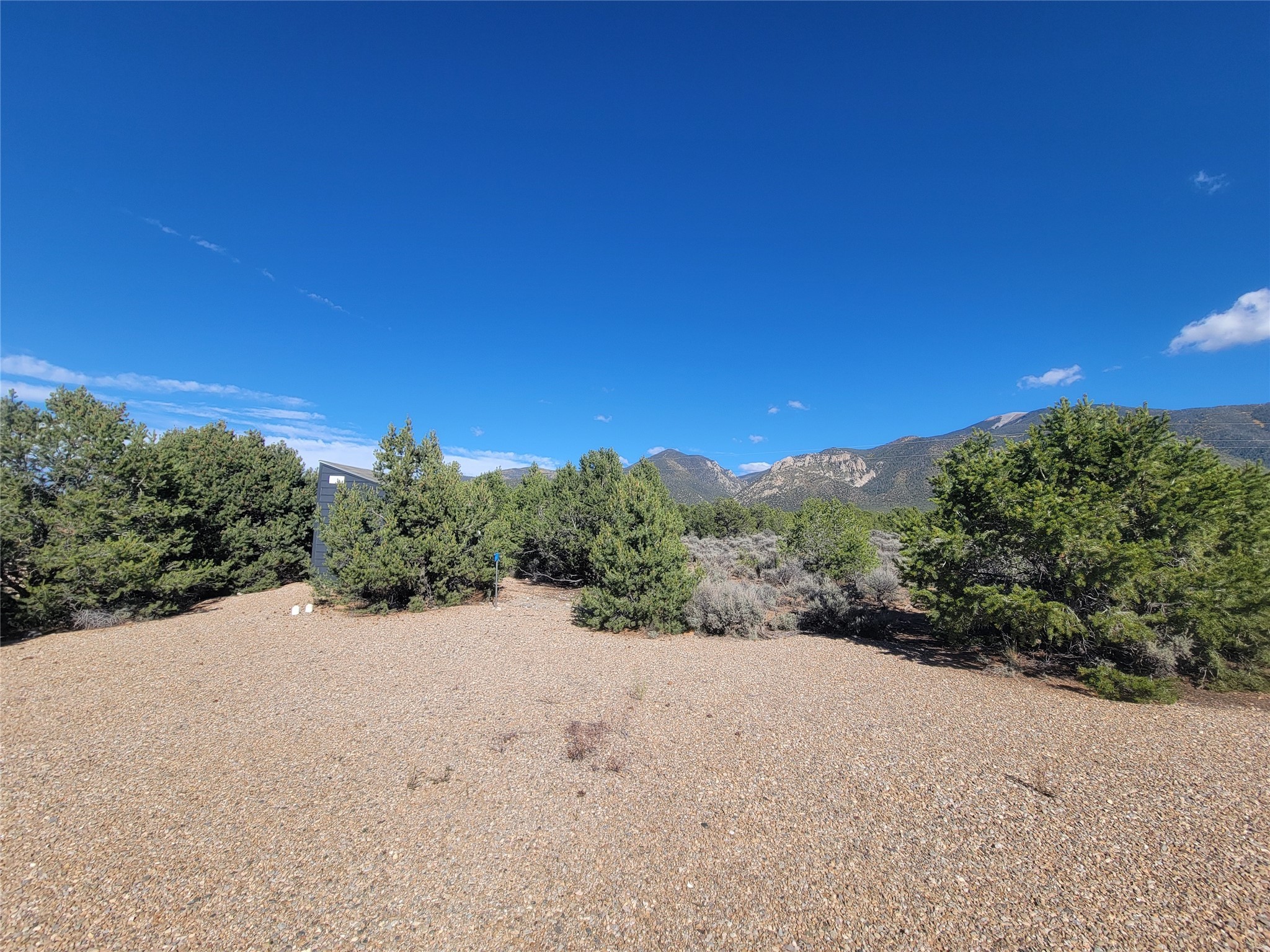 This is a place which needs to be seen in person as pictures won't do it justice. Nestled in between the pinon and juniper trees at the base of the Latirs, this peaceful and serene 5-acre improved lot has so much to offer. Three separate structures are already present. Each one is plumbed. Two of them can be turned into whatever your imagination brings. The current owner was going to house artists. The third structure houses the well, which is powered by solar cells. Electric is right by the lot however, should you want to tap into the grid. The lot has been cleared, and gravel driveways are already there. This is a must see for anyone looking for a special place.