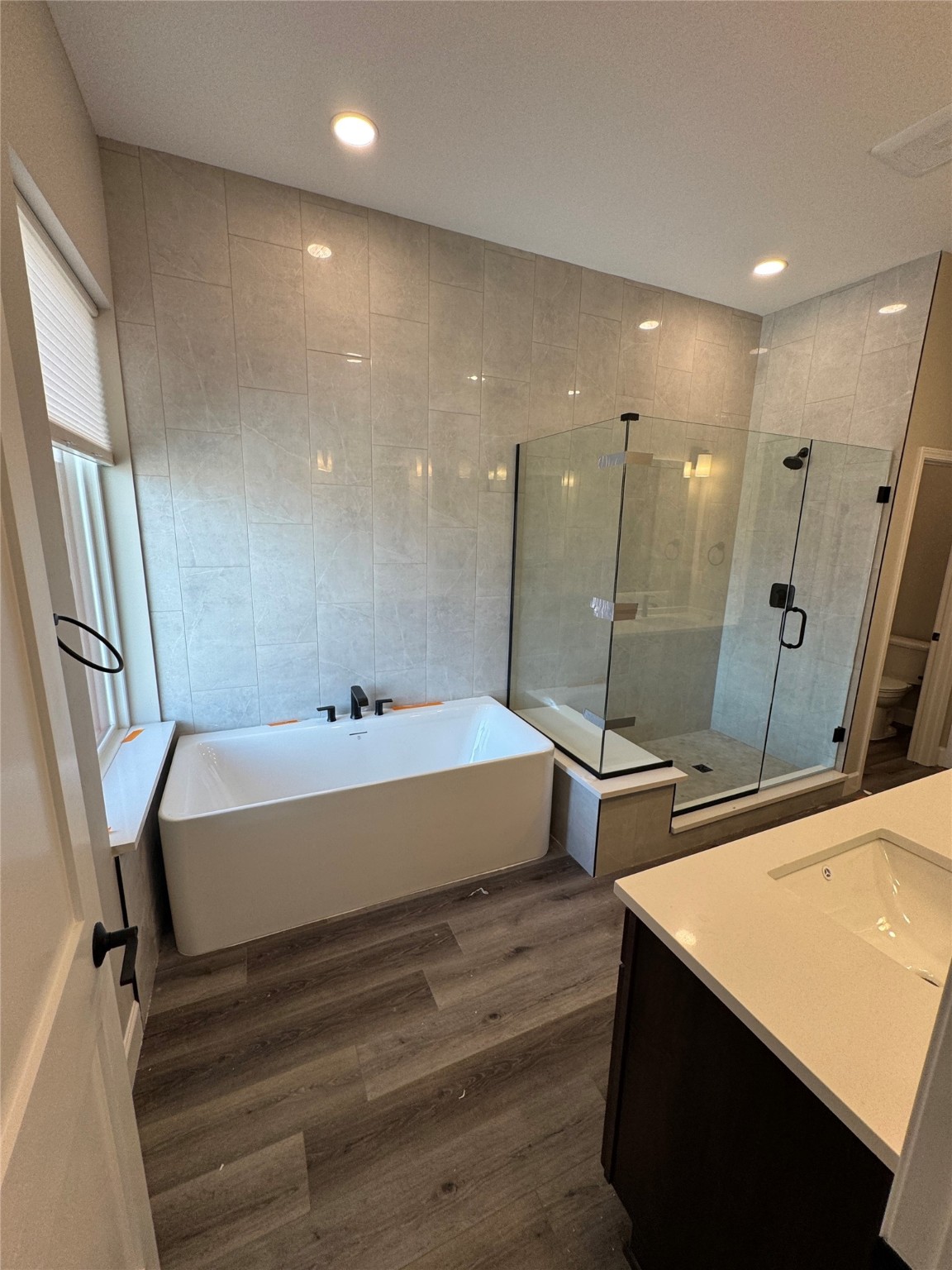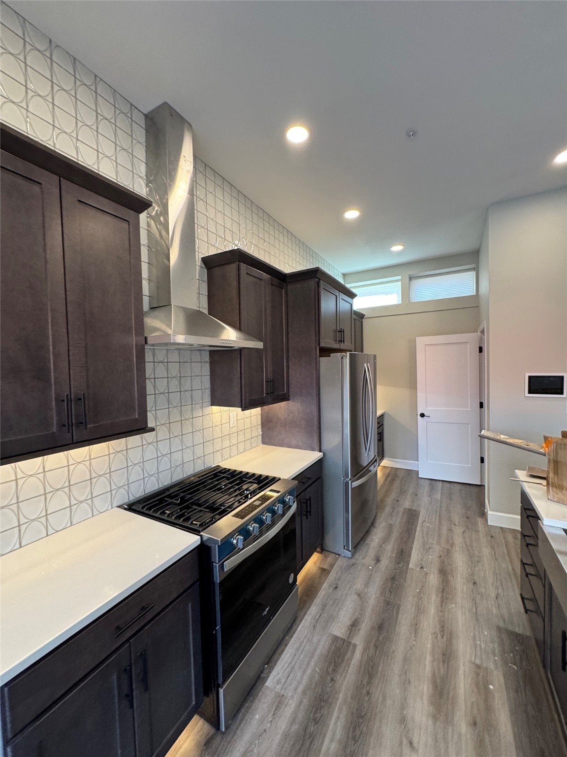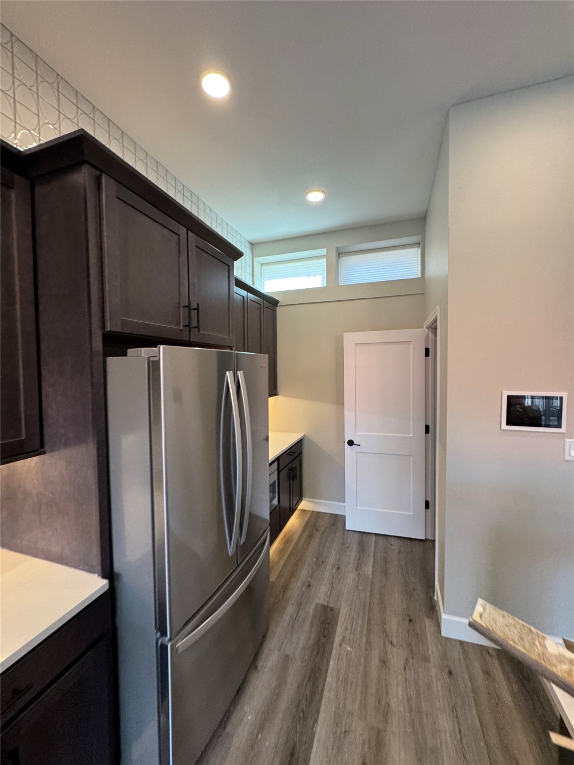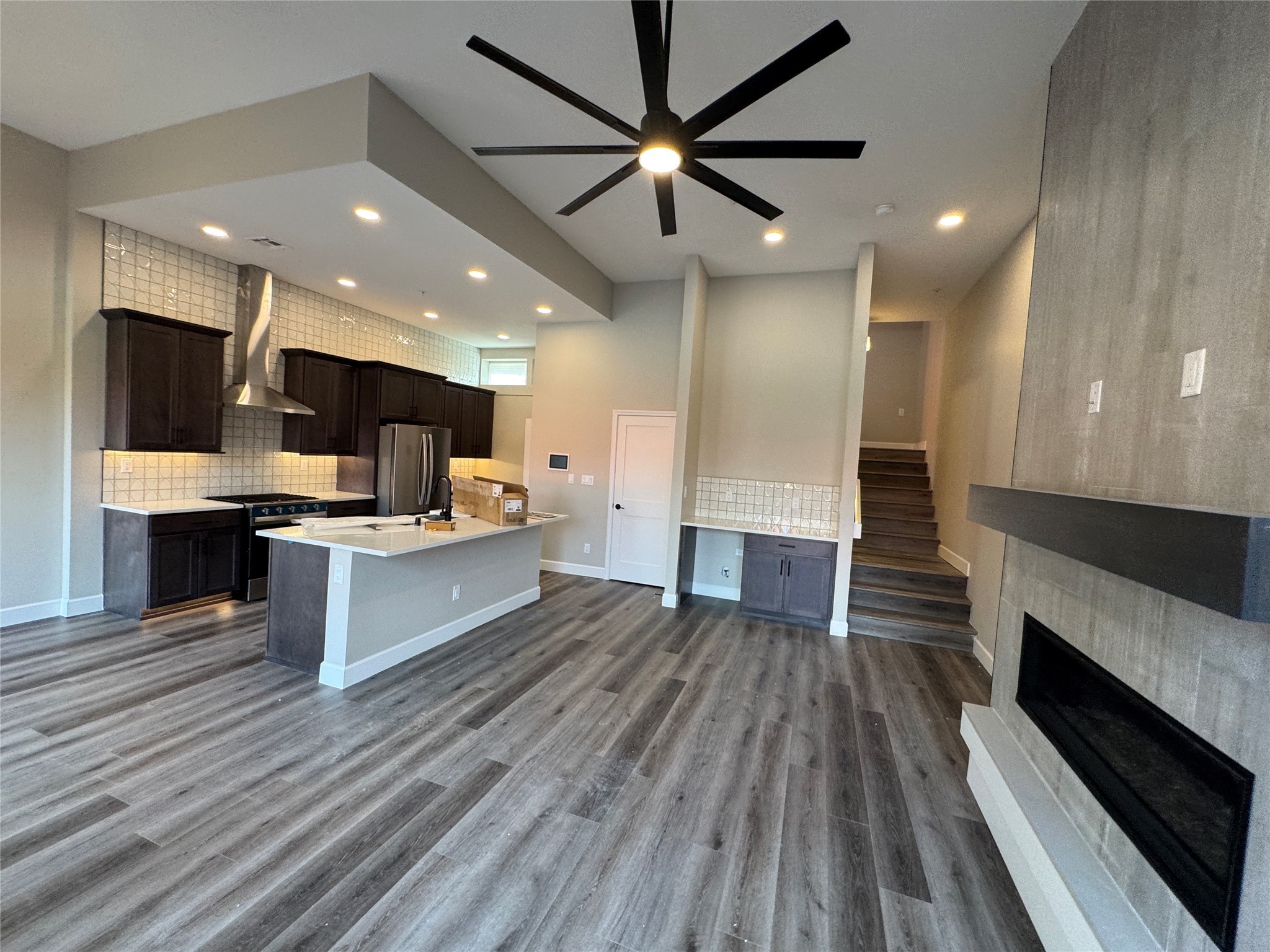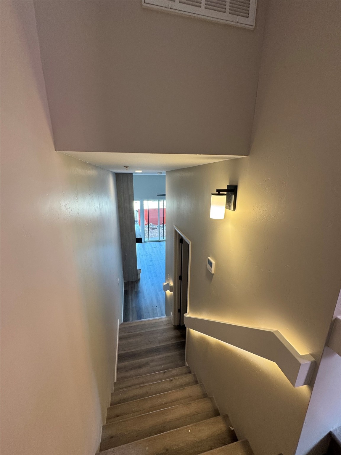Welcome to Unit #45 at Zocalo, Santa Fe--A refined interior unit that perfectly melds luxury with comfort. As you step into the inviting foyer, you are presented with two enticing options: descend to the lower level where the expansive great room awaits, complete with modern grey toned, sophisticated brushed nickel finishes, and contemporary maple-finished flooring that radiates modern elegance. This level also houses the well-appointed kitchen and provides access to the beautifully landscaped patio, ideal for both vibrant entertainment and serene relaxation.Alternatively, ascend to the upper level where you will find the luxurious primary suite, featuring a cozy second fireplace that creates an opulent sanctuary perfect for restful nights. Atop boasts a junior suite offering additional comfort and privacy.