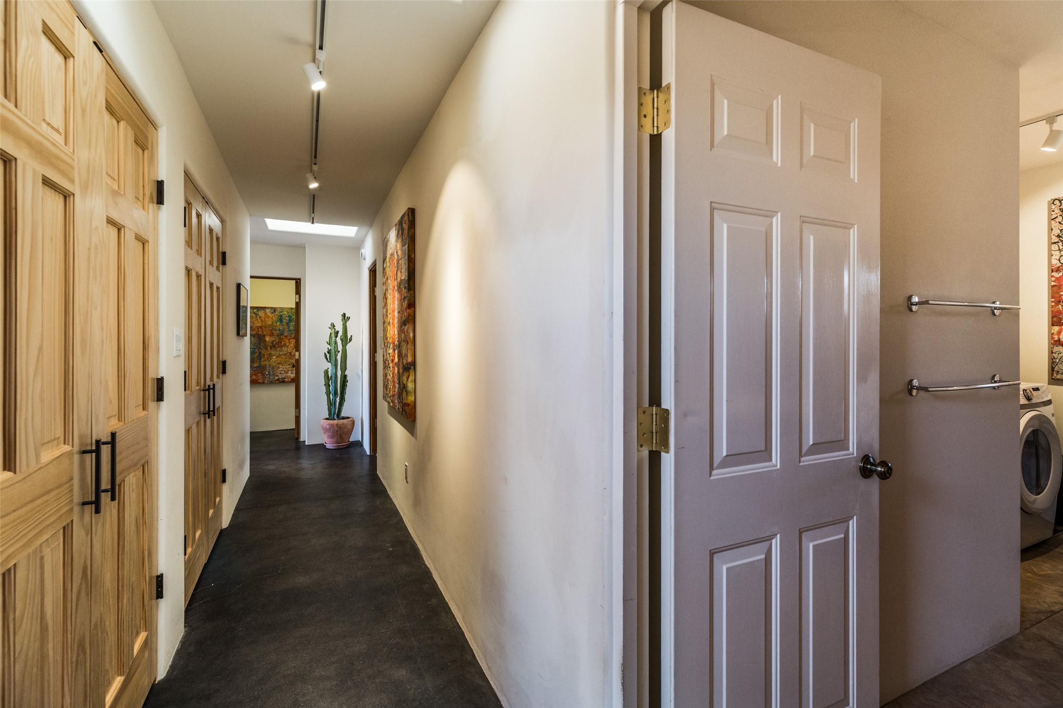Set on 3 private acres with sweeping views of the Jemez and Sangre de Cristo Mountains, this contemporary home blends style, efficiency, and versatility. The 2-bedroom, 2-bath main house features an updated primary suite, newer kitchen, windows, and cork flooring. Owned solar panels help offset electric bills, adding to the home's sustainability. Creative and functional spaces expand the possibilities: a detached, 1050 sq ft, artist studio with its own bathroom, a 600 sq. ft. heated and cooled garage with office, a potting shed, and an additional storage shed. Established gardens and cisterns for water catchment support irrigation and year-round enjoyment of the land. With no HOA restrictions and a setting designed for privacy, this property offers freedom, modern comfort, and inspiring Northern New Mexico views -- all in one remarkable package.