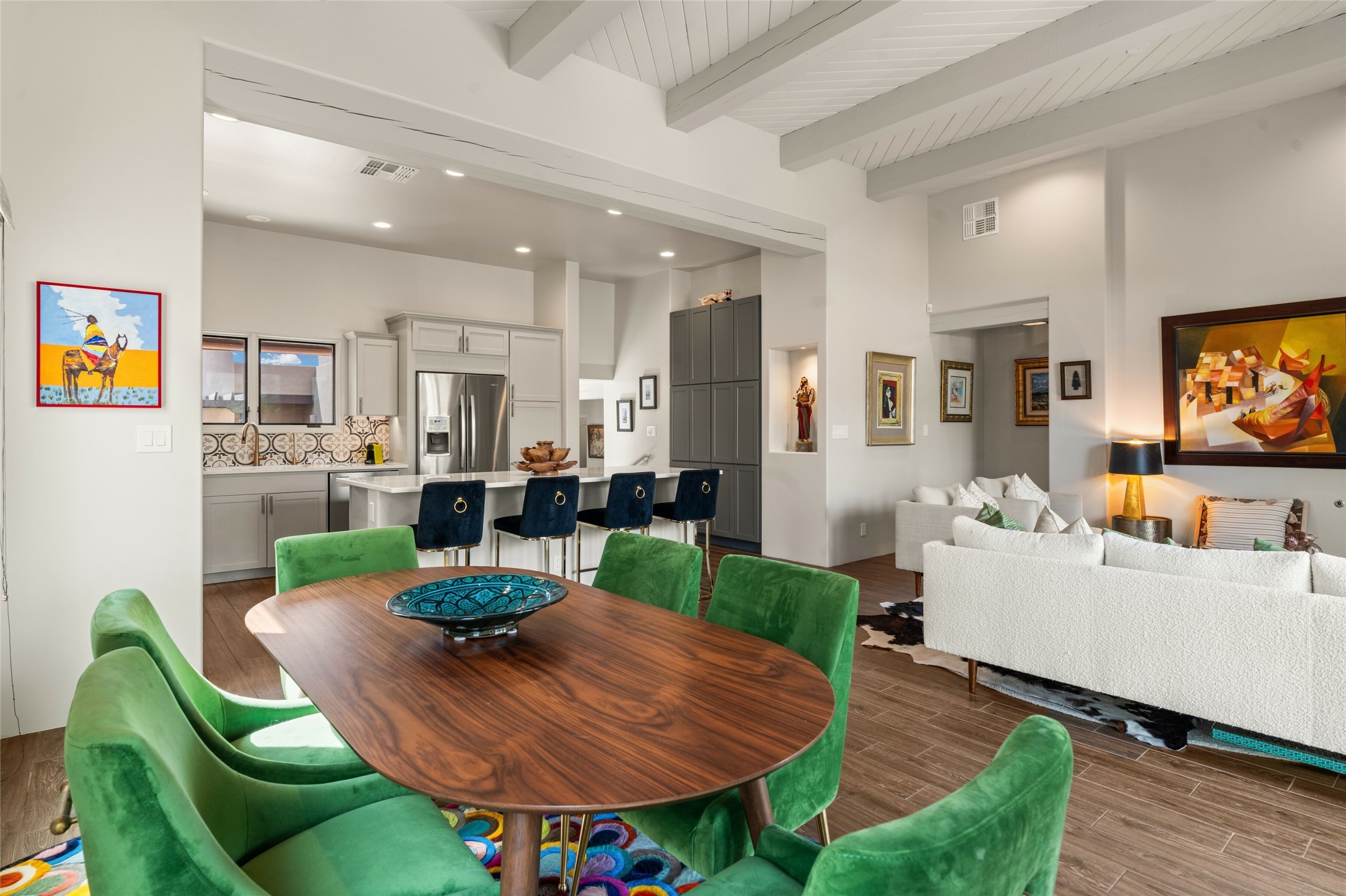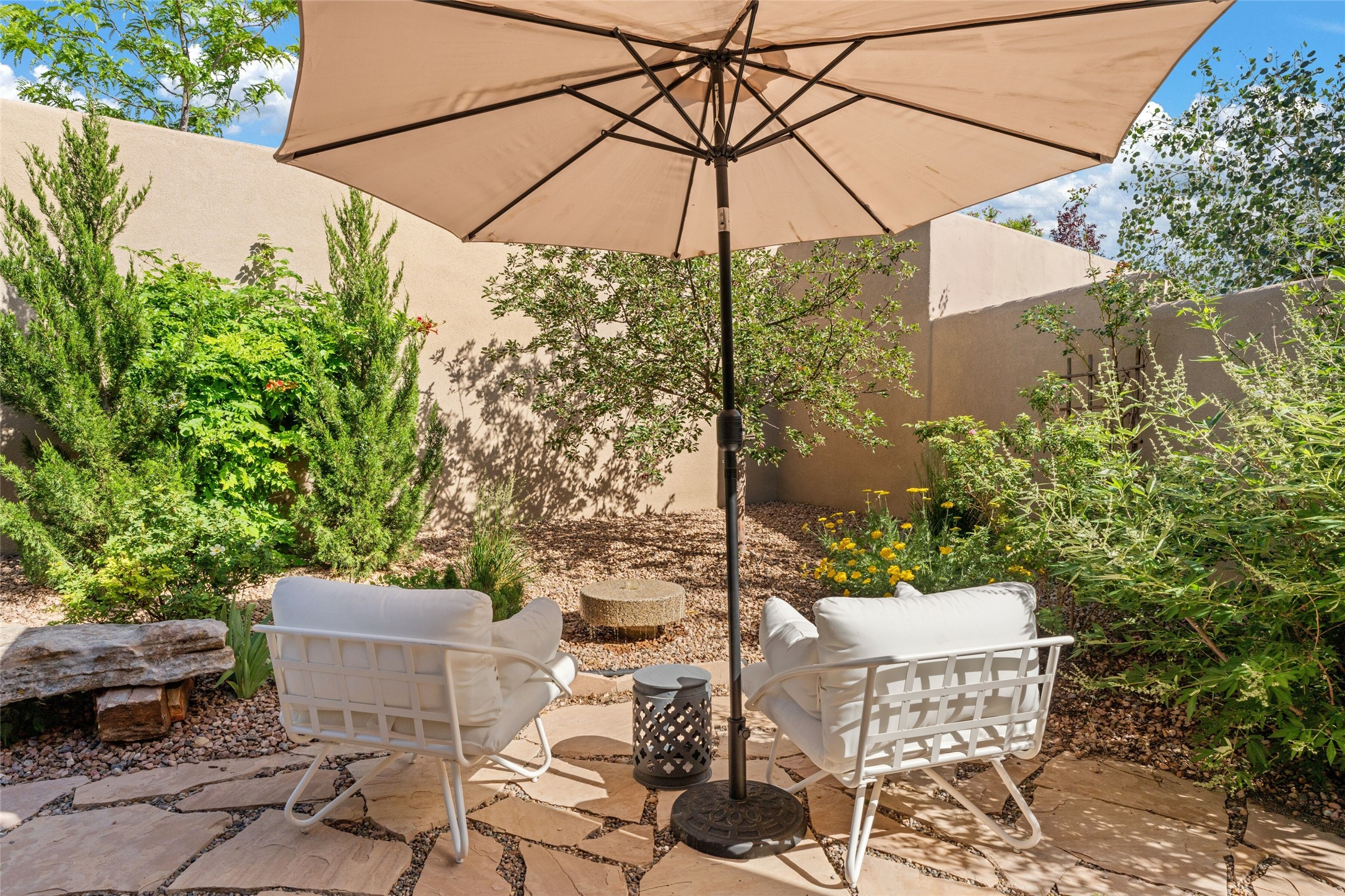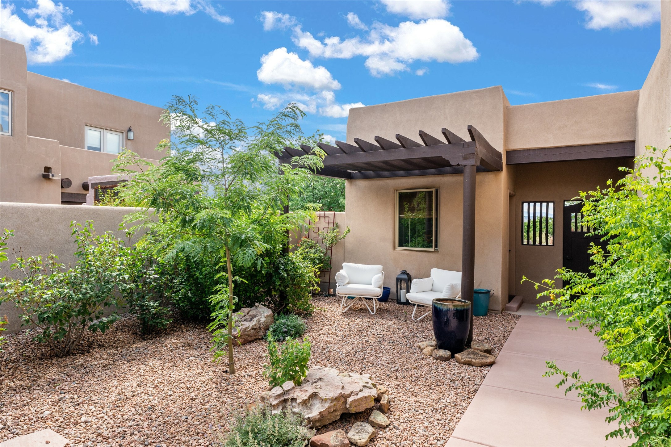 With a flawless new sewer line inspection report available, this home is move-in ready! Showcasing a functional design in one of the most desirable locations in Santa Fe, this stunning home is a rare opportunity to own a home UNDER 1 million dollars in Las Campanas. The home maintains a warm, welcoming feel, filled with natural light and surrounded by native landscaping, and walled backyard for privacy and pet safety. Just minutes from downtown Santa Fe, a quick trip to the airport and easy highway access, this property offers the best of Southwestern living - spacious, secluded, and perfectly situated. This home has been beautifully updated with new kitchen cabinets, a luxurious primary walk-in closet, a full wall of husky cabinets and 2 additional benches in the garage, a new tankless water heater, a reverse osmosis water treatment system and many more upgrades. A private enclosed patio is showcased in this elegant design that seamlessly combines easy living with the rugged Santa Fe views and sunsets that our state has to offer. Beautiful, established landscaping with drip irrigation, flagstone patio and walk ways makes for an enjoyable and low maintenance outdoor space. The open kitchen and living area, framed by a peaceful garden (perfect for pets), offer an inviting space for gathering with friends and family. Complete with a detached studio, this property offers unmatched versatility in a beautiful gated community with 24 hours security/EMS, and designated path walks few steps from your front door. Owners have the option to gain access to The Club at Las Campanas, which provides exclusive access to two Jack Nicklaus Signature Golf Courses, pools, a state-of-the-art fitness facility, and fine dining. Broker can provide a list of all the incredible upgrades and updates that come with this move-in ready home!