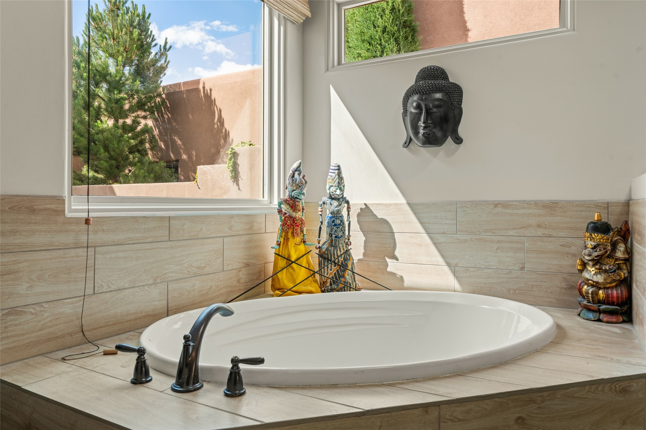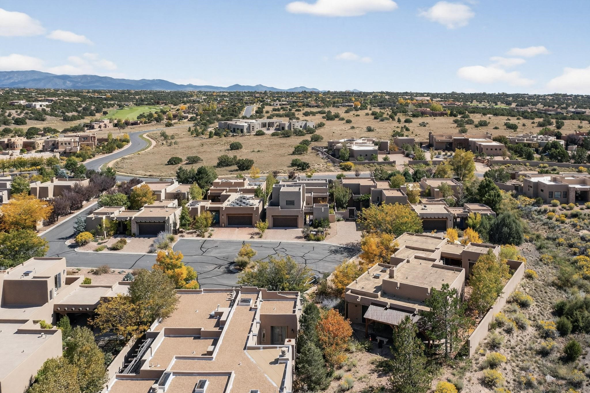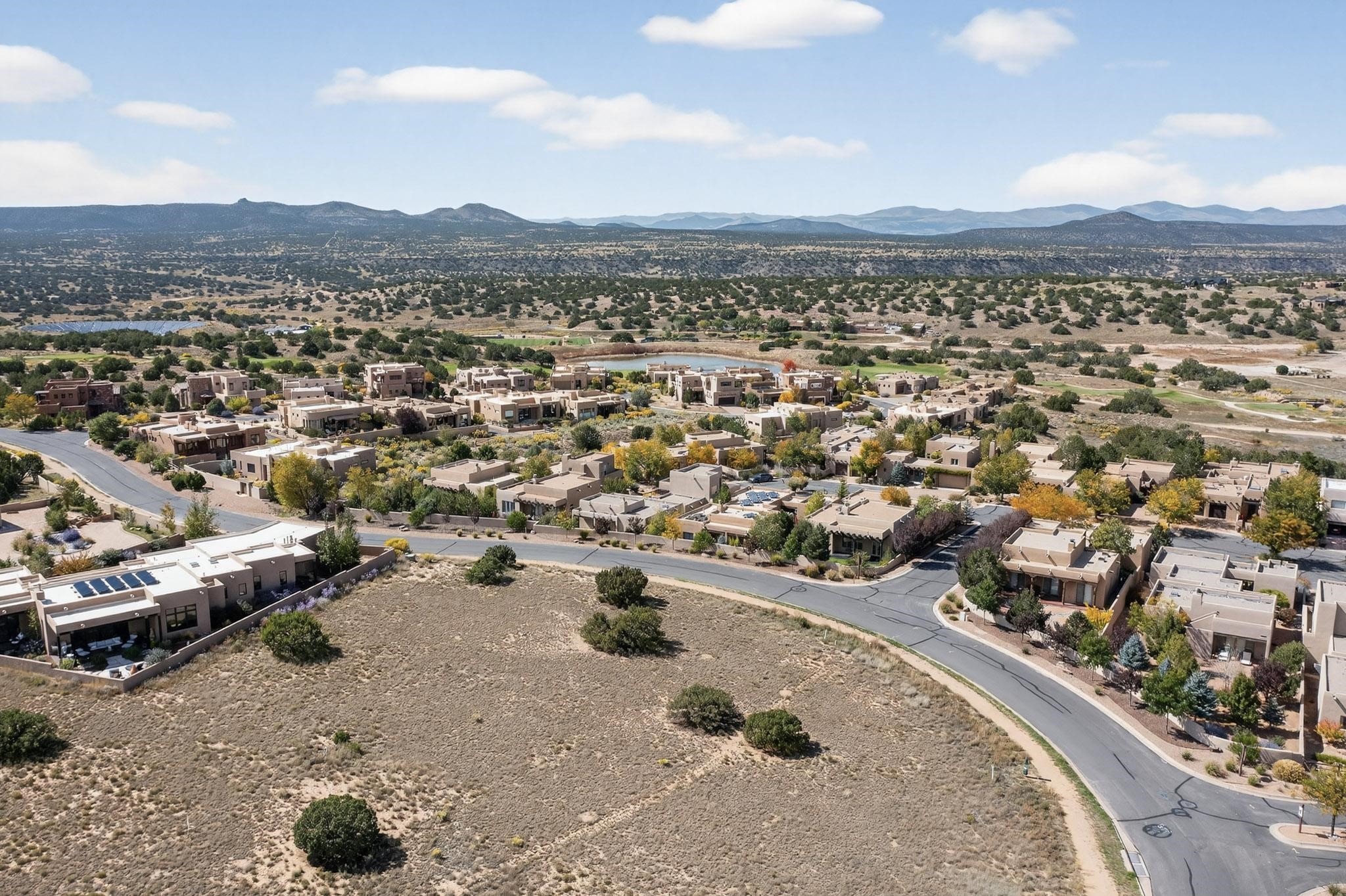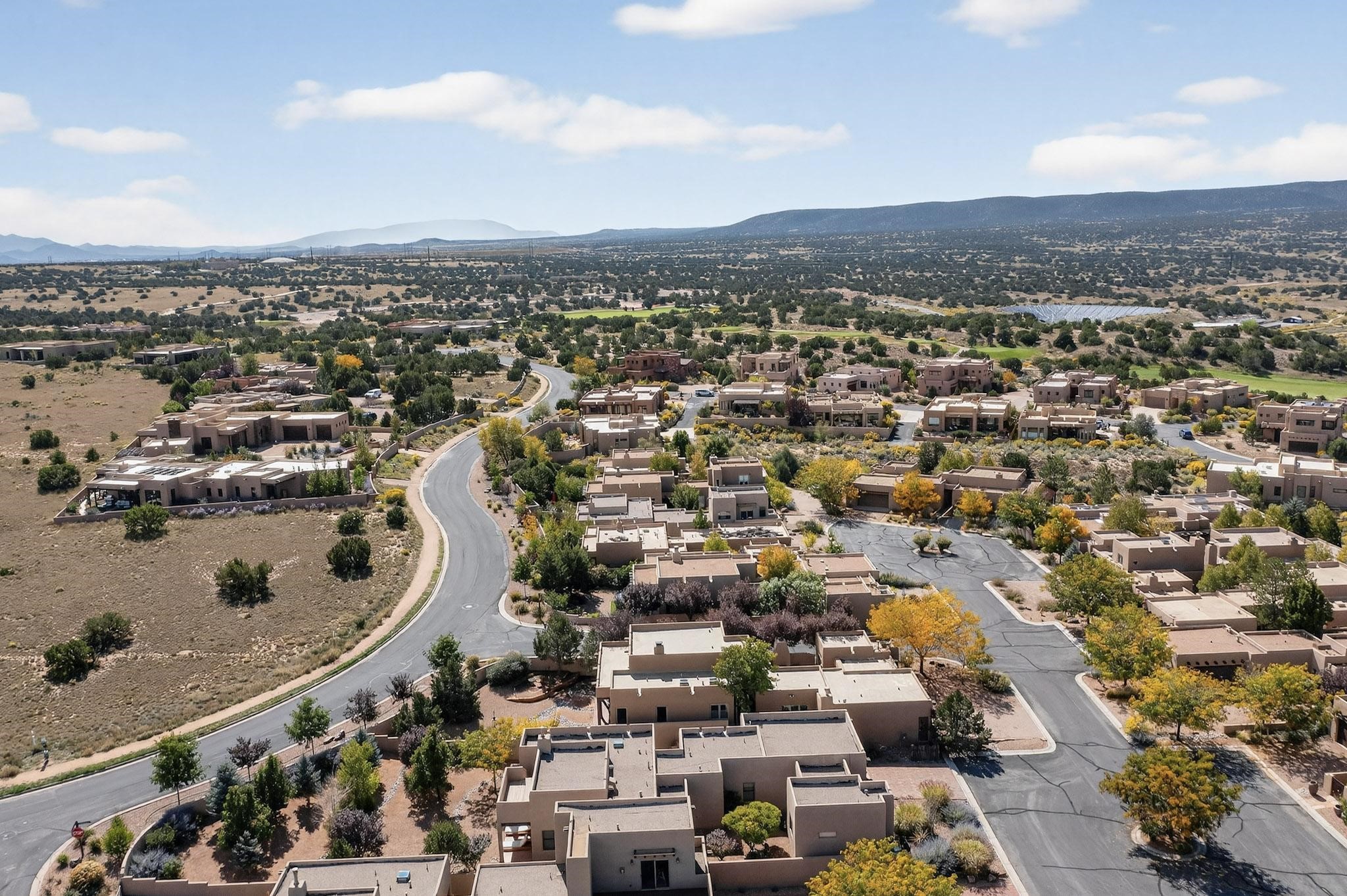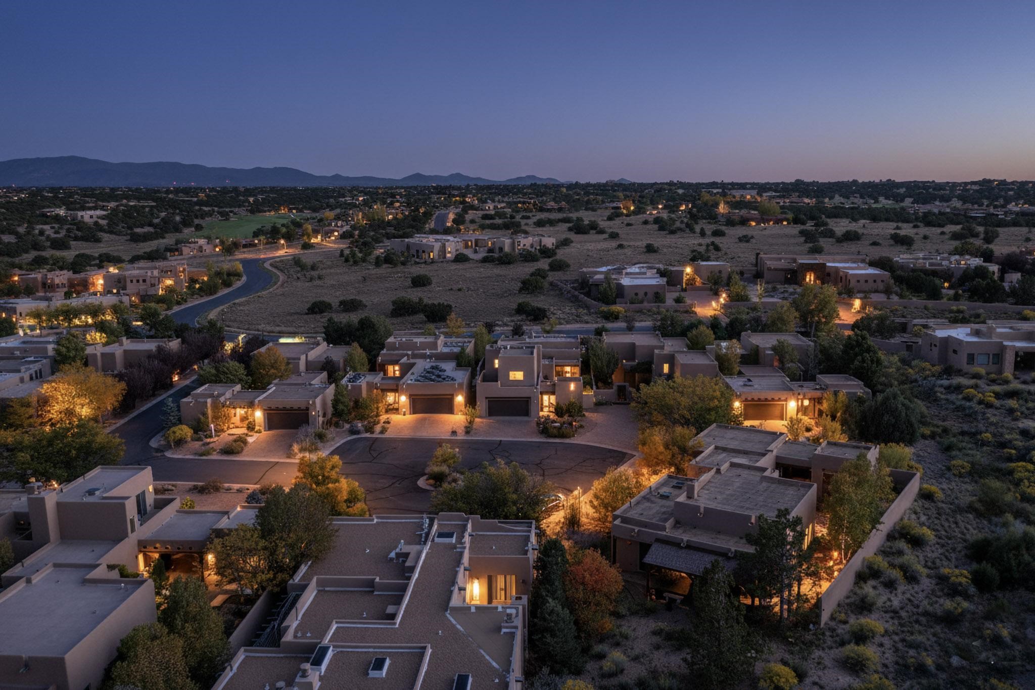 In the tree-studded rolling hills northwest of town are Las Campanas and a host of other developments and neighborhoods of larger, private lots and newer homes, most with city services and utilities. The land here sits between the city and the arroyos that carry rainwater to the Rio Grande, just a few miles west, creating a landscape almost like ocean waves rolling into shore.