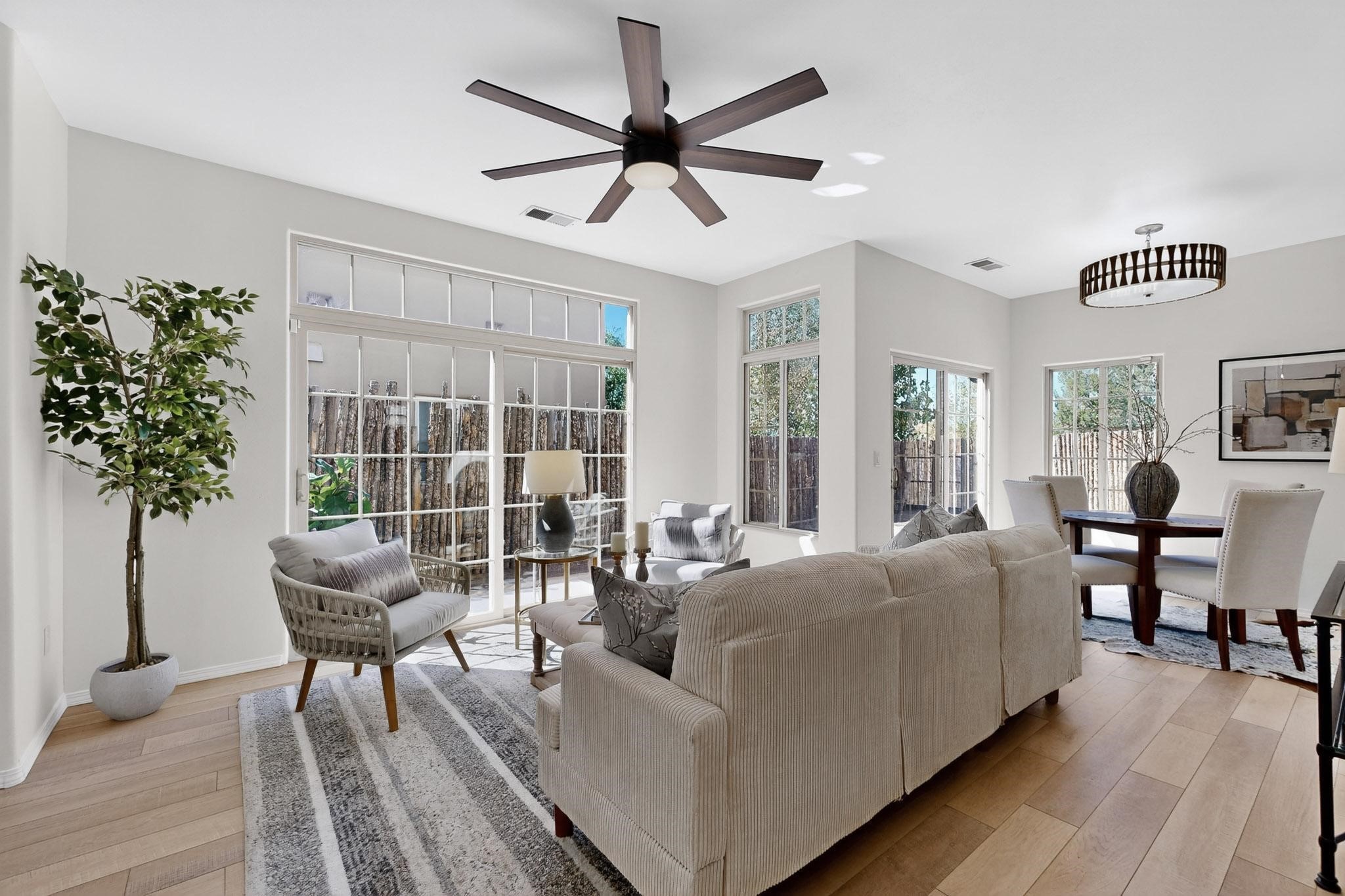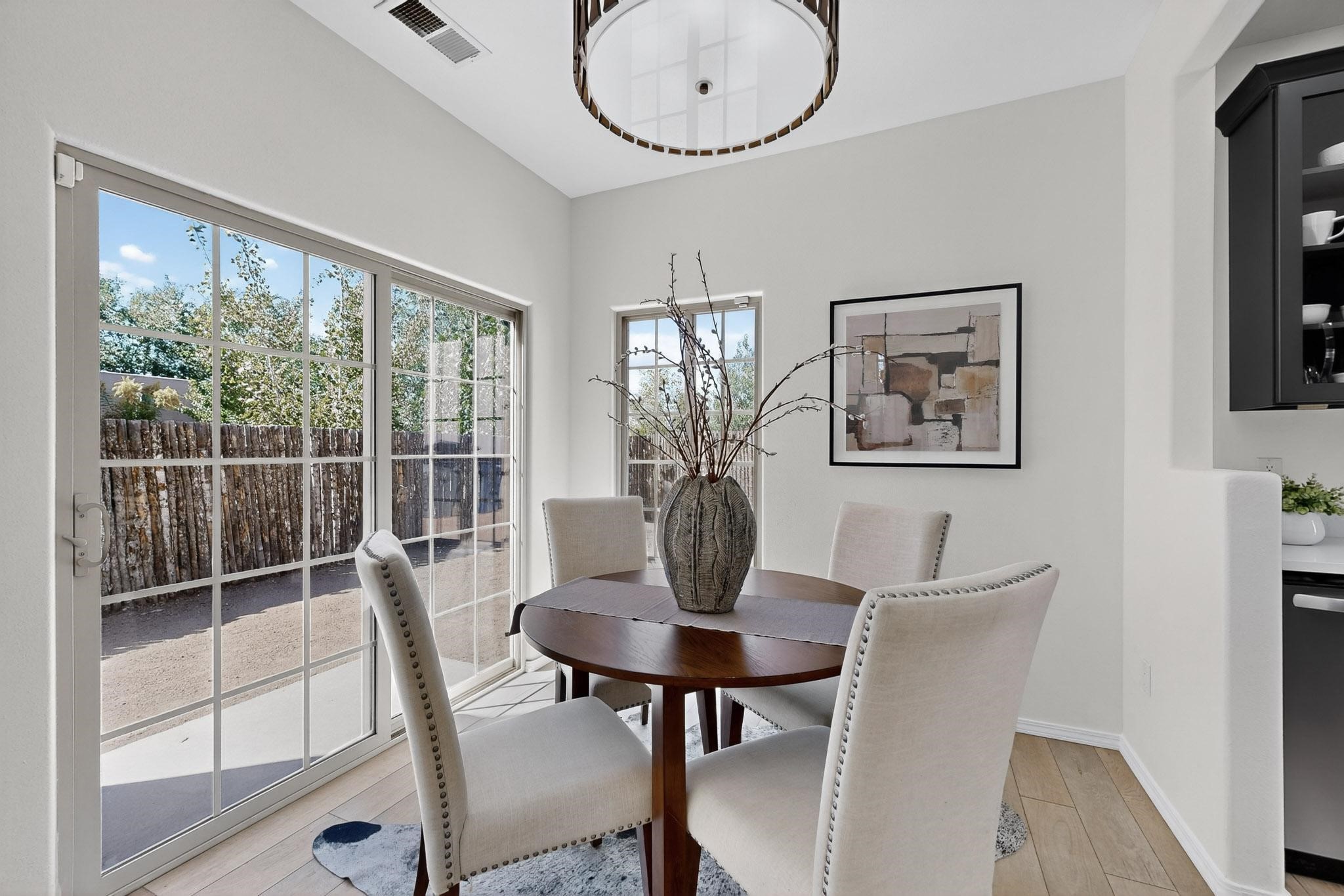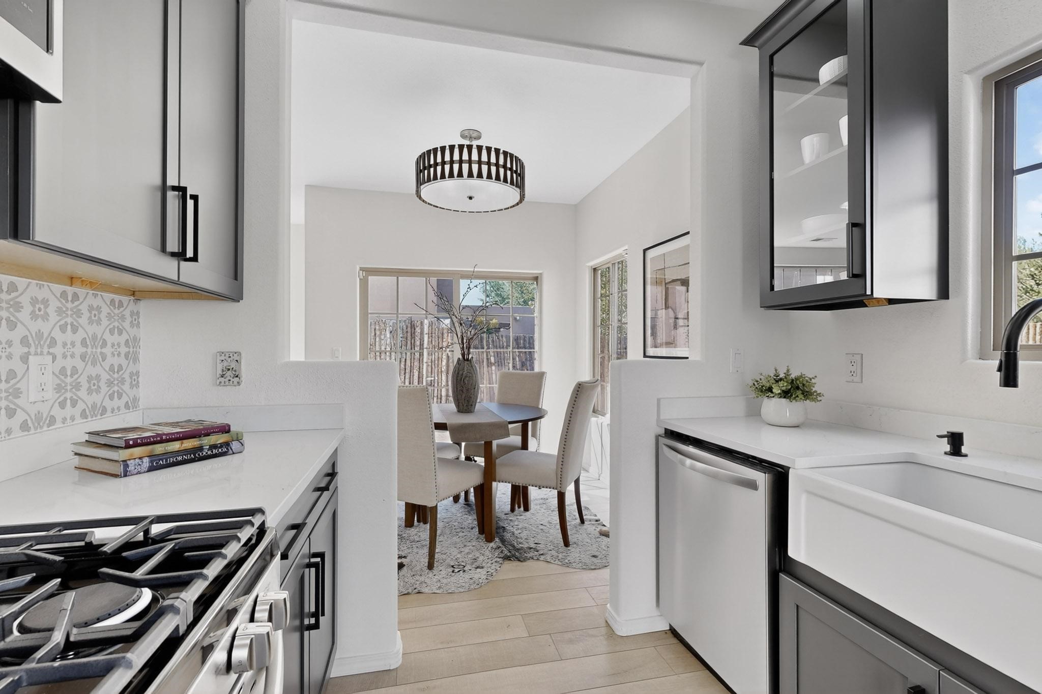 Fresh, inviting, and thoughtfully upgraded, this Nava Ade beauty is move-in ready and designed for comfort. Soft tones, new finishes, and natural light create a warm atmosphere throughout, while the recent renovations provide peace of mind and lasting style.The home features new carpet, durable laminate wood flooring, and all-new paint for a crisp, updated feel. The kitchen has been fully transformed with custom cabinets, quartz countertops, a farmhouse sink, and brand-new Frigidaire appliances -- a chef's delight with elegance and function built in. Bathrooms have been completed with custom tile and high-end finishes, giving them a spa-like quality. Every detail, from the new light fixtures to the brand-new washer and dryer, reflects care and quality.Outside, the property shines with refreshed stucco and woodwork, updated landscaping, and a serviced roof with canales and parapets addressed. A new garage door and opener provide convenience, while new glass panes brighten the living spaces. Systems are solid, with a newer water heater, efficient forced air heating, and an available alarm system.Located in the highly desirable Nava Ade subdivision, residents enjoy walking trails, community parks, and an easy connection to everything Santa Fe has to offer. This is a home that blends quality upgrades with Santa Fe charm, ready for its next chapter.