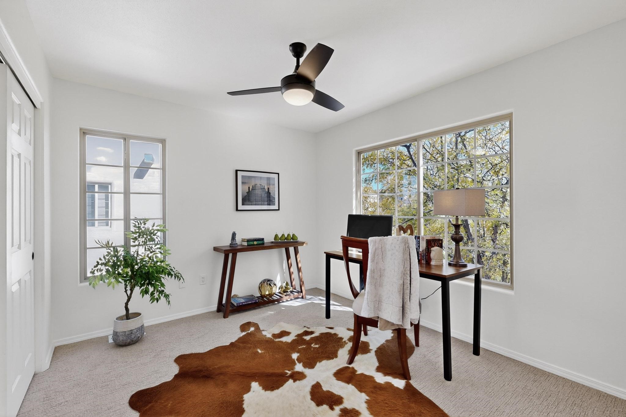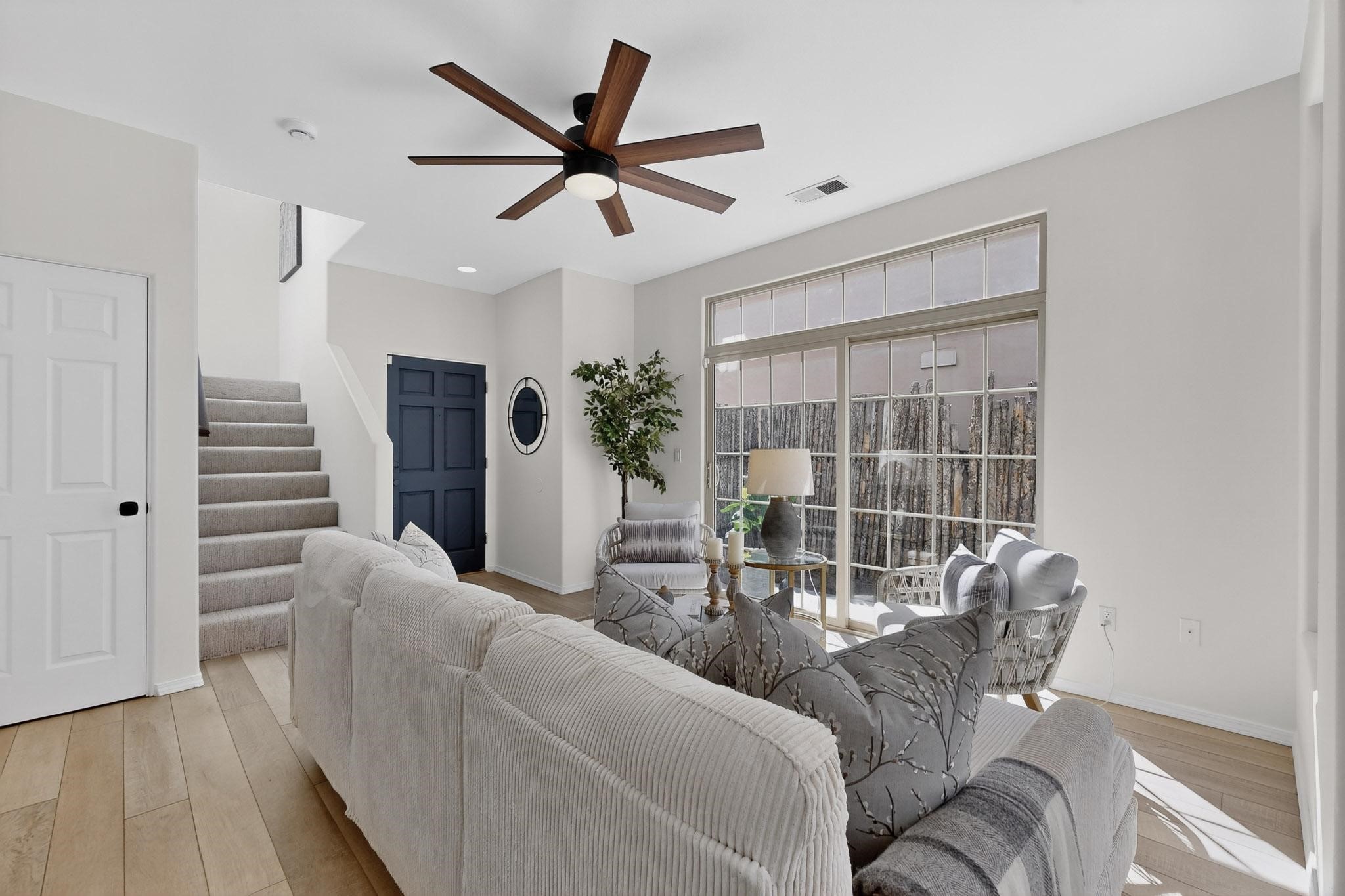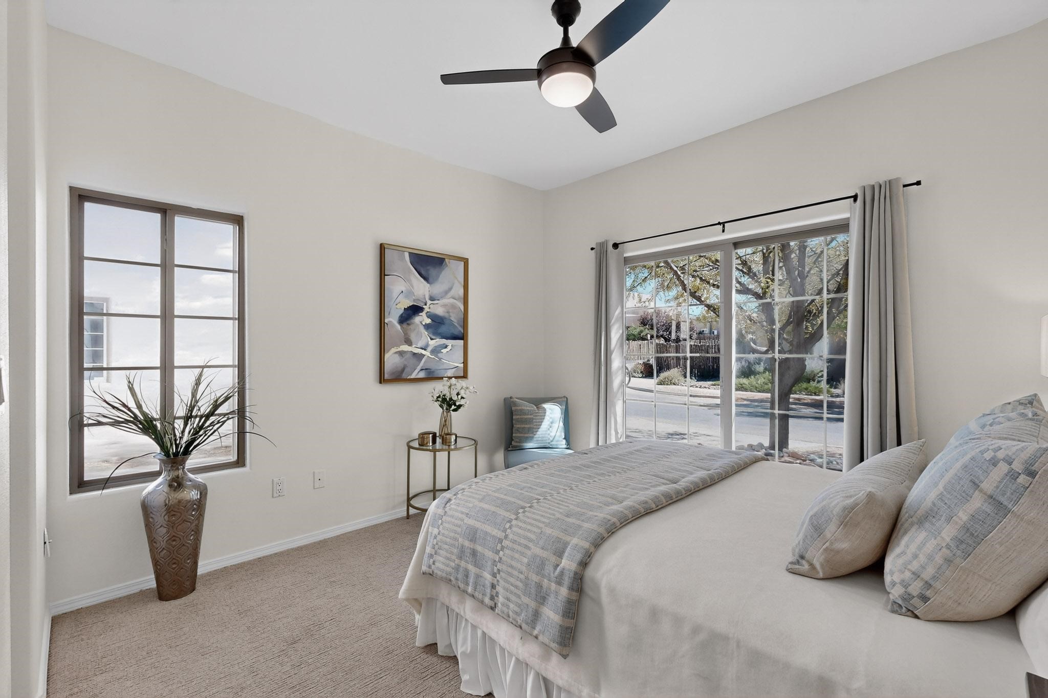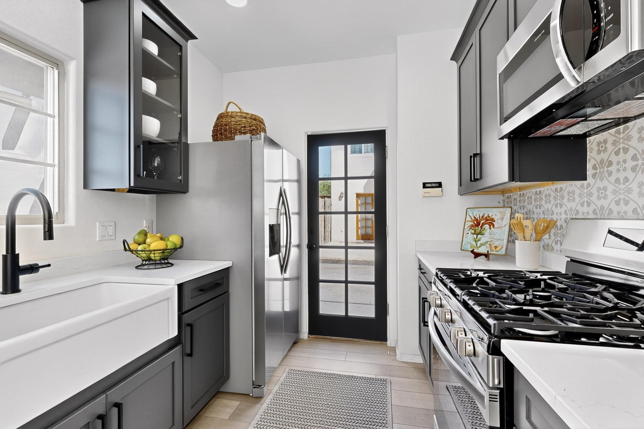 Fresh, inviting, and thoughtfully upgraded, this Nava Ade beauty is move-in ready and designed for comfort. Soft tones, new finishes, and natural light create a warm atmosphere throughout, while the recent renovations provide peace of mind and lasting style.The home features new carpet, durable laminate wood flooring, and all-new paint for a crisp, updated feel. The kitchen has been fully transformed with custom cabinets, quartz countertops, a farmhouse sink, and brand-new Frigidaire appliances -- a chef's delight with elegance and function built in. Bathrooms have been completed with custom tile and high-end finishes, giving them a spa-like quality. Every detail, from the new light fixtures to the brand-new washer and dryer, reflects care and quality.Outside, the property shines with refreshed stucco and woodwork, updated landscaping, and a serviced roof with canales and parapets addressed. A new garage door and opener provide convenience, while new glass panes brighten the living spaces. Systems are solid, with a newer water heater, efficient forced air heating, and an available alarm system.Located in the highly desirable Nava Ade subdivision, residents enjoy walking trails, community parks, and an easy connection to everything Santa Fe has to offer. This is a home that blends quality upgrades with Santa Fe charm, ready for its next chapter.