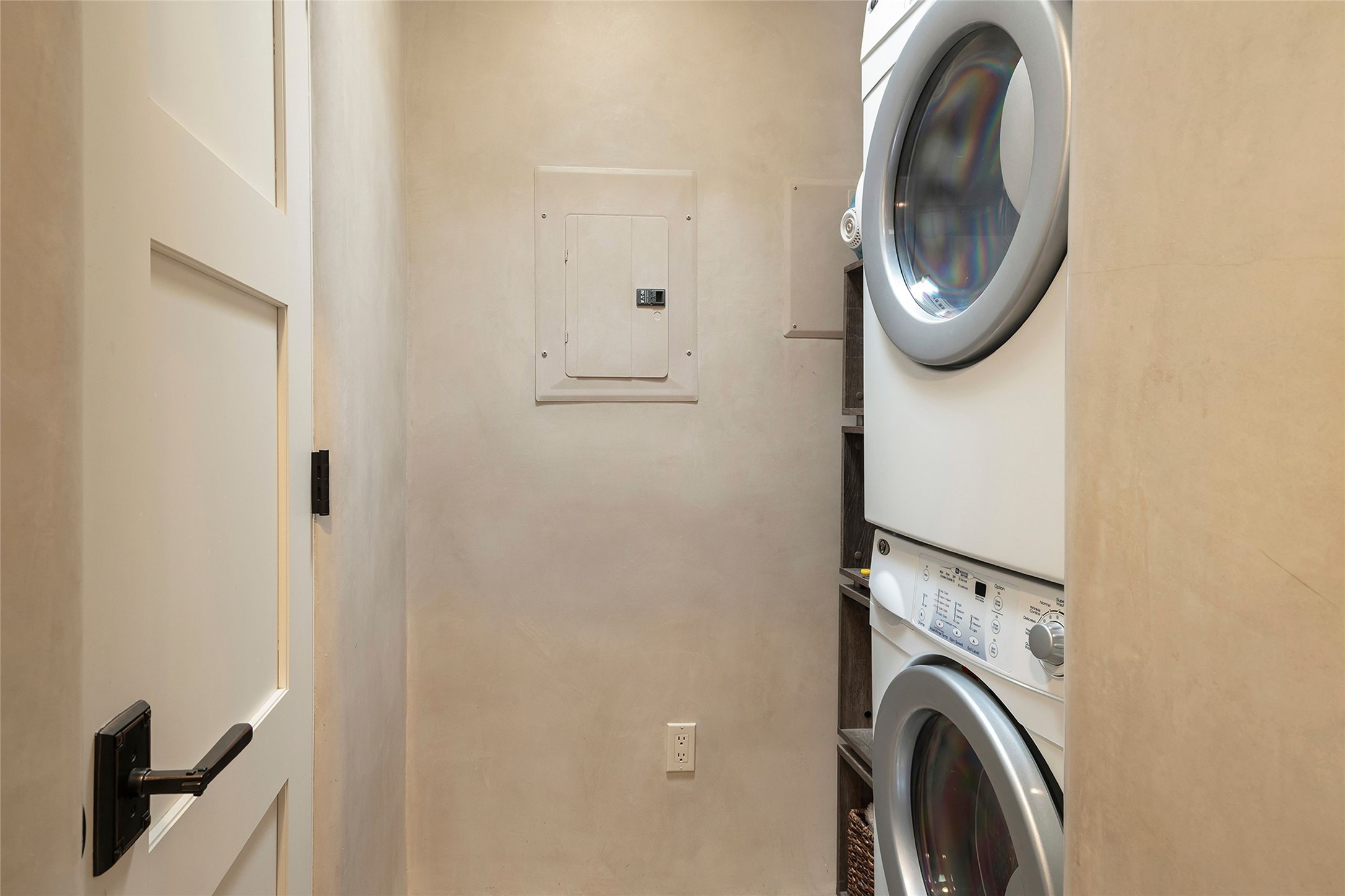 Just steps from the historic Santa Fe Plaza, this exquisite and beautifully updated Juniper Terrace condominium captures the essence of timeless Santa Fe architecture enhanced by sophisticated modern updates. Set within one of the city's most desirable locations, this rare single-level, two-bedroom, two-bath residence offers a seamless blend of style, comfort, and authenticity. The home's inviting living room, anchored by rich vigas and a grand central fireplace, creates a warm and elegant gathering space. The modern chef's kitchen, designed for both beauty and functionality, features granite countertops, high-end appliances, and a breakfast bar that opens gracefully to the dining area and expansive outdoor entertaining spaces. The private owner's suite is a serene retreat, featuring a spa-inspired bath with a jetted tub/shower, and direct access to a secluded patio. The guest suite, complete with its own ensuite bath and private patio access, provides versatility for hosting guests or creating a personal workspace. Multiple enclosed courtyards and lushly landscaped patios invite year-round outdoor living, enhanced by vibrant plantings and a tranquil water feature. Additional highlights include hardwood flooring, creamy plaster walls, rich vigas throughout, and convenient off-street parking. Offering both intimacy and sophistication, this remarkable property exemplifies the ultimate Santa Fe experience--just a short stroll from world-class dining, galleries, and the cultural heart of the city, this incredible home is not to be missed!