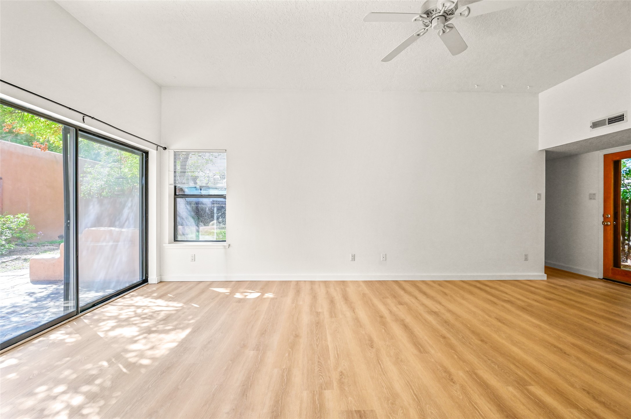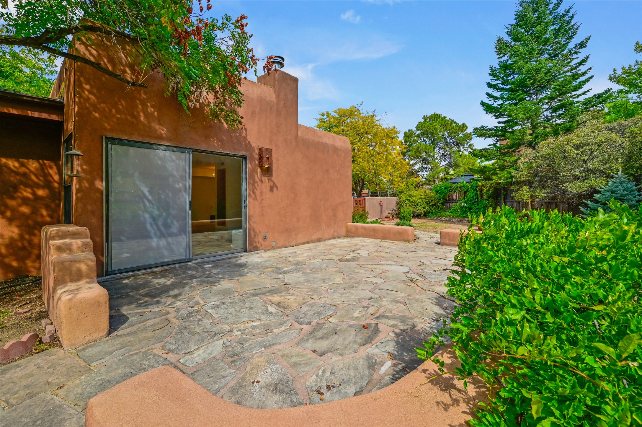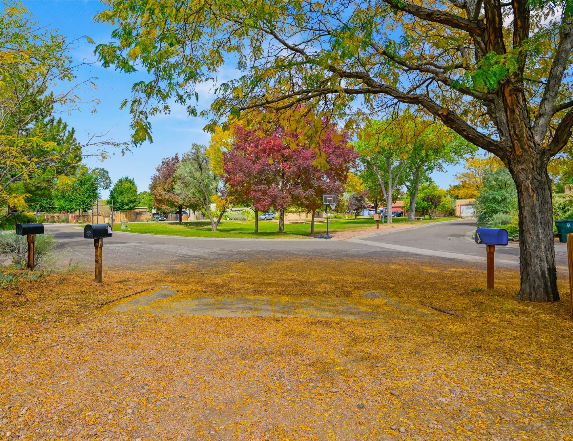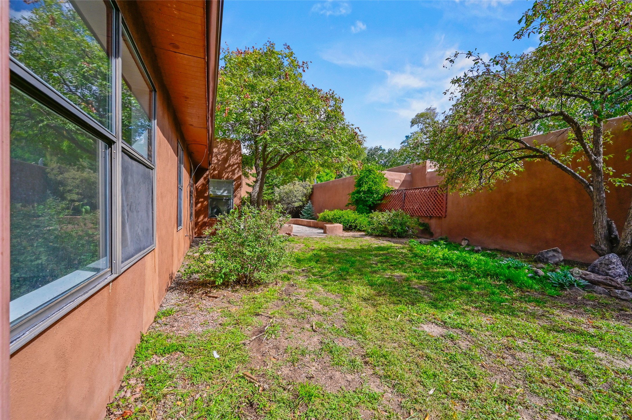 Nestled in the serene Pueblo Alegre neighborhood at the end of a quiet cul-de-sac, this bright and inviting home combines comfort with convenience. Situated opposite a lush park and surrounded by mature fruit trees, a vegetable garden, and a flagstone patio, the outdoor spaces are perfect for relaxation and connecting with nature. Inside, you'll discover new flooring and a well-maintained interior featuring a spacious, open layout and a primary bedroom with natural light and a custom closet. Enjoy easy access to scenic walking and biking along the nearby Santa Fe River Trail. Pueblo Alegre, a beloved subdivision opposite Frenchy's Field City Park, offers two small parks and a children's playground--creating an ideal setting for peaceful living just minutes from all Santa Fe has to offer.