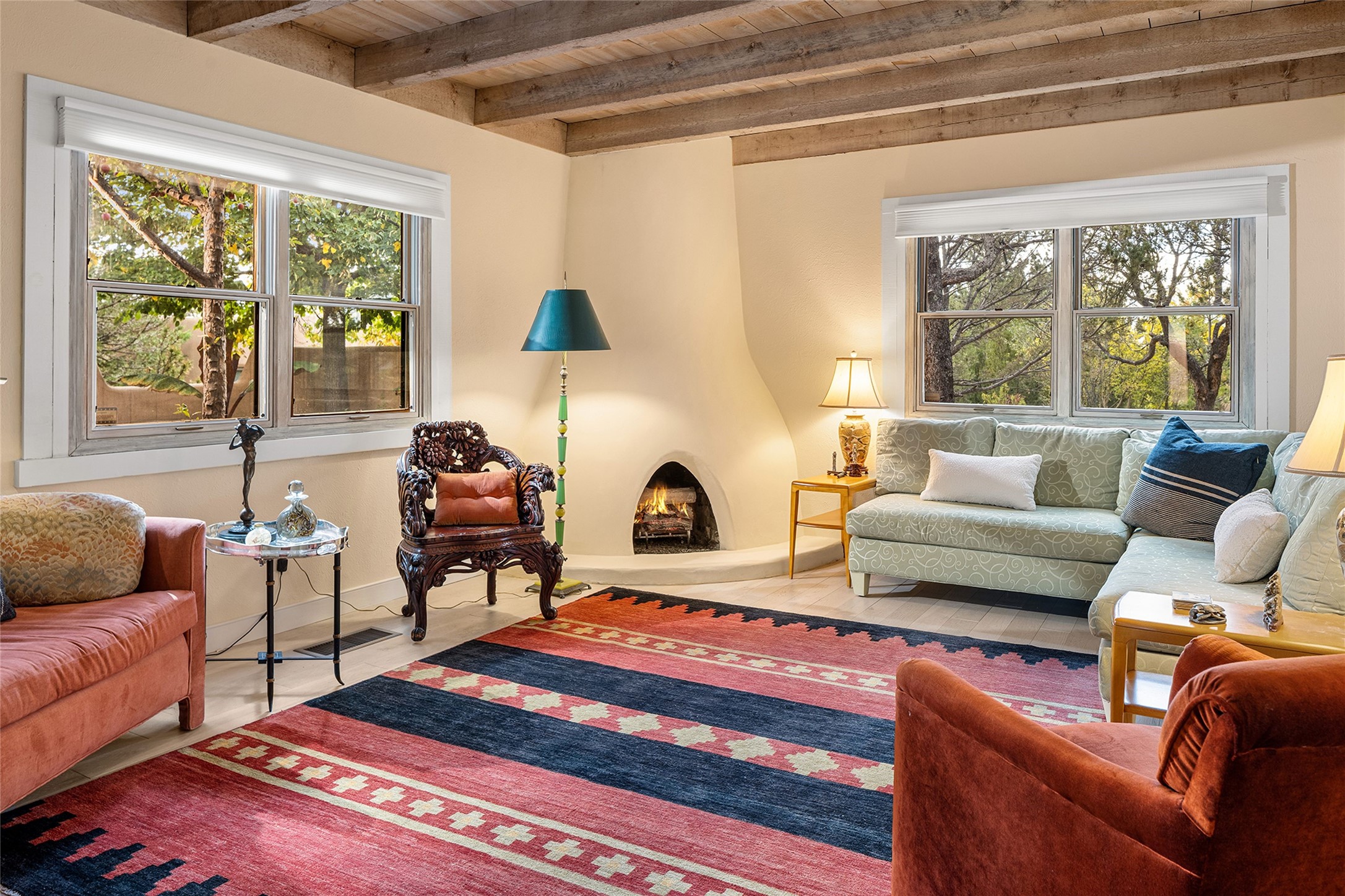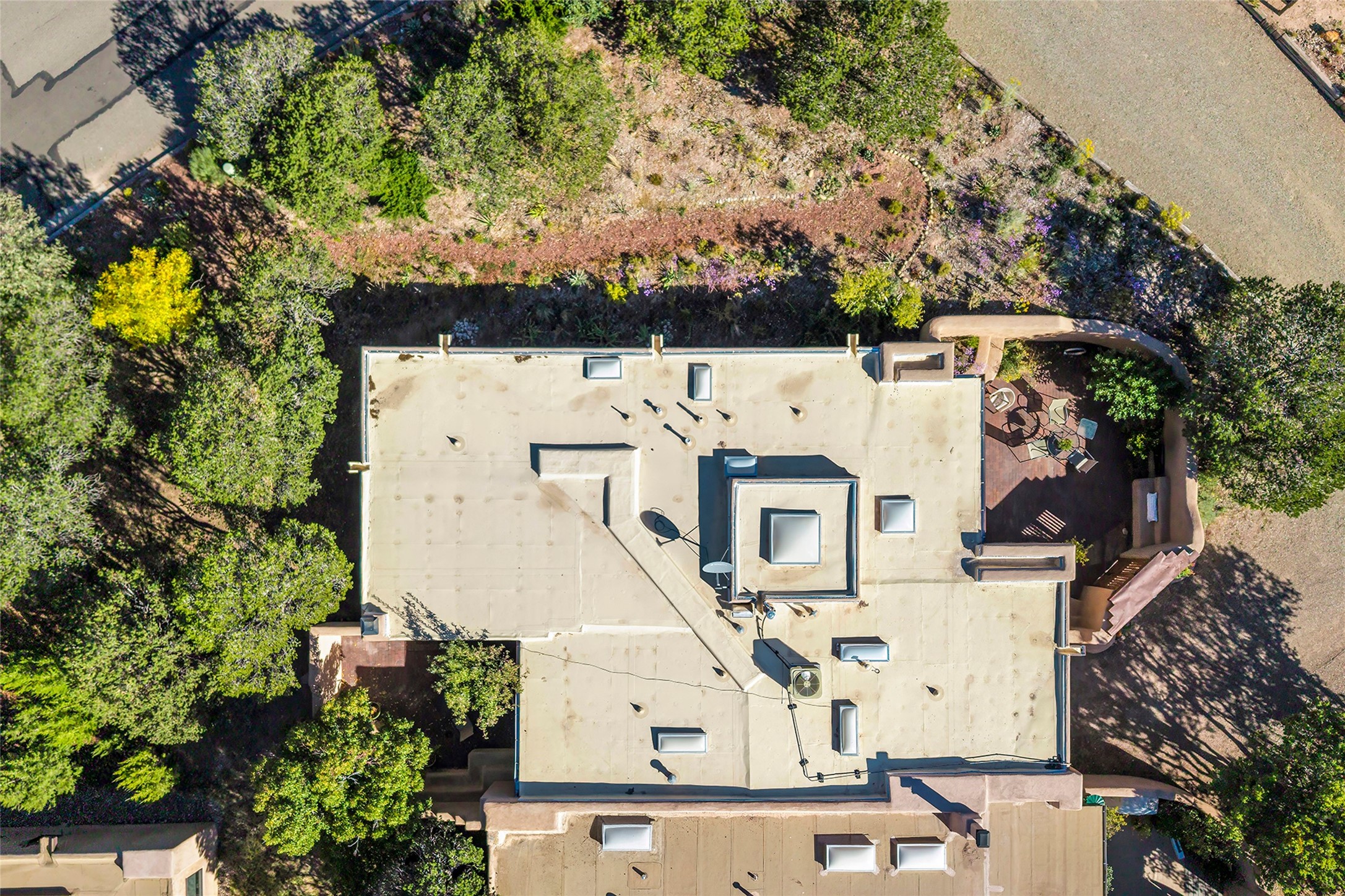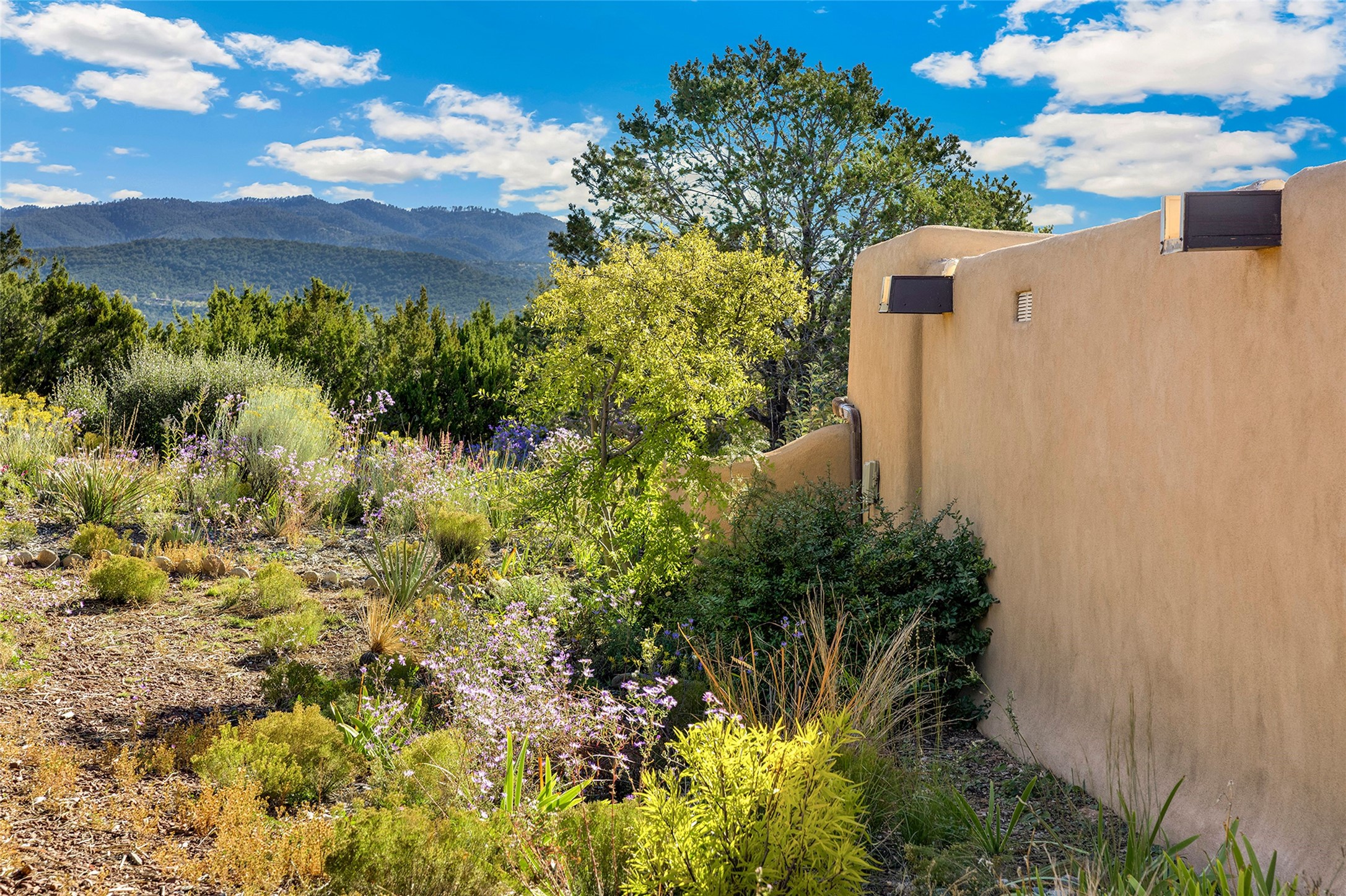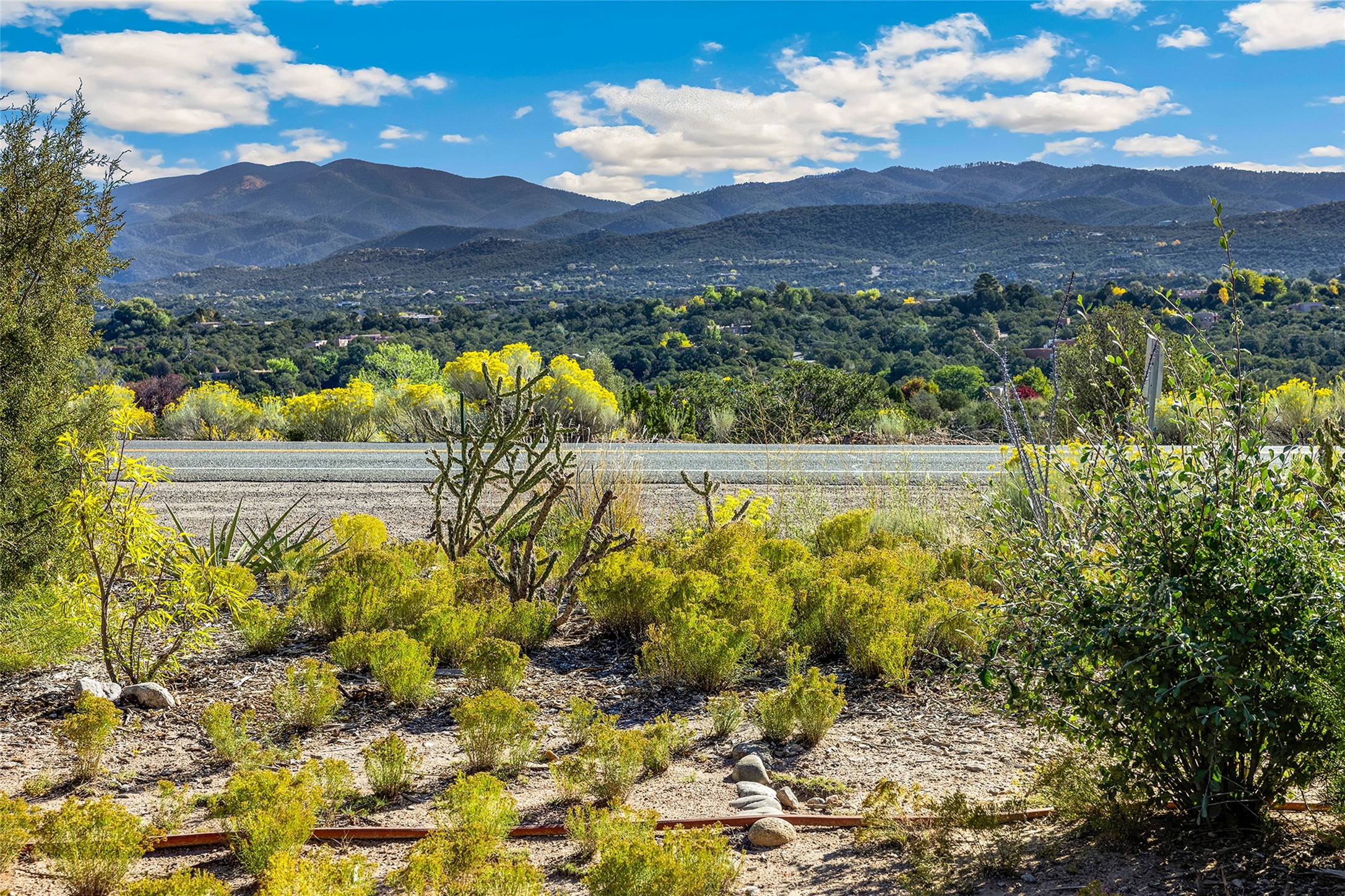 Perched at the top of the hill, this exceptional single-level end-unit condominium was the former model home and enjoys both privacy and breathtaking Sangre de Cristo mountain views. A rare three-bedroom, three-bath residence on the desirable north side, it offers easy access to downtown Santa Fe. being one mile away, the Ski Basin, mountain trails and Los Alamos.Thoughtfully updated throughout, all three en-suite baths were renovated to the studs last year and hardwood floors were added throughout the home by this owner. The primary suite has a large walk in closet and the front guest suite has a wall of built in bookcases that create a cozy study. The updated kitchen (2019) features granite countertops, stainless steel appliances, lighting, and sink. Additional upgrades include a GAF TPO roof (2018) with transferable warranty, a natural gas furnace and central refrigerated air (2018) and 99% UV-reduction skylights (2015) and the HOA recently completed stucco updates.The floor plan offers comfortable flow and separation of bedrooms, while the inviting front courtyard captures dramatic mountain views--an ideal setting for morning coffee or evening sunsets. The rear courtyard opens to a greenbelt, providing a tranquil backdrop for entertaining or relaxing. A one-car attached garage and two off-street parking spaces complete this move-in-ready gem.This special property combines classic Santa Fe charm, meticulous updates, and an unbeatable location.