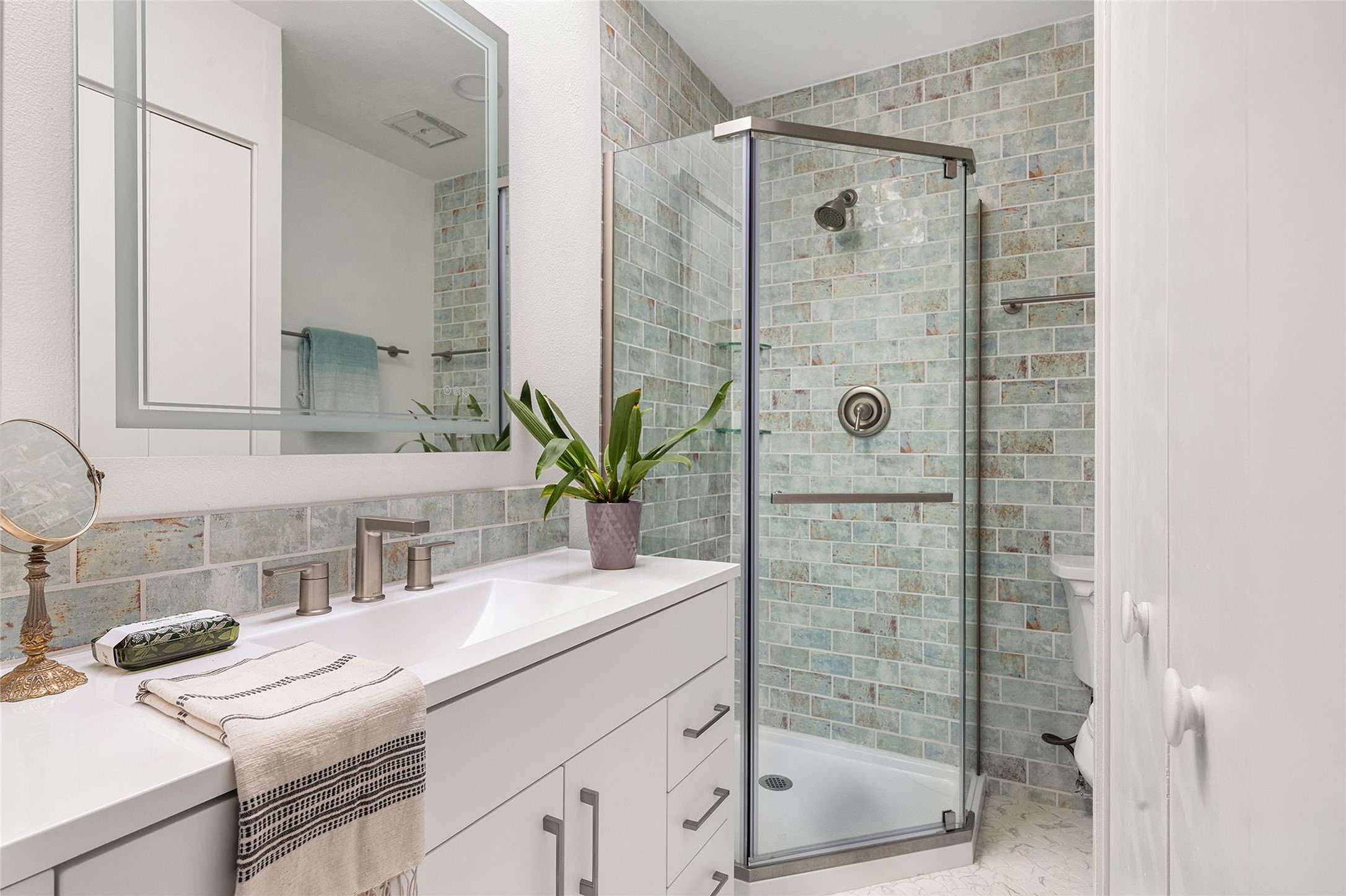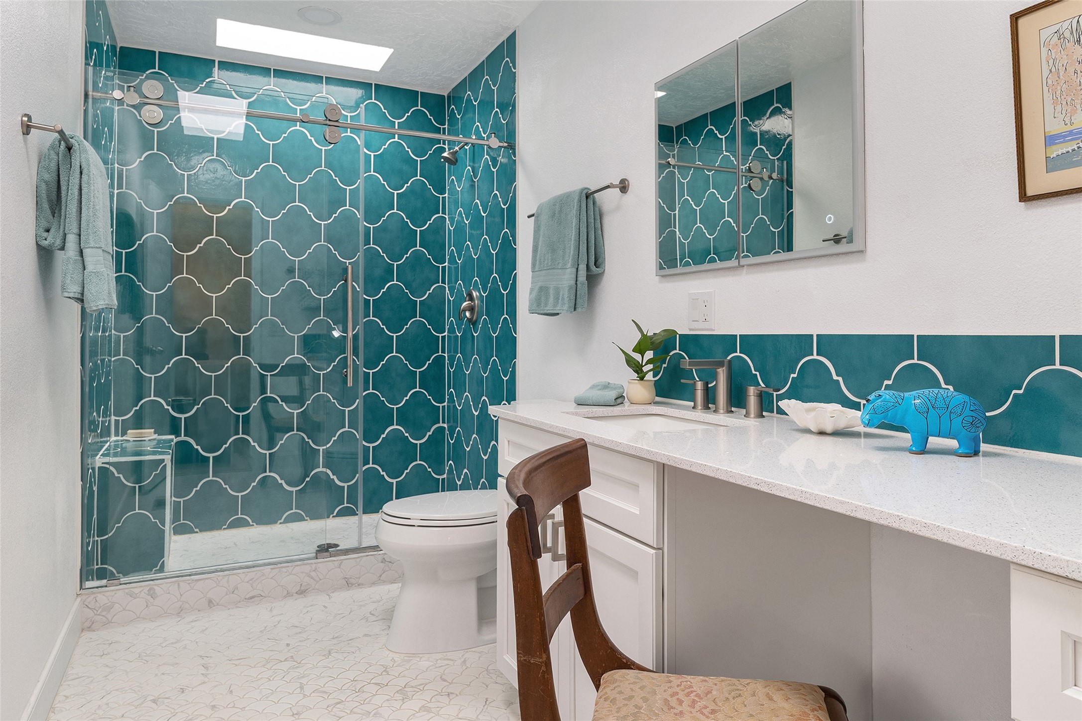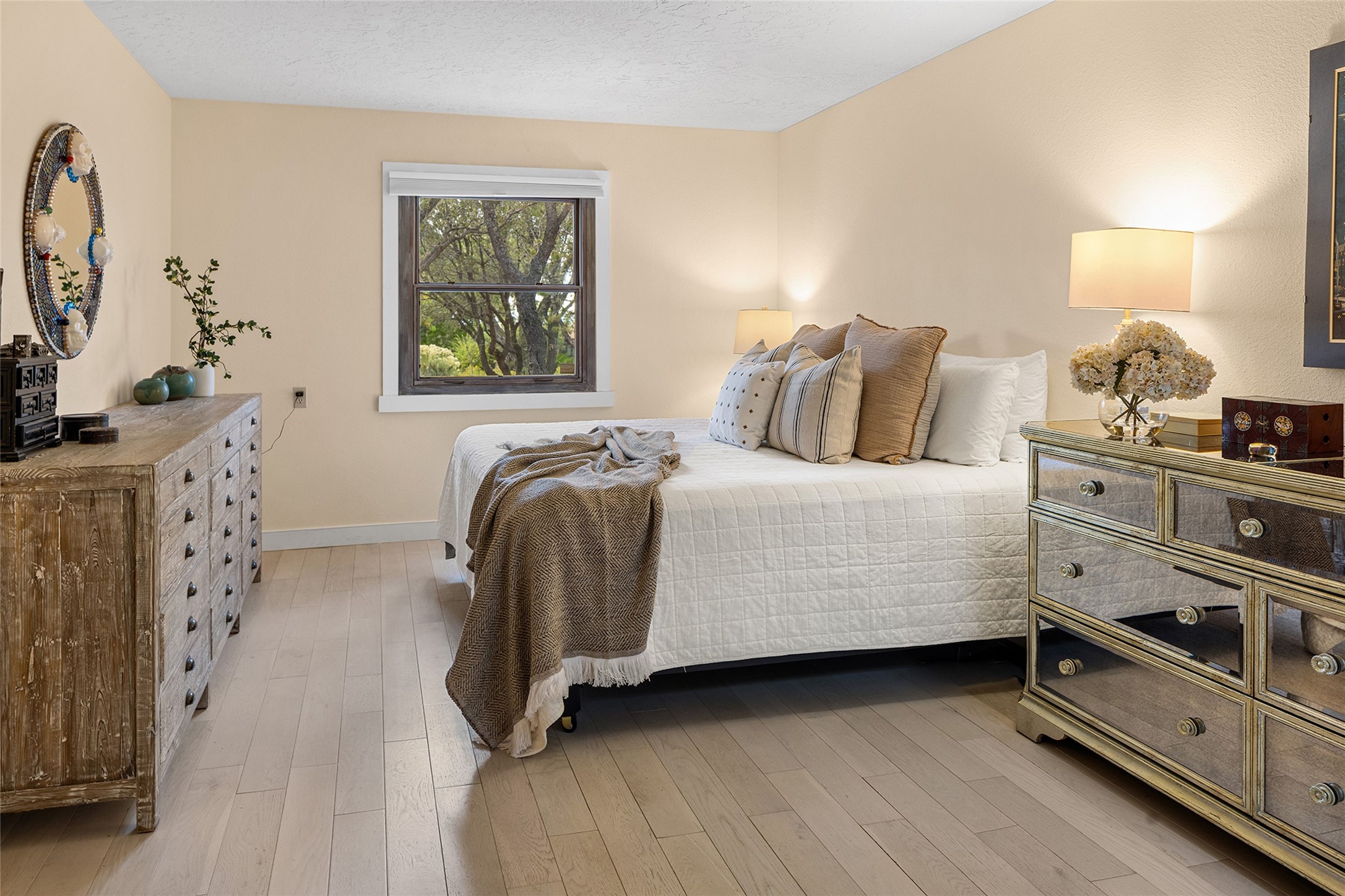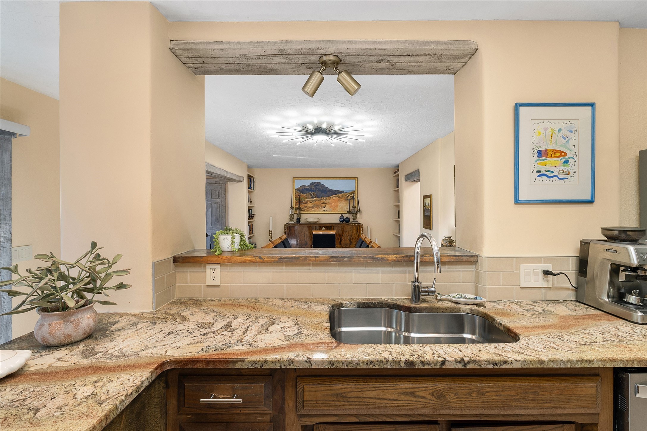 Perched at the top of the hill, this exceptional single-level end-unit condominium was the former model home and enjoys both privacy and breathtaking Sangre de Cristo mountain views. A rare three-bedroom, three-bath residence on the desirable north side, it offers easy access to downtown Santa Fe. being one mile away, the Ski Basin, mountain trails and Los Alamos.Thoughtfully updated throughout, all three en-suite baths were renovated to the studs last year and hardwood floors were added throughout the home by this owner. The primary suite has a large walk in closet and the front guest suite has a wall of built in bookcases that create a cozy study. The updated kitchen (2019) features granite countertops, stainless steel appliances, lighting, and sink. Additional upgrades include a GAF TPO roof (2018) with transferable warranty, a natural gas furnace and central refrigerated air (2018) and 99% UV-reduction skylights (2015) and the HOA recently completed stucco updates.The floor plan offers comfortable flow and separation of bedrooms, while the inviting front courtyard captures dramatic mountain views--an ideal setting for morning coffee or evening sunsets. The rear courtyard opens to a greenbelt, providing a tranquil backdrop for entertaining or relaxing. A one-car attached garage and two off-street parking spaces complete this move-in-ready gem.This special property combines classic Santa Fe charm, meticulous updates, and an unbeatable location.