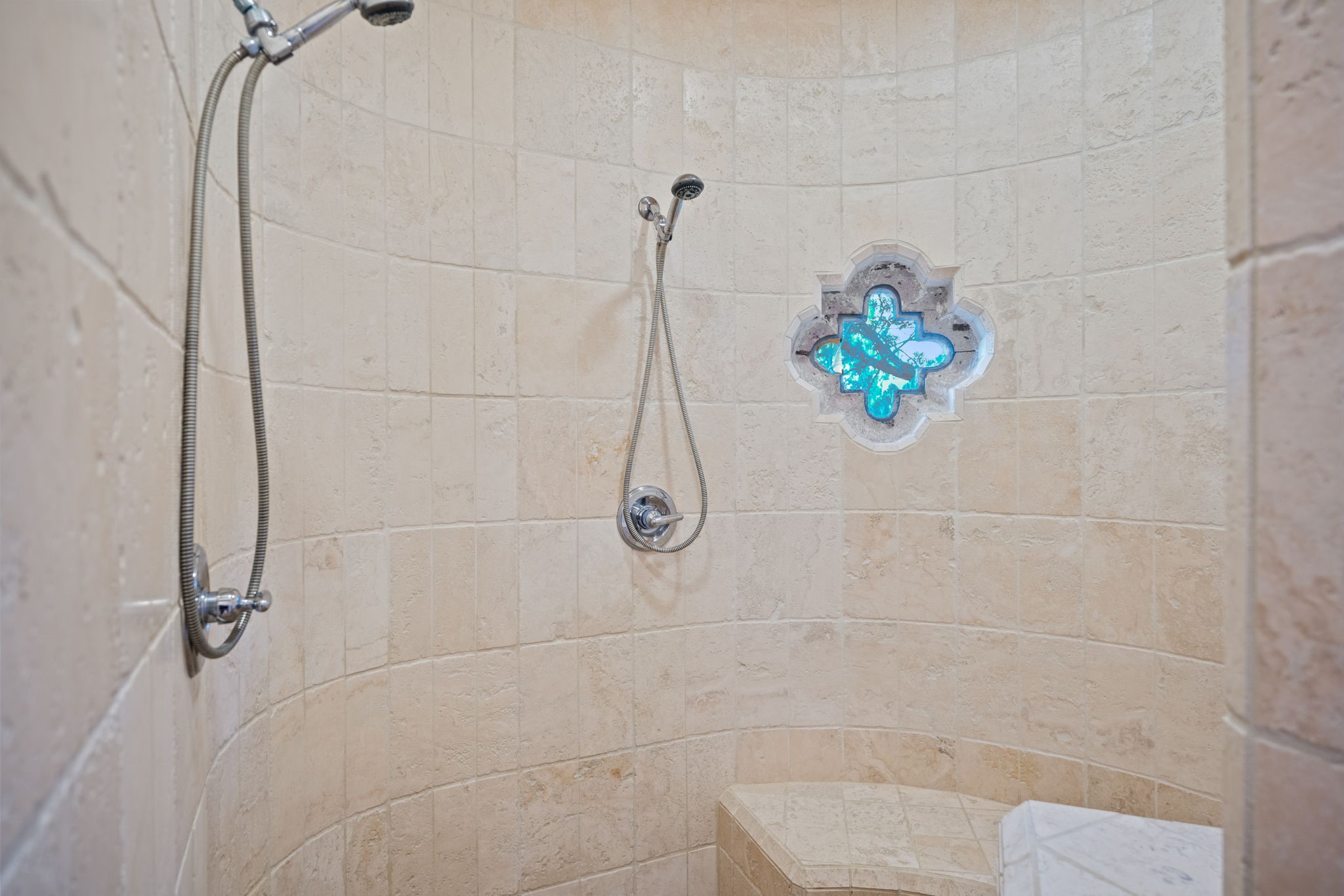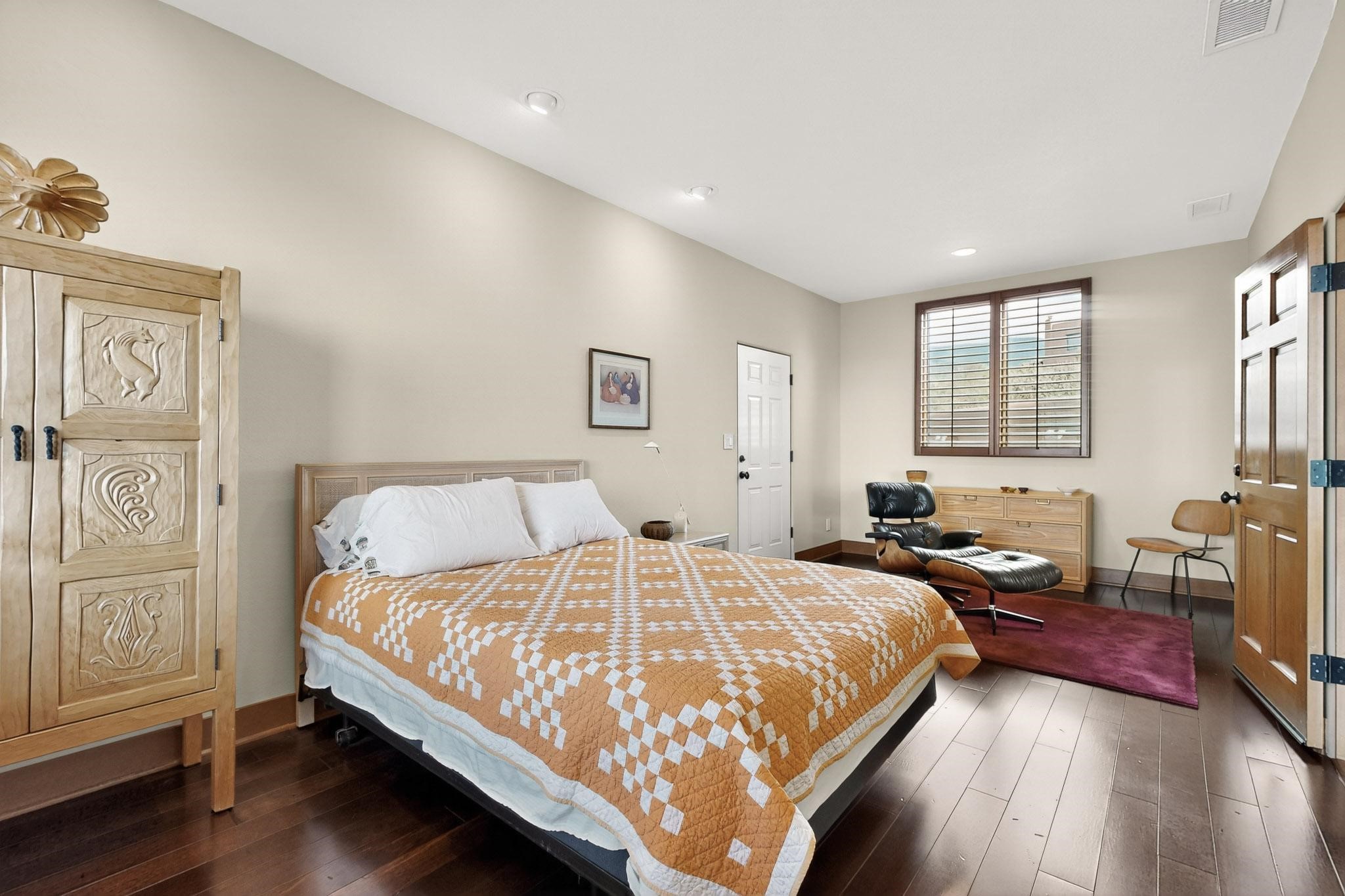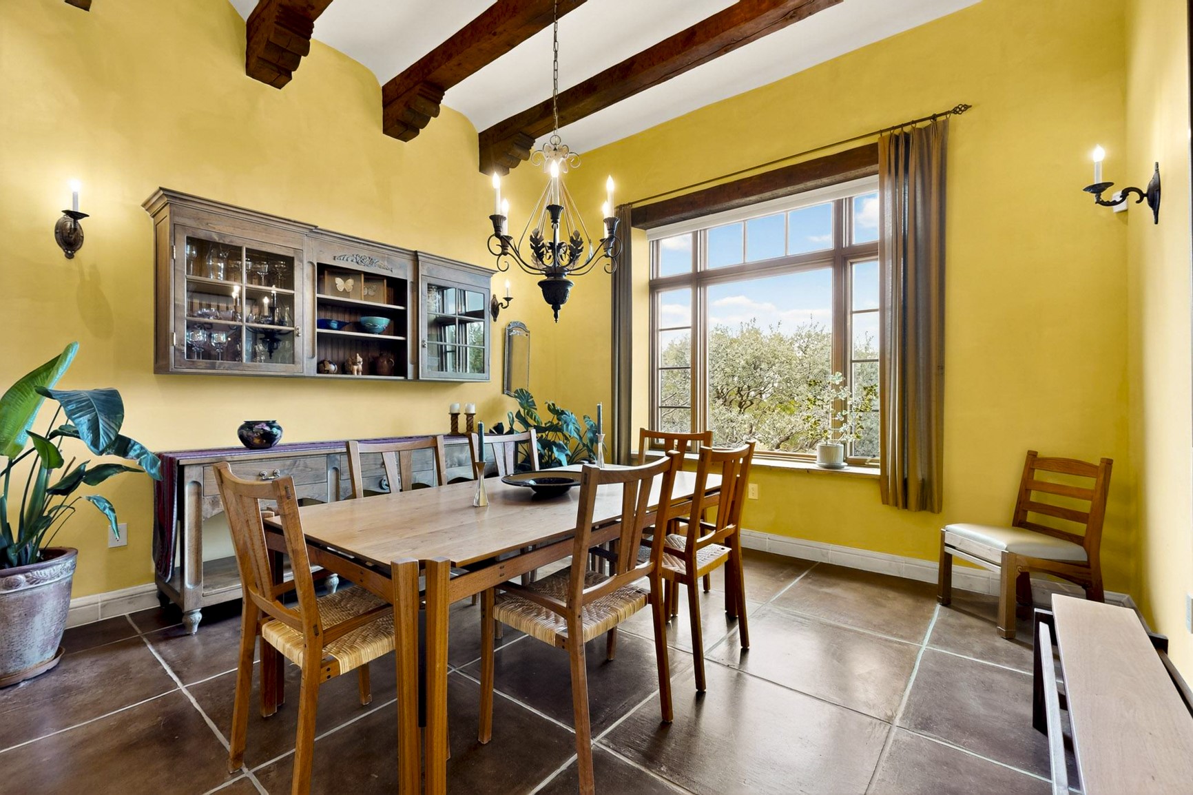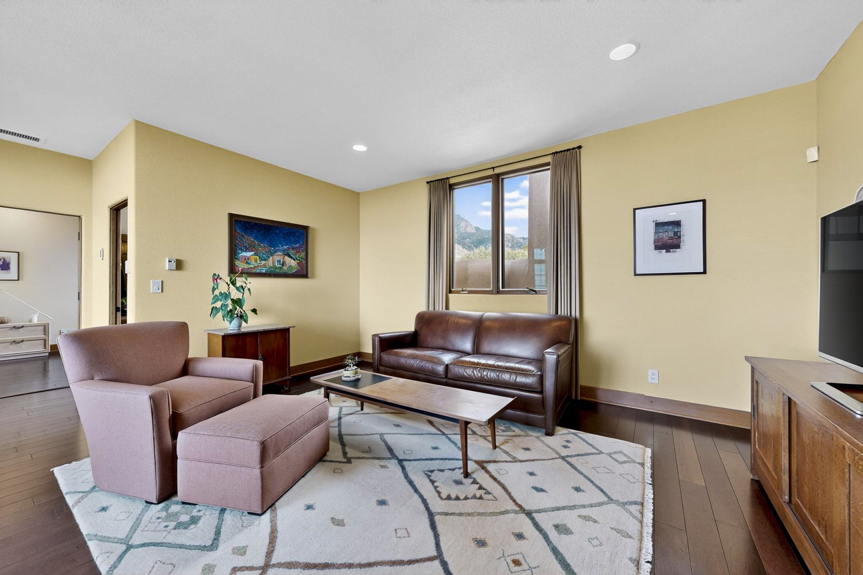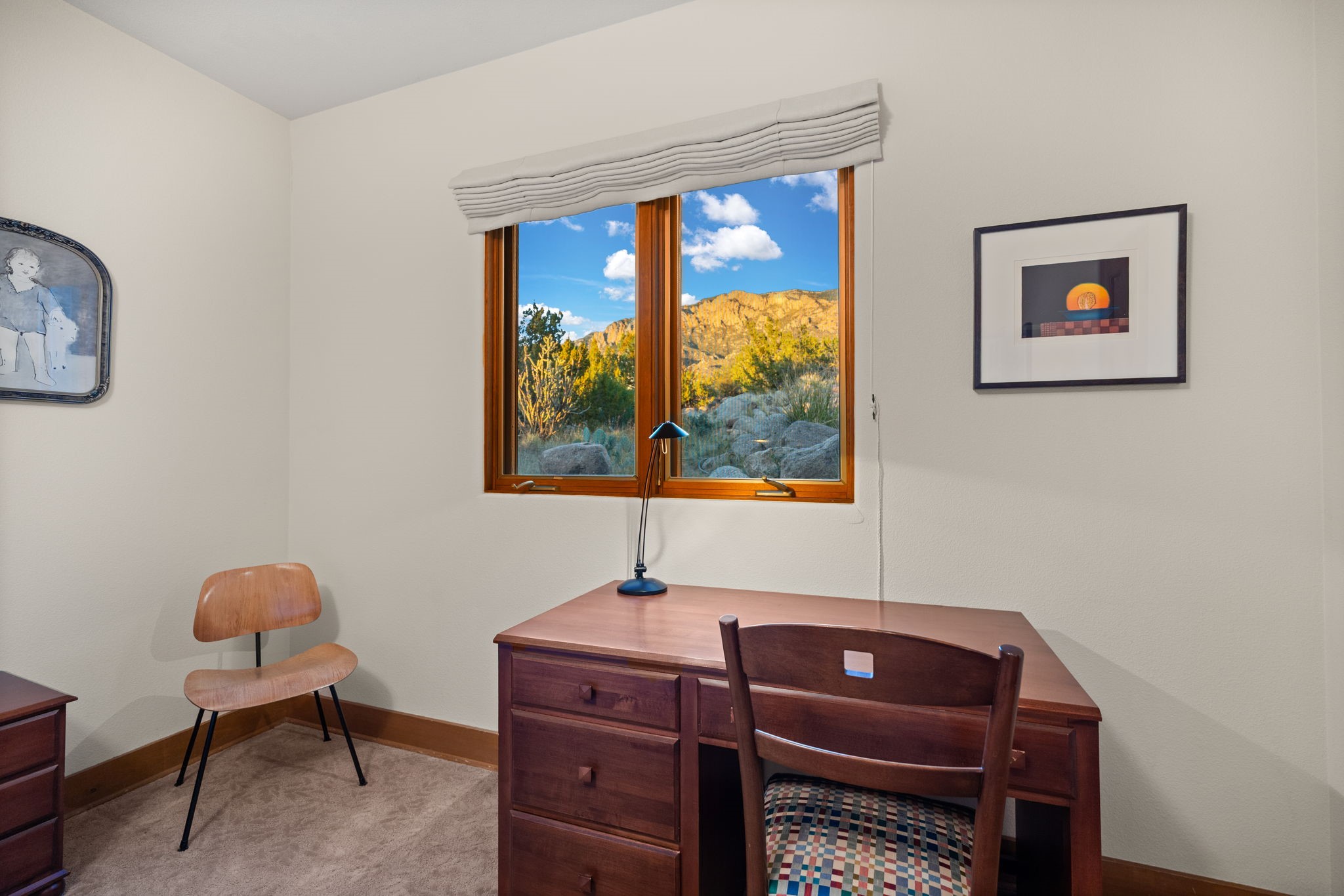 With vistas of the Sandia Mountains and city lights, this spacious 5,513 sq. ft. Sandia Heights estate is a rare blend of artistry, craftsmanship, and luxury. Upon entering the front door, the spacious living area introduces the understated beauty of this special home with hand-crafted details, deep sandstone sills, and a beautiful wood-burning fireplace. Features such as expansive chip-carved beams, custom doors, and diamond plaster walls provide warmth and refinement. Expansive windows frame breathtaking views and bath the house with natural light, magically merging the outdoor and indoor spaces. The kitchen is a chef's dream with a Sub-Zero refrigerator and freezer, Viking Professional 6-burner stove with griddle, and a butler's pantry complete with a Sub-Zero wine and beverage coolerTogether with the eating nook, kiva fireplace seating area, and formal dining room the kitchen area is perfect for evenings with family or elegant entertaining. The primary suite is a true sanctuary featuring a coved ceiling with exposed beams and corbels, a gas log fireplace, and a cozy seating area with latilla ceiling and built-in bookcases. The adjoining spa-inspired bath has it all - a steam shower, dual shower heads, travertine seating, a skylight over the garden jetted tub, and a private yoga and meditation room. Additional living spaces include a home office attached to a secondary living room and multiple generous ensuite bedrooms. The private backyard feels like a Zen oasis under New Mexico skies with a tiered garden, in-ground spa, outdoor fireplace, and covered patio. Modern comforts abound with in-floor hot water radiant heat, large 3-car garage, abundant storage, central vacuum, built-in speakers, new stucco and septic in 2025! This could be your ABQ Dream Home!