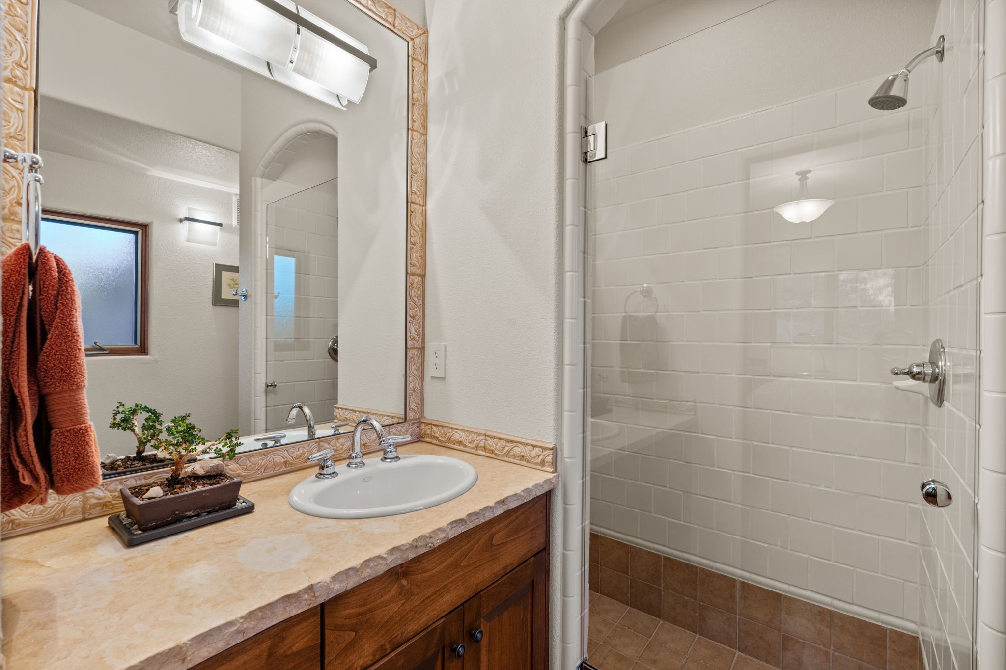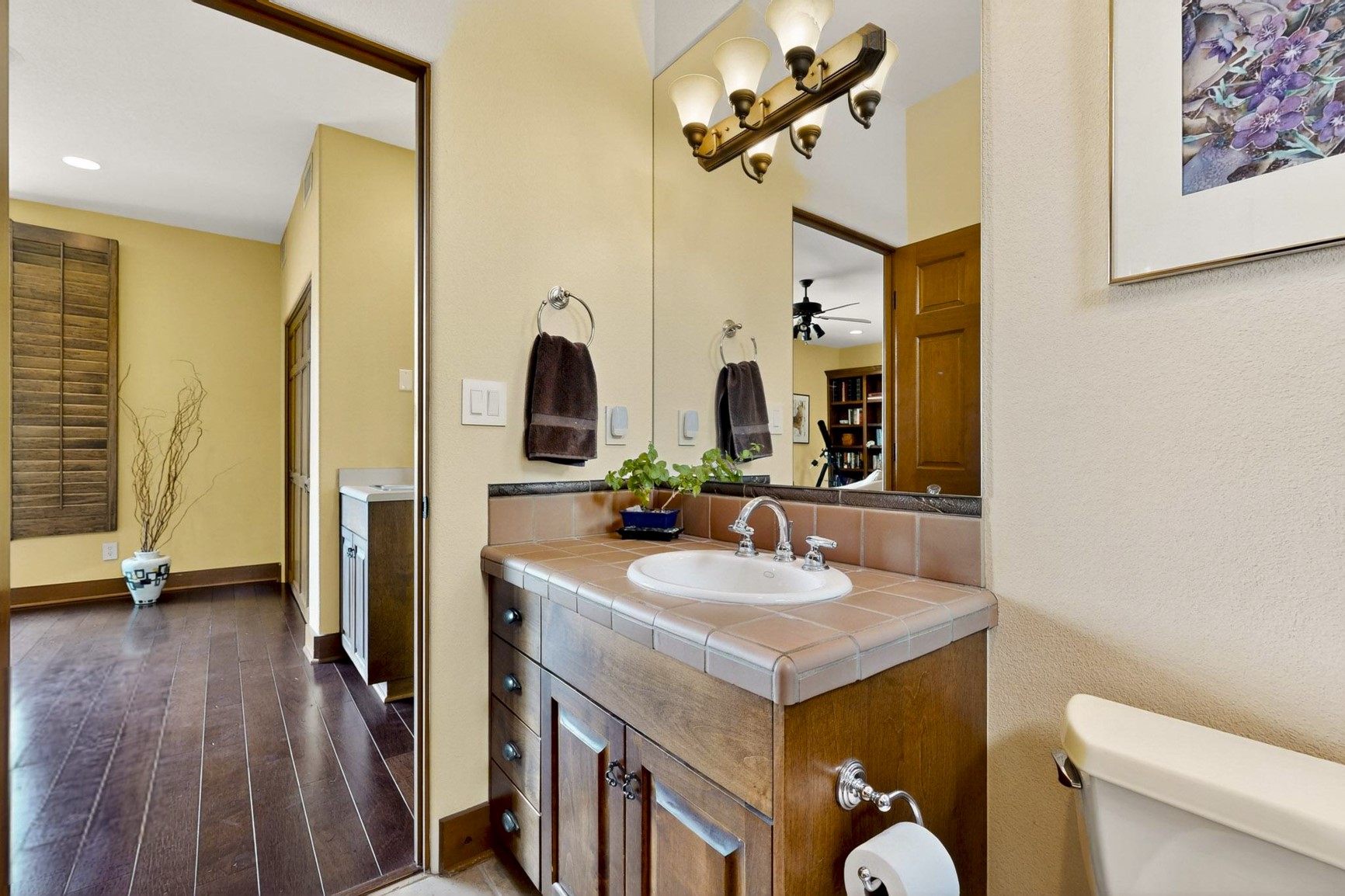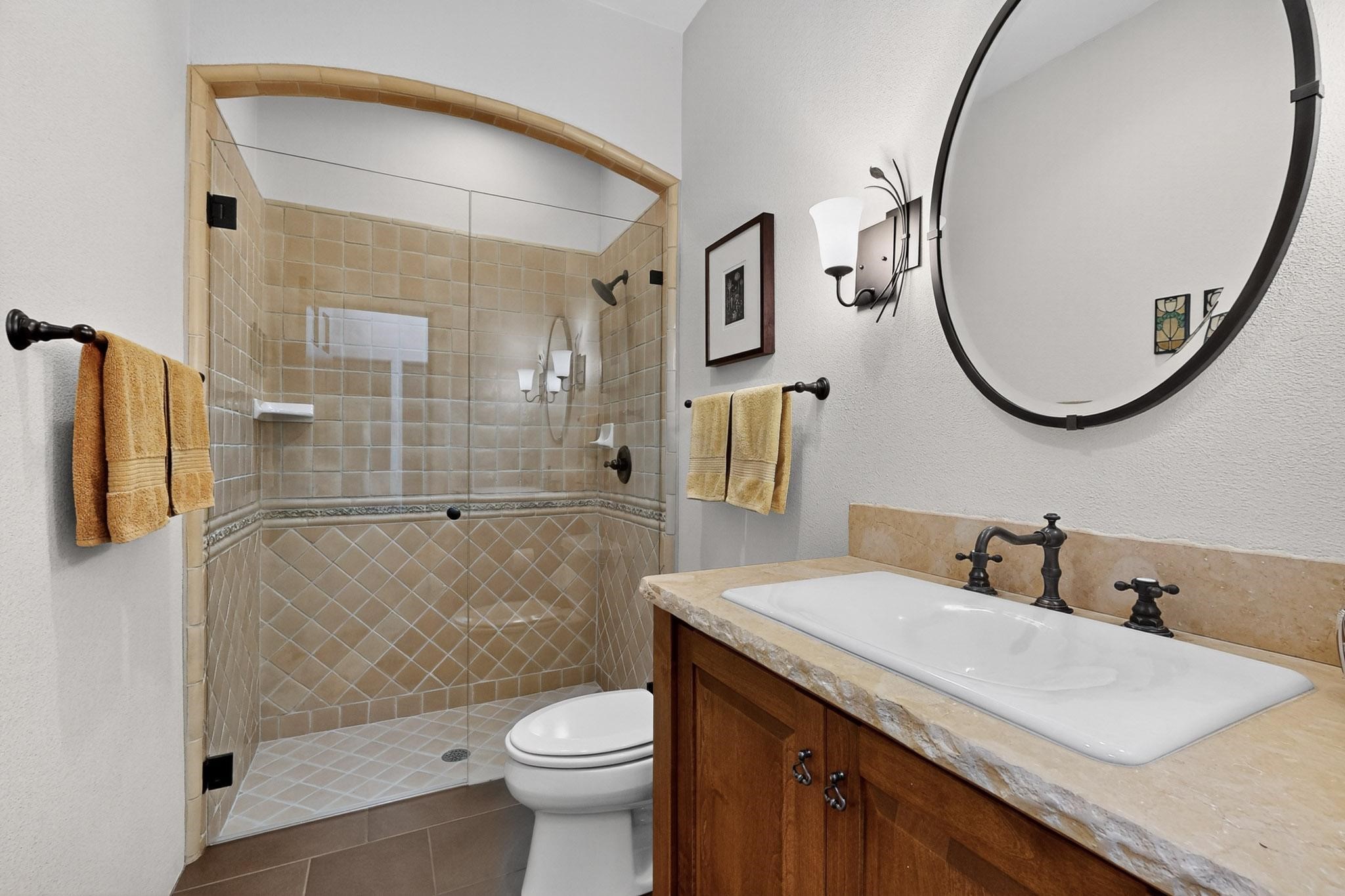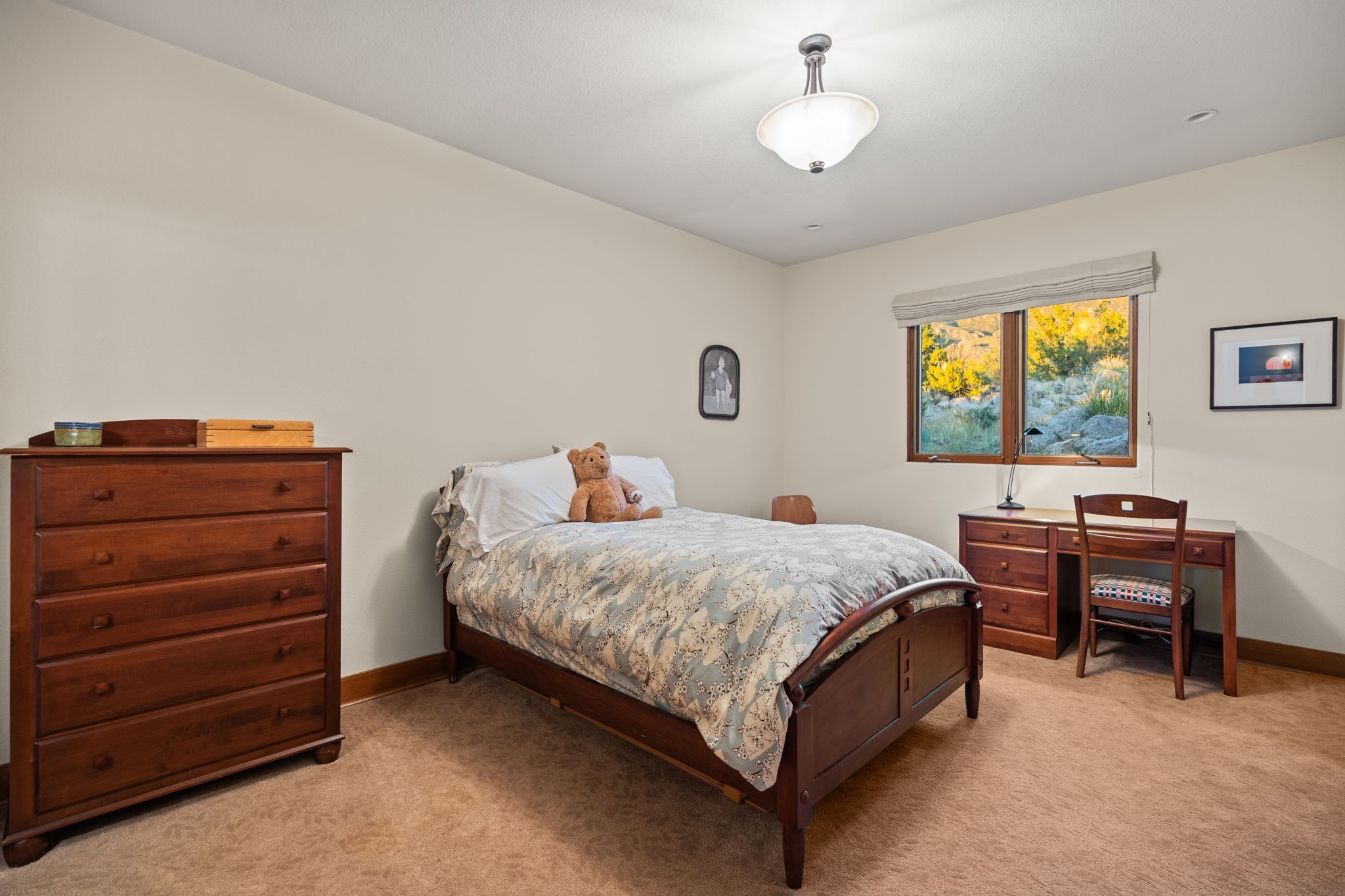 With vistas of the Sandia Mountains and city lights, this spacious 5,513 sq. ft. Sandia Heights estate is a rare blend of artistry, craftsmanship, and luxury. Upon entering the front door, the spacious living area introduces the understated beauty of this special home with hand-crafted details, deep sandstone sills, and a beautiful wood-burning fireplace. Features such as expansive chip-carved beams, custom doors, and diamond plaster walls provide warmth and refinement. Expansive windows frame breathtaking views and bath the house with natural light, magically merging the outdoor and indoor spaces. The kitchen is a chef's dream with a Sub-Zero refrigerator and freezer, Viking Professional 6-burner stove with griddle, and a butler's pantry complete with a Sub-Zero wine and beverage coolerTogether with the eating nook, kiva fireplace seating area, and formal dining room the kitchen area is perfect for evenings with family or elegant entertaining. The primary suite is a true sanctuary featuring a coved ceiling with exposed beams and corbels, a gas log fireplace, and a cozy seating area with latilla ceiling and built-in bookcases. The adjoining spa-inspired bath has it all - a steam shower, dual shower heads, travertine seating, a skylight over the garden jetted tub, and a private yoga and meditation room. Additional living spaces include a home office attached to a secondary living room and multiple generous ensuite bedrooms. The private backyard feels like a Zen oasis under New Mexico skies with a tiered garden, in-ground spa, outdoor fireplace, and covered patio. Modern comforts abound with in-floor hot water radiant heat, large 3-car garage, abundant storage, central vacuum, built-in speakers, new stucco and septic in 2025! This could be your ABQ Dream Home!
