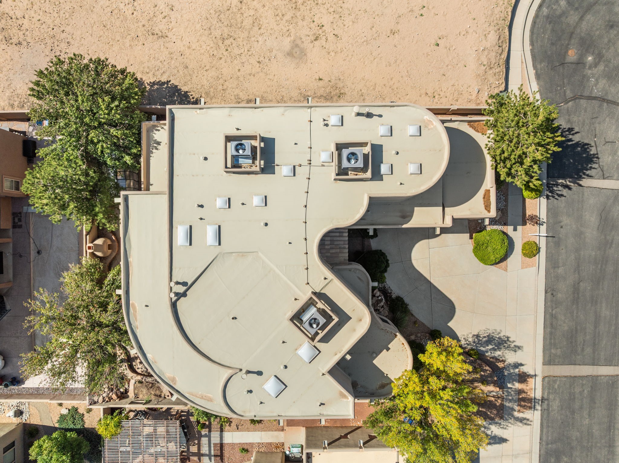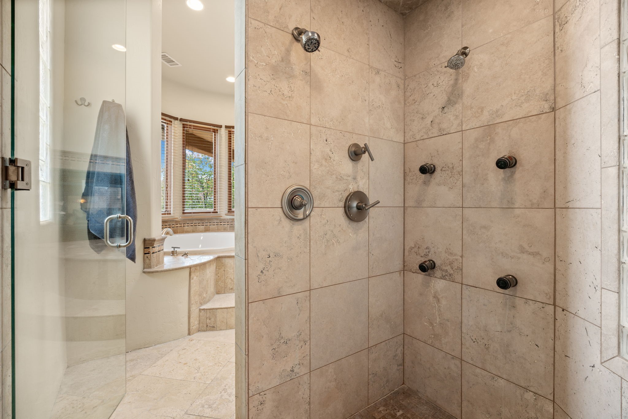 Experience luxury living at its finest in this 5,235 sq. ft. custom masterpiece perfectly situated on a cul-de-sac within an exclusive gated community. This exceptional home features 4 spacious bedrooms, 3 full baths, 2 half baths, an elegant office with its own fireplace, a private movie theater room, and a versatile game room/loft--offering the ultimate in comfort and entertainment. Impeccable craftsmanship is showcased throughout with travertine tile flooring, viga beam ceilings, intricate tile accents, and artful lighted niches. The gourmet kitchen is a chef's dream, boasting granite counters, Wolf and Sub-Zero appliances, a pot filler, warming drawer, and dual dishwashers--perfectly designed for both everyday living and lavish entertaining.The owner's suite is a serene retreat featuring a private sitting area with a two-way fireplace, balcony access to take in breathtaking mountain and city views, and a spa-inspired bath with steam shower and jetted tub. Enjoy five fireplaces placed throughout the home, creating warmth and ambiance in every gathering space.Additional features include in-floor radiant heat, three air conditioning units for year-round comfort, and timeless architectural detail that blends elegance with Southwestern charm. Every element of this home was designed to impress, extraordinary residence that offers sophistication, privacy, and panoramic views in one of the area's most desirable gated enclaves.