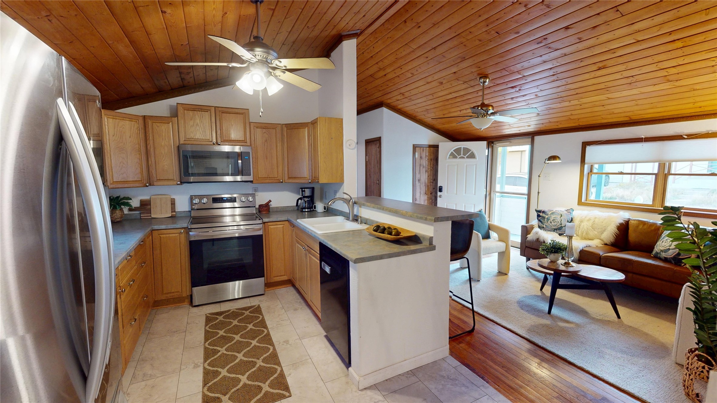 This welcoming home offers a smart open-concept layout with excellent space and flexibility. With three true bedrooms, a second full bathroom, a bonus living nook with a cozy fireplace, and a dedicated laundry room, it stands out from similar homes in the area for its functionality and ease of living.At the heart of the home is a well-planned kitchen designed for everyday comfort--featuring ample prep space, generous cabinetry, and a breakfast bar that connects seamlessly to the main living area. Whether you're cooking, hosting, or grabbing a quick bite, the layout is built for both comfort and connection.Step outside to a tiered backyard with sunny garden spots and room to relax or entertain. A large shed adds excellent storage or workshop potential, offering even more versatility. Generous off-street parking ensures easy access for daily errands and a warm welcome for guests. Located close to the high school, lab, hospital, and downtown, this location makes any commute a breeze.With its thoughtful layout, flexible spaces, and outdoor potential, this home is the perfect blend of practicality and comfort--ready for you to move in and make it your own.