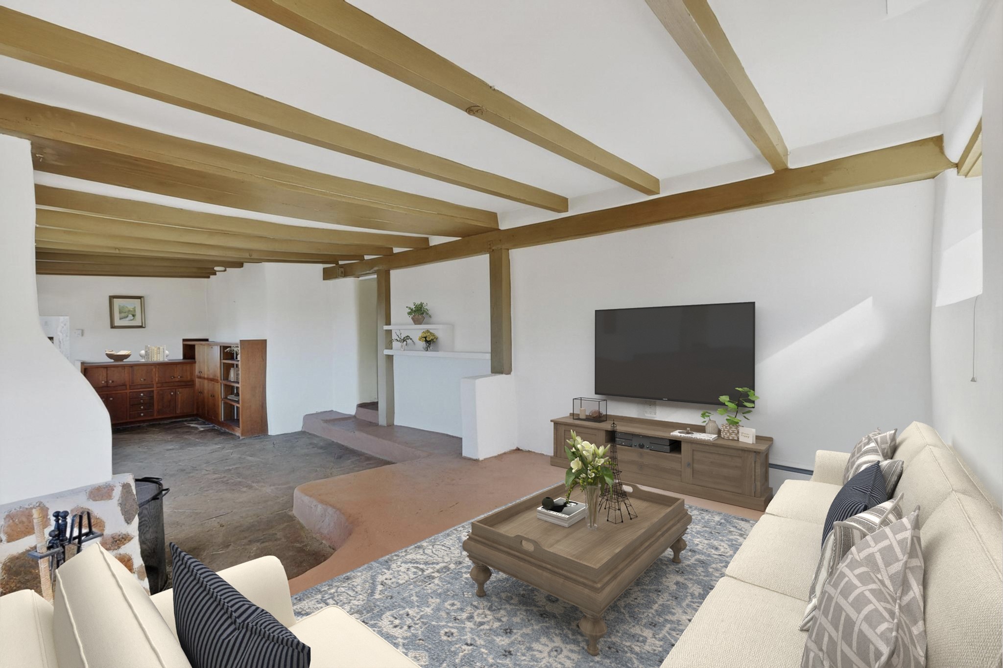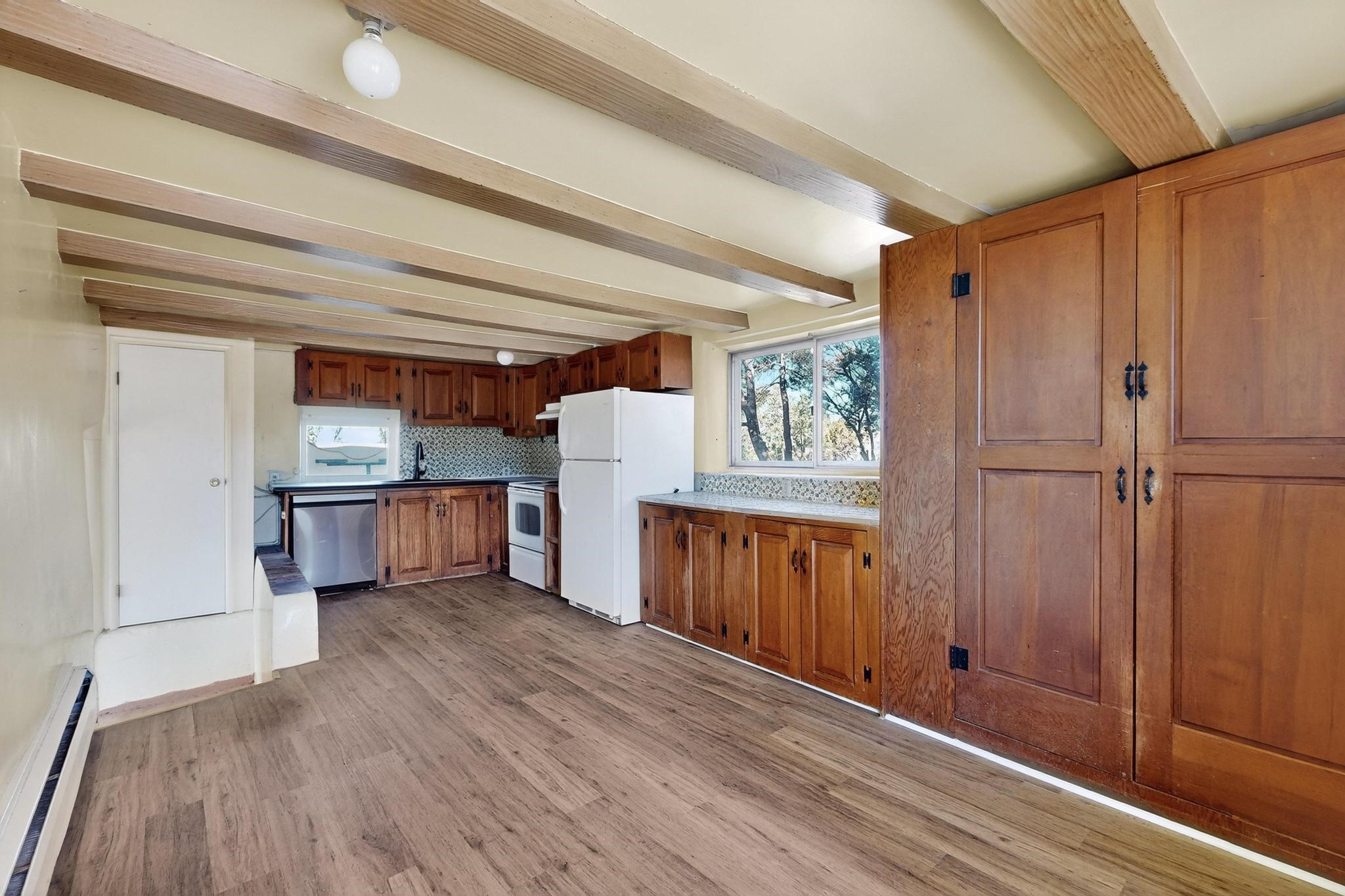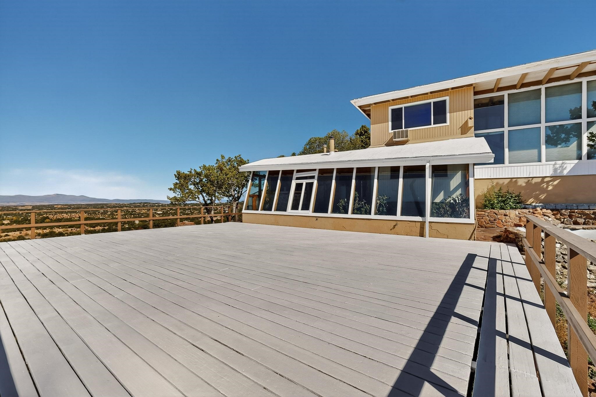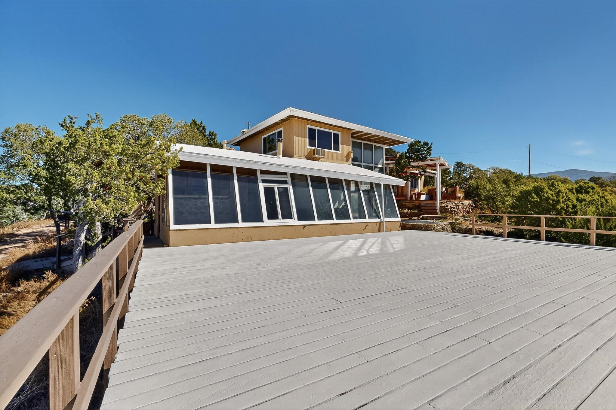 Just minutes from the Historic Plaza, this original 1930s rock home is nestled in the Santa Fe foothills, offering panoramic sunset and sparkling city-light views considered among the best in Santa Fe. The main residence features 2 bedrooms and 2 bathrooms, complemented by an attached 1-bedroom, 1-bath apartment/greenhouse, ideal for guests, rental, or studio space. Set on 1.2 acres, the property includes an oversized deck perfect for entertaining or simply enjoying the spectacular scenery. With its prime location and unparalleled views, this home is ready for a new owner to transform it into a truly remarkable Santa Fe retreat.