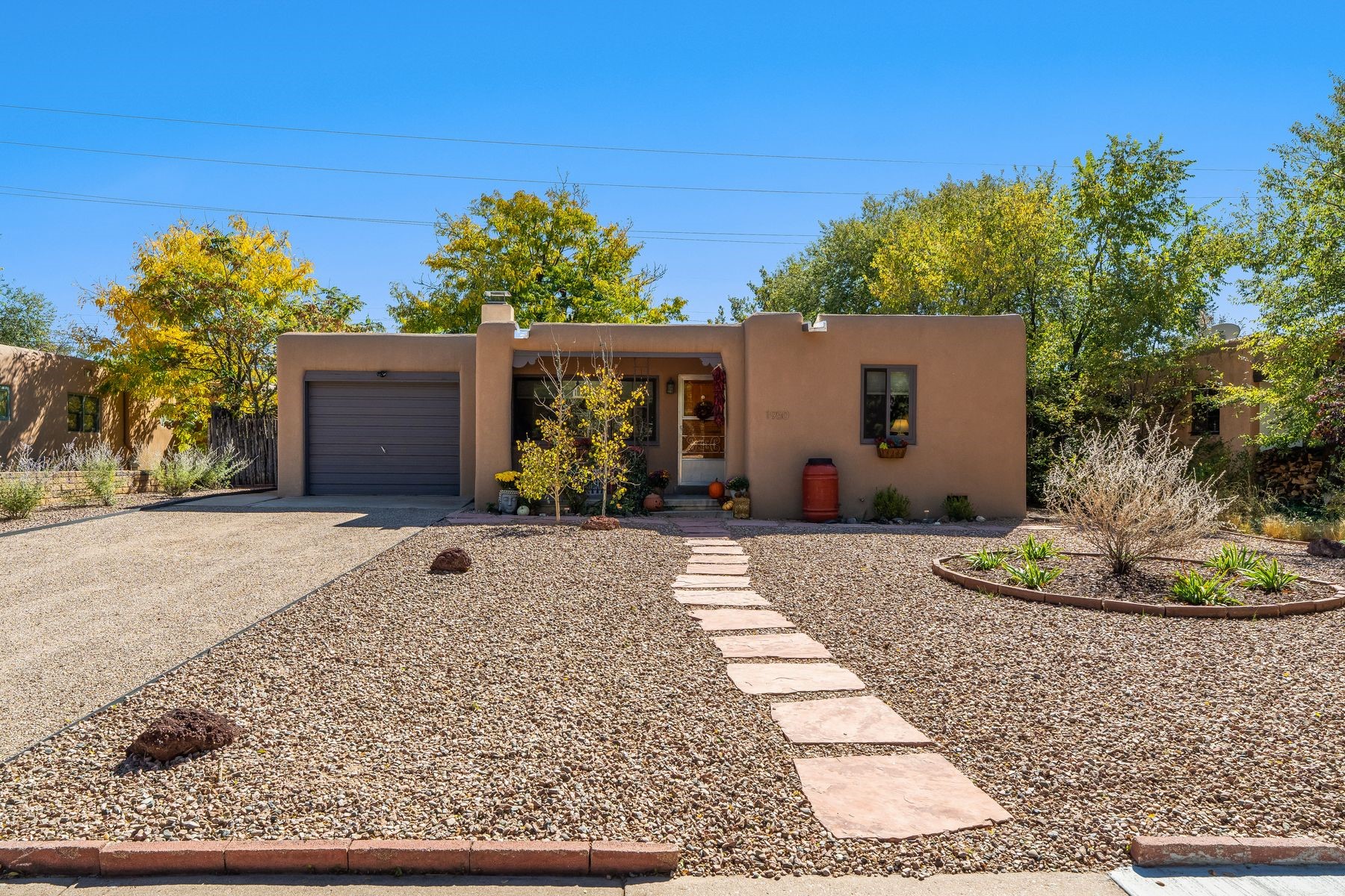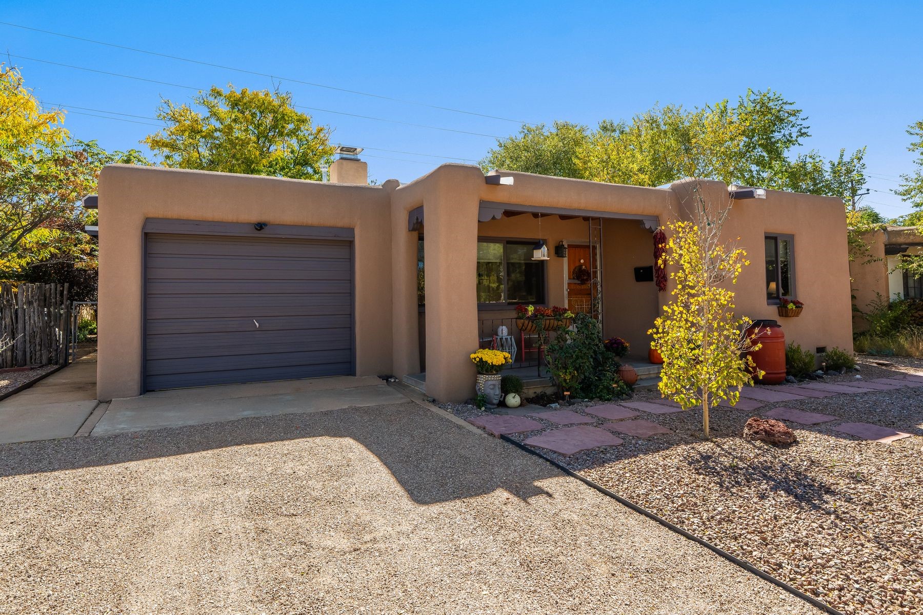 With much of its original design beautifully preserved, this Casa Alegre Stamm home radiates timeless Southwestern charm. Built in 1954, it showcases hallmark Stamm features - original hardwood floors, vigas, and handcrafted doors - while incorporating thoughtful modern updates for today's comfort and convenience. The inviting floor plan includes two bedrooms plus a versatile third room ideal for an office, den, or guest space, along with two bathrooms, a warm welcoming living room, a dedicated dining area, and an updated kitchen with tasteful finishes. The spacious primary suite offers an ensuite bath and walk-in closet. An attached one-car garage provides added functionality and storage options. Outdoors, a large brick patio opens to a fully enclosed yard featuring lush grass, mature shade trees, fruit trees, and a colorful array of perennials - perfect for entertaining, gardening, or simply relaxing in your own private oasis. Nestled on a quiet street in the heart of Casa Alegre, this home enjoys one of Santa Fe's most desirable and convenient locations. Residents can easily access Frenchy's Field, the River Trail, Ashbaugh Park, and the Acequia Trail, while being just a short drive from shops, restaurants, and other local amenities. With its ideal blend of character, modern livability, and prime location, this turnkey Santa Fe classic offers comfort, style, and connection to all "The City Different" has to offer.