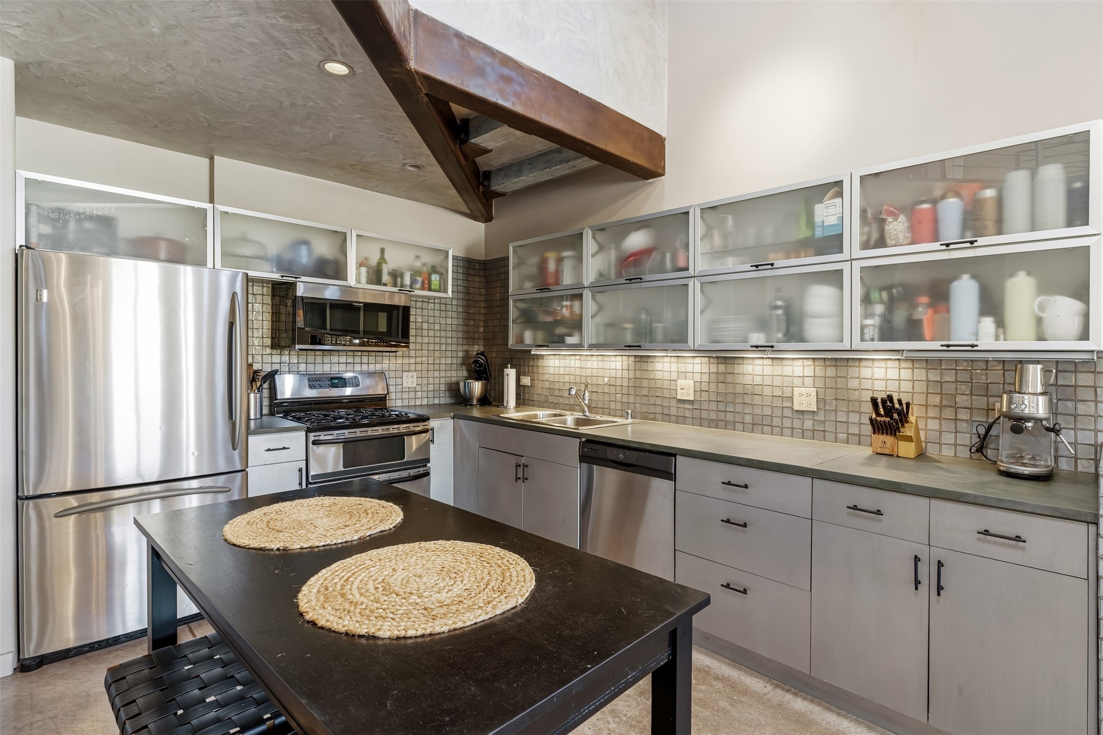 Contemporary live/work condo located in the highly sought-after South Capitol neighborhood--just a short walk to the Santa Fe Plaza and less than a mile from the Railyard District. Enjoy easy access to Whole Foods, Trader Joe's, Natural Grocers, popular restaurants, and a variety of local amenities. This two-level, second-floor residence offers 1 bedroom and 2 baths (1 full, 1 half) and is quietly tucked away at the back of the complex for added privacy. Expansive windows frame views of the Sangre de Cristo Mountains, while clerestory windows and soaring 17' ceilings fill the space with natural light.The open floor plan features a modern kitchen, sleek concrete floors with in-floor radiant heat, and new evaporative cooler. Step out from the living area onto a spacious deck to enjoy outdoor living and mountain views. Upstairs, the lofted bedroom offers generous closet space, a bath with a steam shower, and stackable laundry. Don't miss this unique opportunity to own a stylish and light-filled home in one of Santa Fe's most desirable neighborhoods.