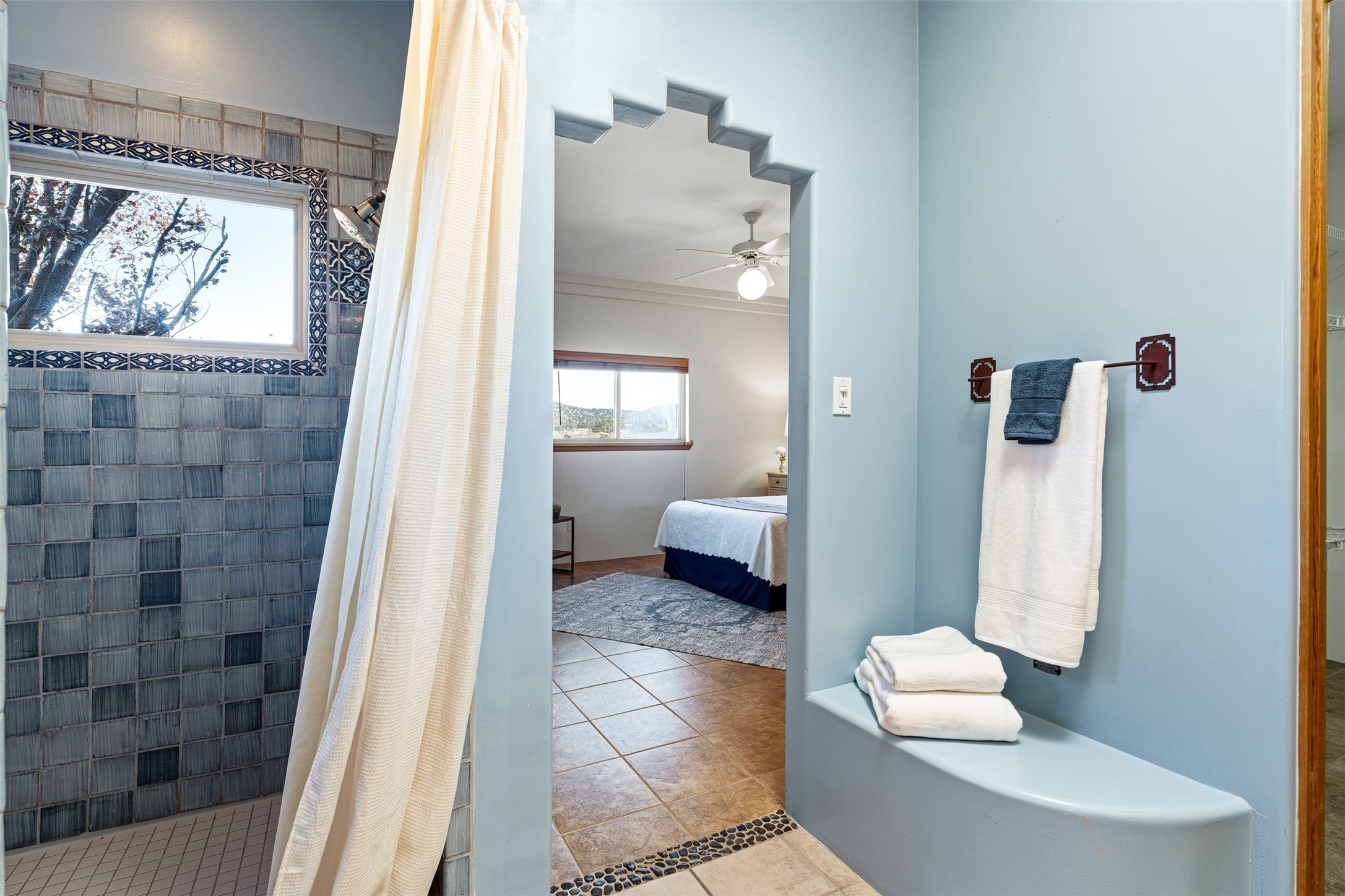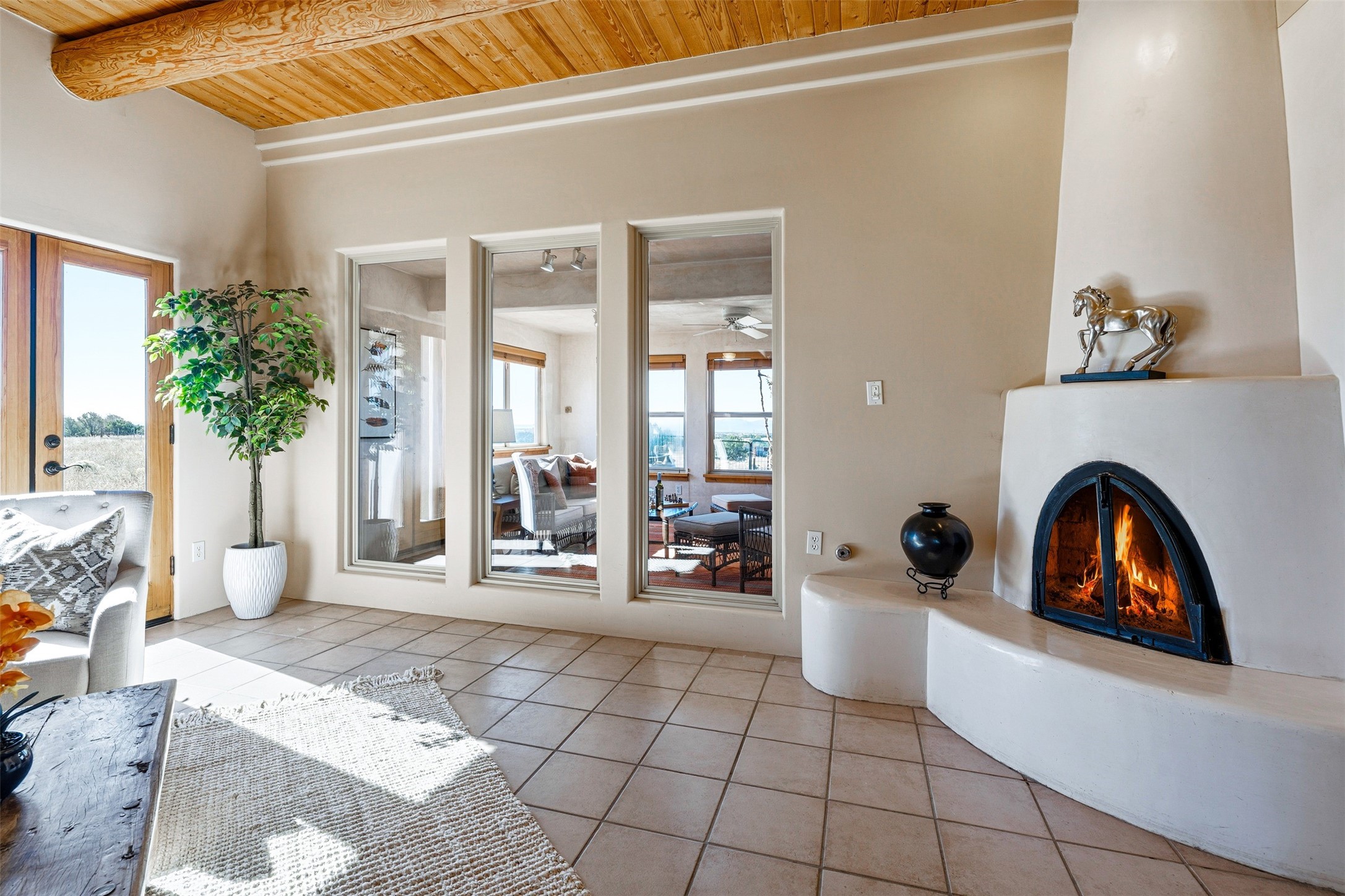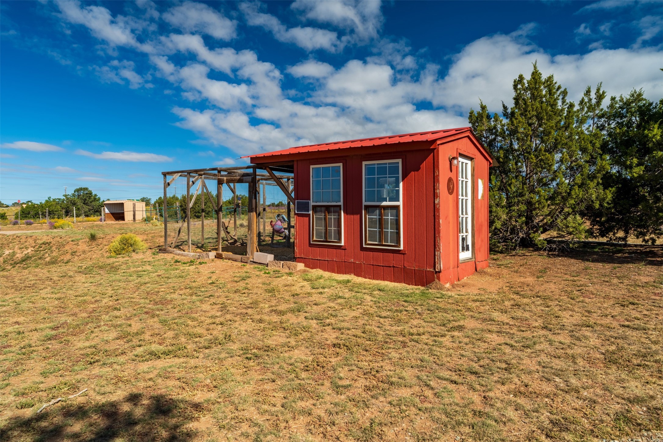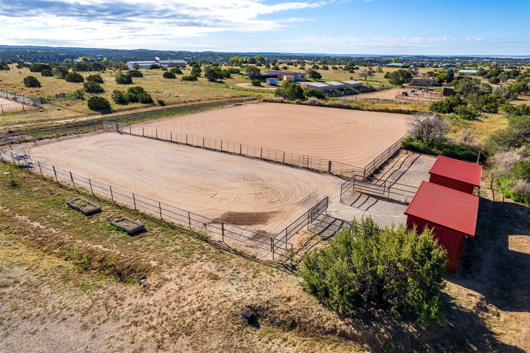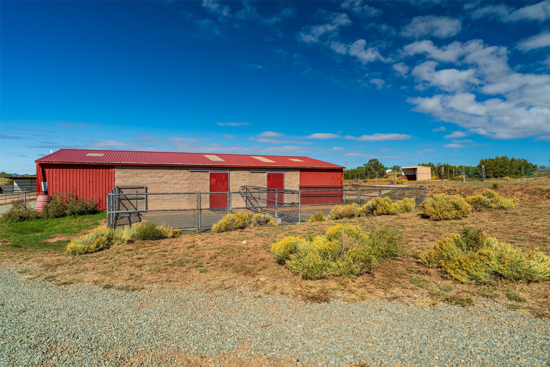 A rare horse property. This Santa Fe-style country home offers an exceptional location directly across from Eldorado, providing convenient access to local community amenities. The property benefits from Eldorado water and natural gas, and its proximity to the highway ensures easy access to town.The home features a split floor plan and an open-concept living, dining, and kitchen area, perfect for comfortable living and entertaining, all while offering beautiful southerly mountain views.The oversized garage is a real plus with plenty of storage and shelving. Walk thru laundry room. Enclosed, heated sunroom. For equestrian enthusiasts, this property is truly turn-key featuring a 2,400 sq ft, center-aisle, block and metal barn with four stalls, each equipped with attached piped paddocks, crusher fine footing, and automatic heated waterers. The barn also includes a dedicated tack room, a hot water wash rack, hay storage, and a feed room complete with a sink and toilet. Additional amenities include a piped rail sand arena and four turnouts with run-in sheds. Beyond the equestrian facilities, the property also has a detached, 432 sq ft, unheated workshop/studio with a carport and extra storage. No HOA. Four horses allowed.