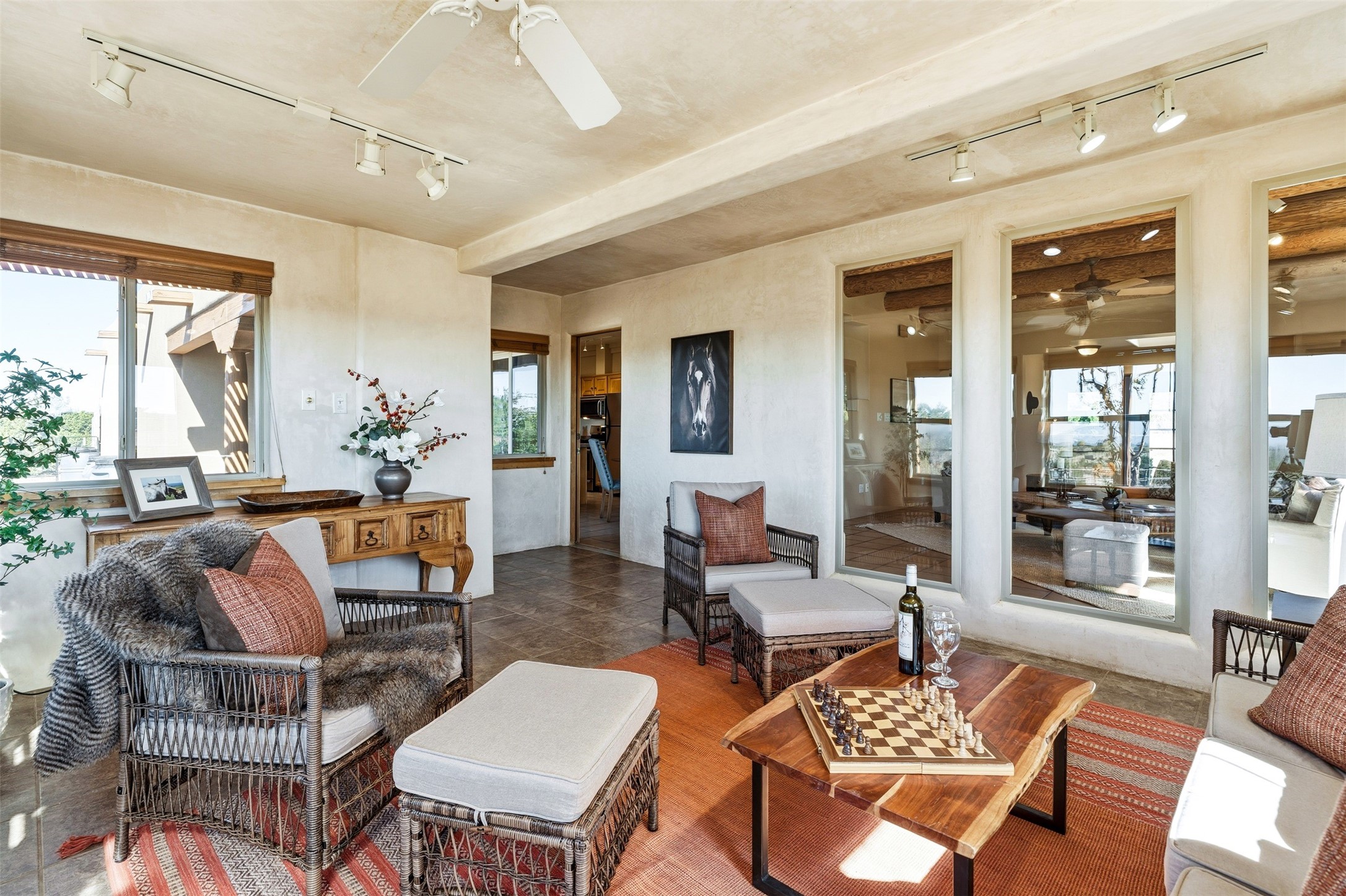 The 2,500 or so acres that comprise this area immediately south of Eldorado are part of the old Sebastian De Vargas Grant and include Lamy, Galisteo, Camino Valle Street, Los Caballos, Los Vaqueros, Old Road Ranch, Pinon Street, Ranchitos de Santa Fe, The Ridges and Cimarron. Lovely tree-covered artist and ranching villages are surrounded by gently rolling hills.