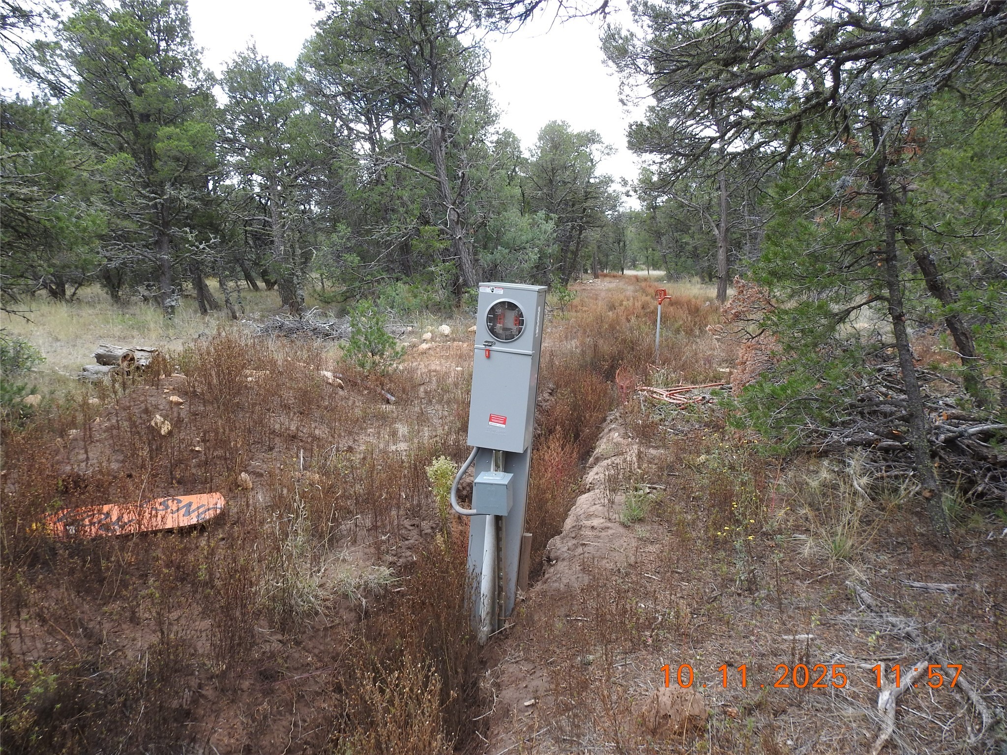 Current owner has been working to develop a homesite on lot 1C and has installed underground utilities to his home site in the center of the parcel. Community water is installed and flowing and electricity has been brought to the meter loop and once a meter is installed will be ready to use. Owner has begun developing a guest home with the foundation started. A septic tank and four pallets of concrete blocks will go with the sale. The septic tank needs to be installed. His approved HOA log home plans are available and all the approved permits will go with the sale. Owner had a serious accident which prompted this sale. The Tierra de Dios subdivision is surrounded by the Canon Blanco Ranch, BLM and Santa Fe National Forest. Horses are allowed on the lot & native wildlife are common here. Its not unusual to wake up to a herd of elk in your front yard. A working county fire station is located just around the corner from this parcel as well. Its a beautiful start... just needs someone to finish it. Call soon to arrange your tour.