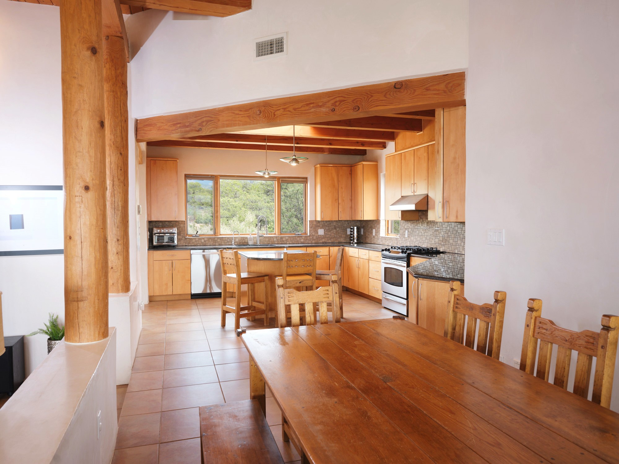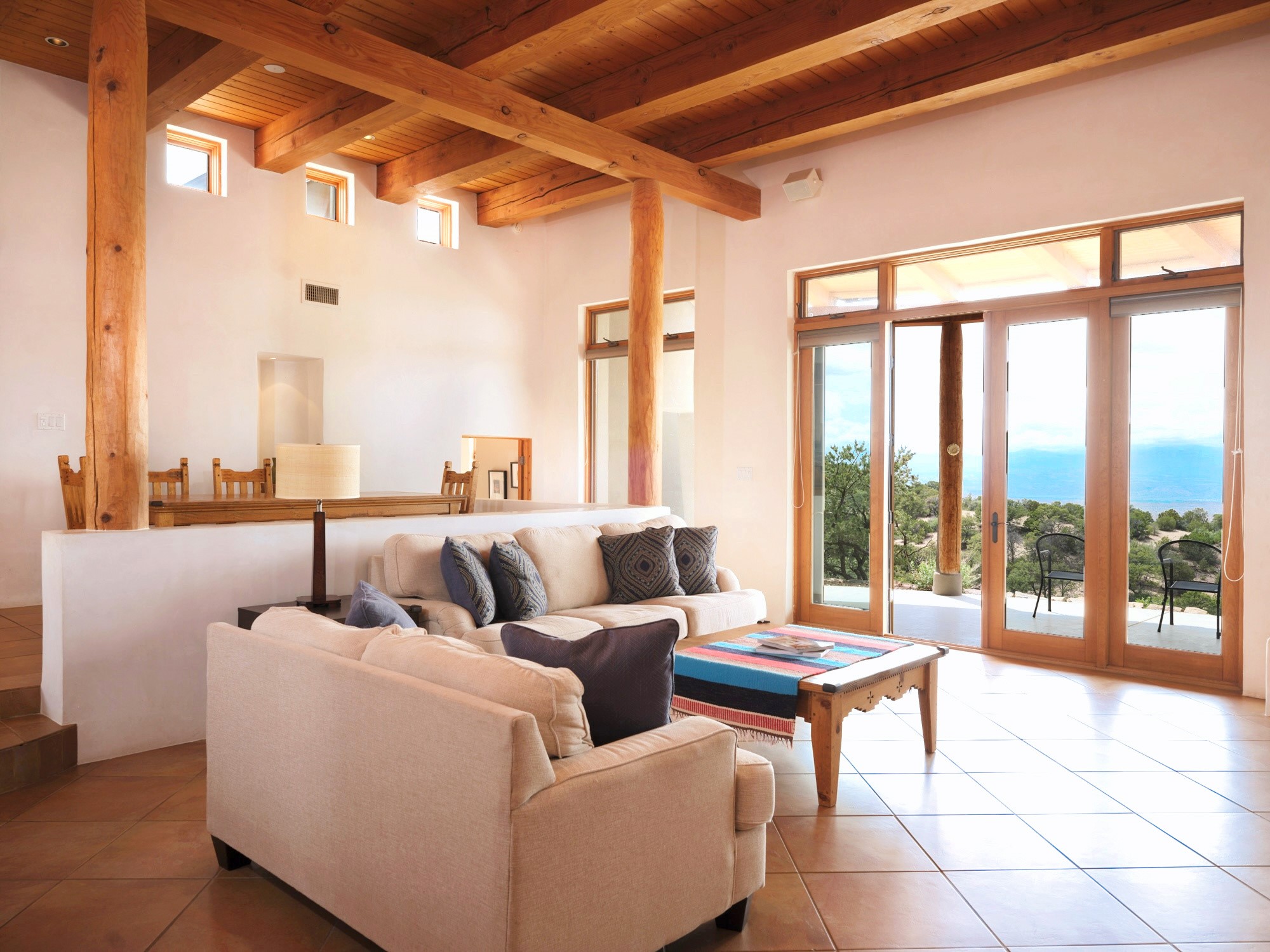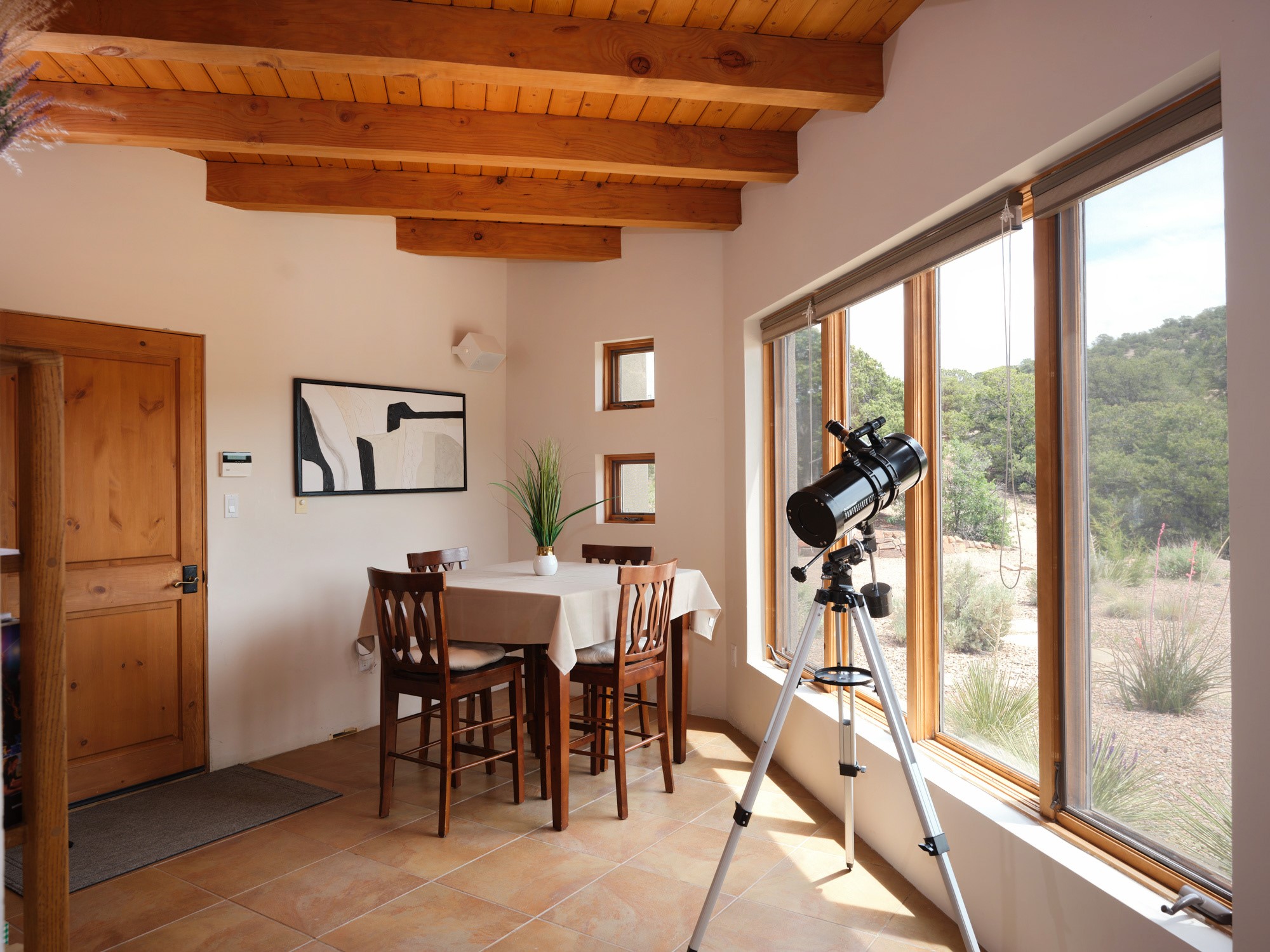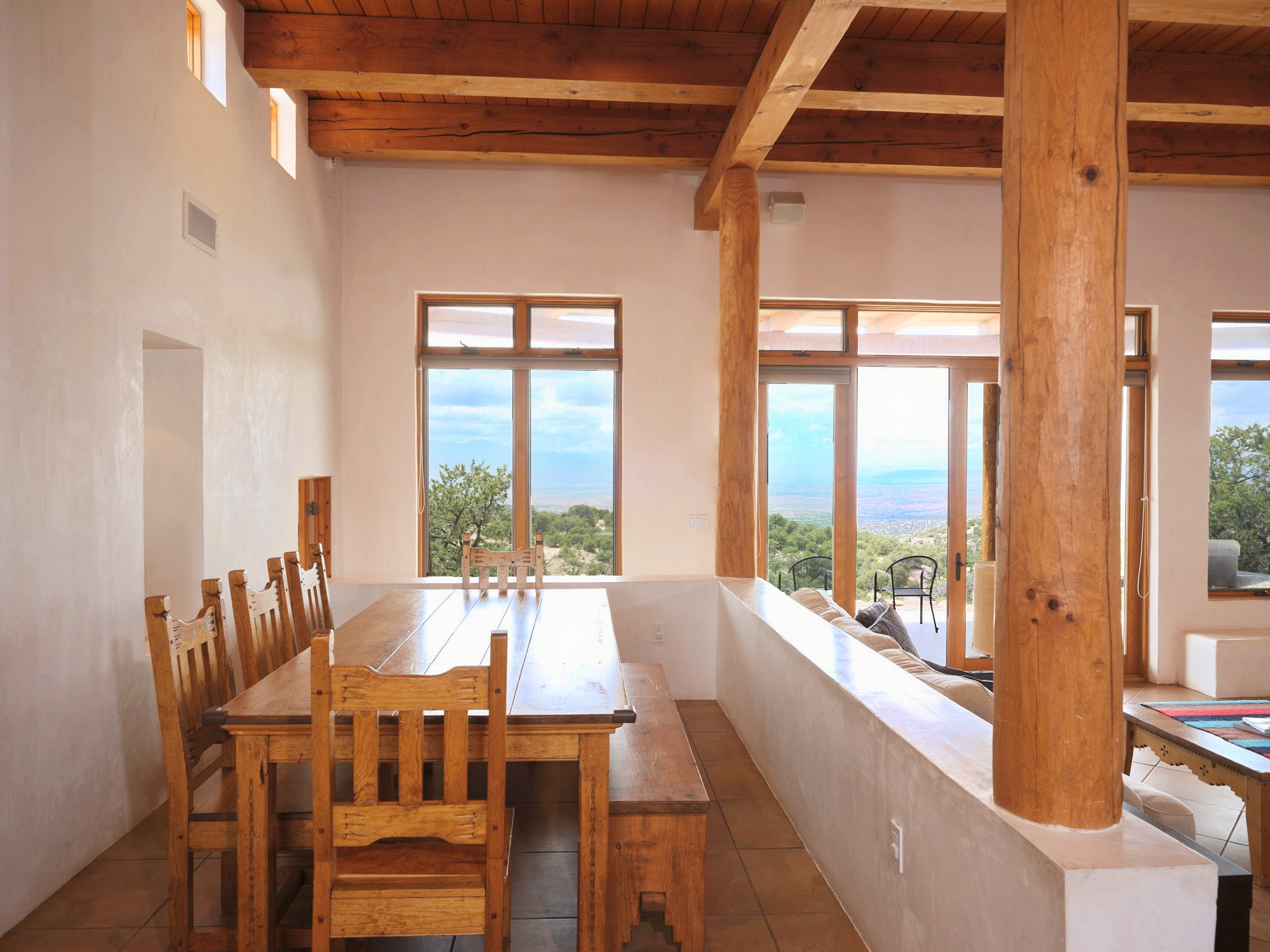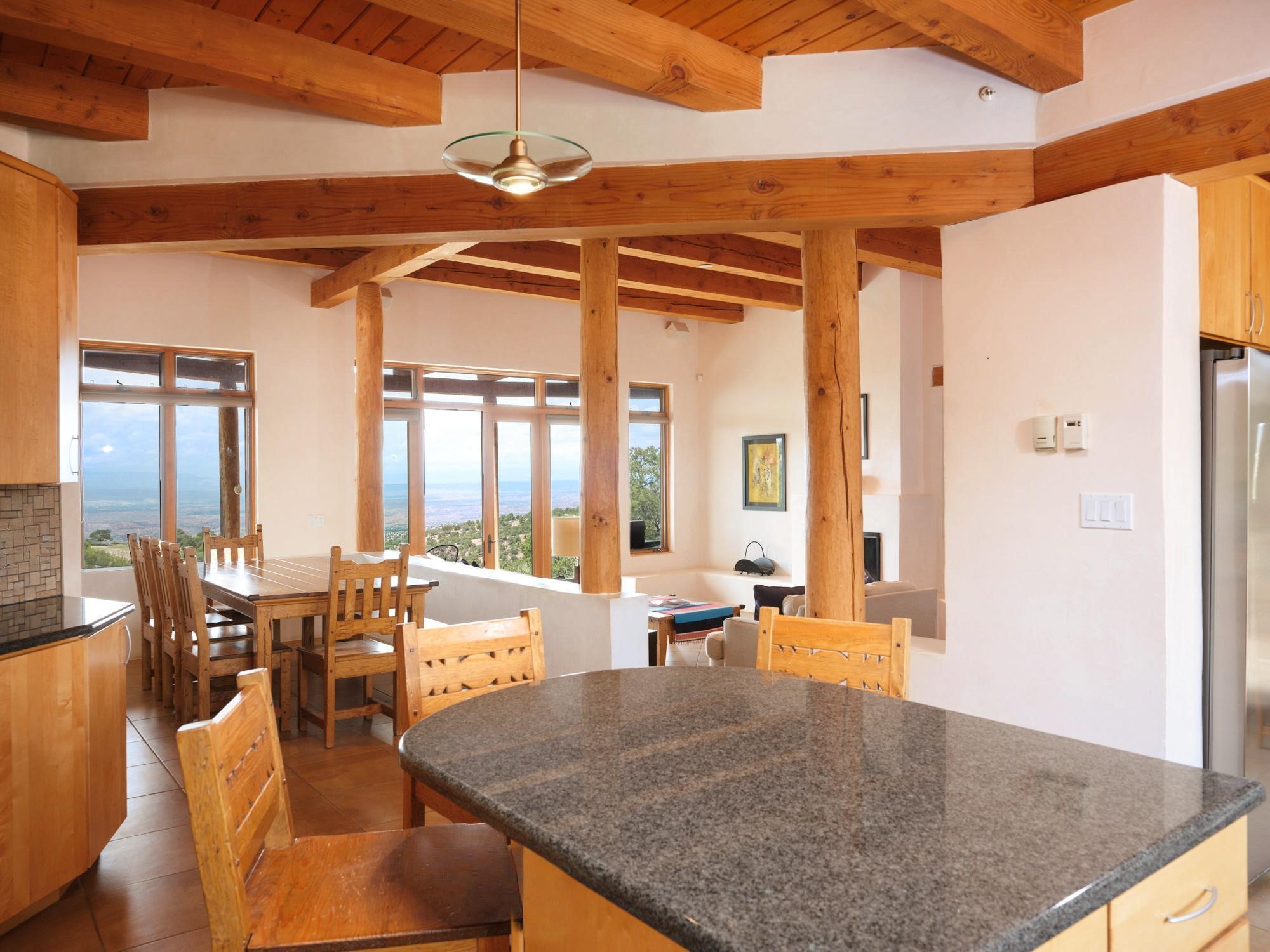 Perched high in the Sangre de Cristo foothills, Casa del Sueo captures the very essence of Northern New Mexico's beauty - endless skies, luminous sunsets, and breathtaking 360-degree mountain views. This 3,300-sq-ft retreat, situated on 10 serene acres, offers complete privacy yet is conveniently located just 35 minutes from Santa Fe and the Opera, 35 minutes from Los Alamos, and 75 minutes from Taos.Designed for both intimate living and effortless entertaining, the home features four bedrooms and three baths, including a primary suite with fireplace and panoramic views, and a separate guest suite ideal for guests. The chef's kitchen opens to inviting living spaces framed by picture windows and natural light, while a rooftop deck provides a front-row seat to sunsets over the Jemez Mountains.Modern amenities include Starlink high-speed internet, a media room, and a fully integrated home sound system. The property features a horse stable and borders miles of pristine trails for hiking, biking, and horseback riding - offering an unparalleled connection to nature without sacrificing convenience or sophistication.A beloved home with a proven record of five-star guest experiences, Casa del Sueo also functions beautifully as a turnkey luxury retreat or second-home investment. From its peaceful mornings to star-filled nights, every moment here is a reminder of why Santa Fe is among the world's most enchanting destinations.