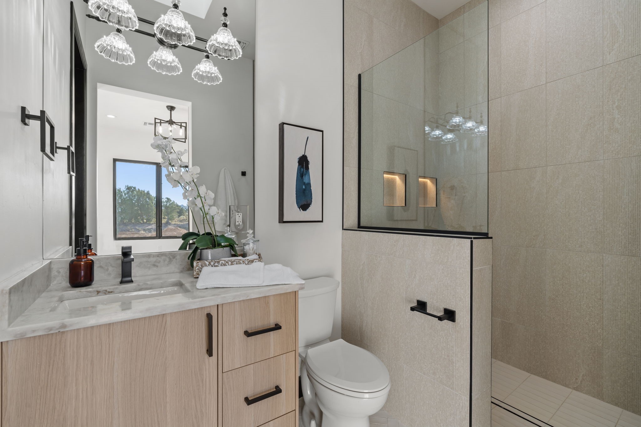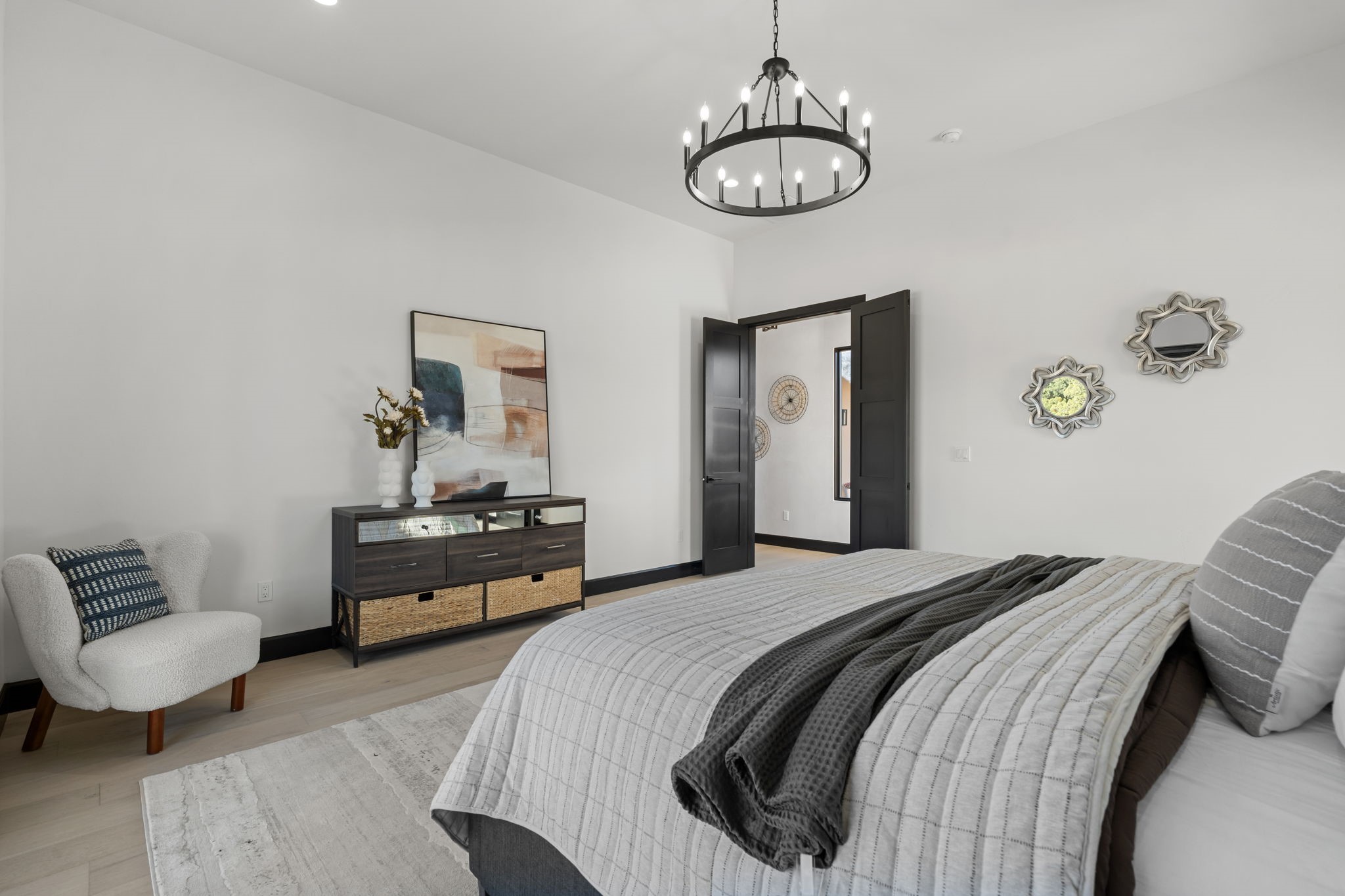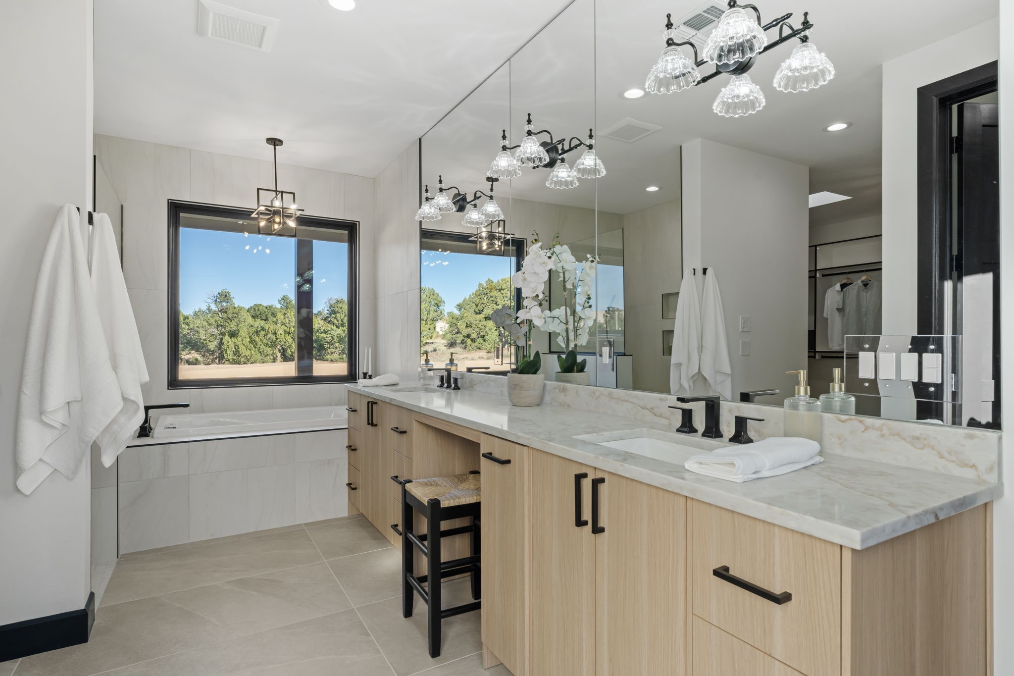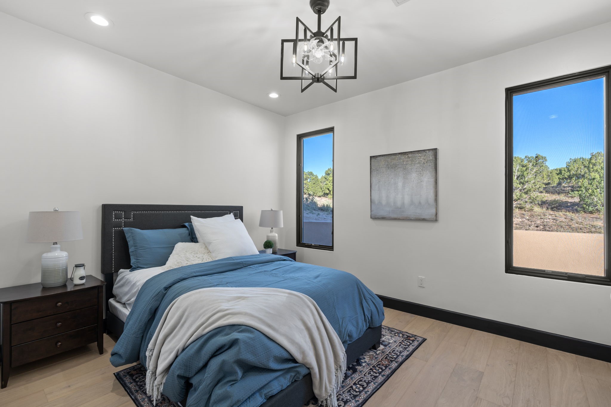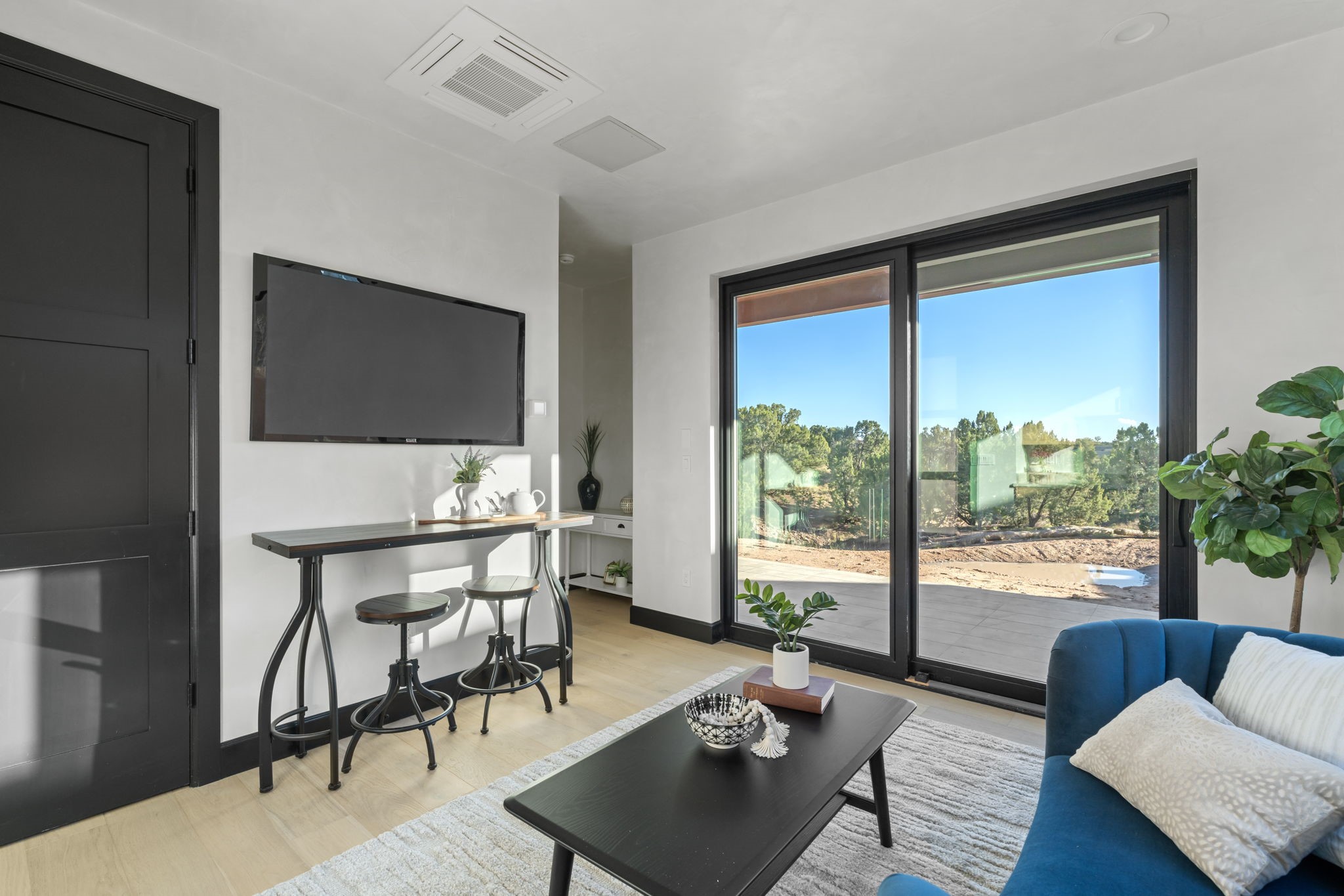 Nestled in the prestigious Las Campanas community of Santa Fe, this newly built custom estate blends modern architecture with timeless New Mexican charm. Situated on a 1.64-acre homesite overlooking two picturesque golf holes, the home captures breathtaking views of both the fairways and surrounding mountains.Built by Candelaria Homes, one of New Mexico's most respected luxury builders, this residence reflects exceptional craftsmanship and attention to detail in every corner--from its open floor plan to its refined finishes.Designed for comfort and sophistication, the single-story layout features heated floors throughout the main living and family areas, creating warmth and luxury in every season. A beautifully designed detached one-bedroom Casita offers the perfect retreat for guests, extended family, or a private studio.The gourmet kitchen impresses with bold dark finishes, high-end Sub-Zero appliances, a spacious center island, and a large butler's pantry, seamlessly combining style and function.A versatile bonus living area provides flexibility as a children's playroom, home library, or secondary living space. Expansive picture windows fill the home with natural light, framing Santa Fe's stunning landscape and creating a seamless indoor-outdoor connection.With its open-concept great room, spacious patios, and sweeping golf course and mountain views, this Las Campanas masterpiece defines elevated desert living.