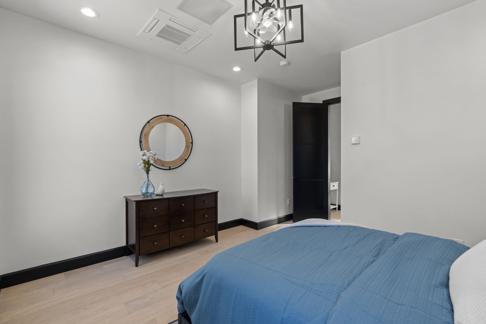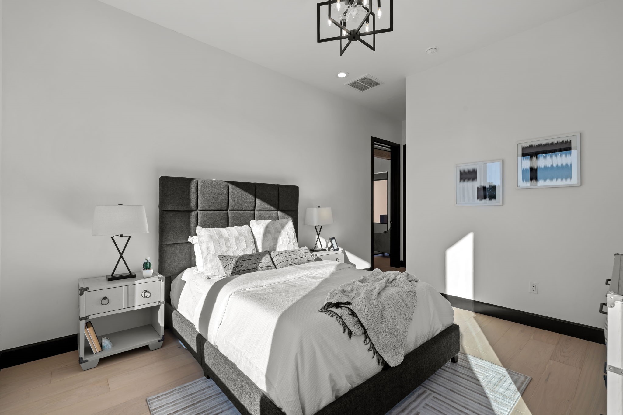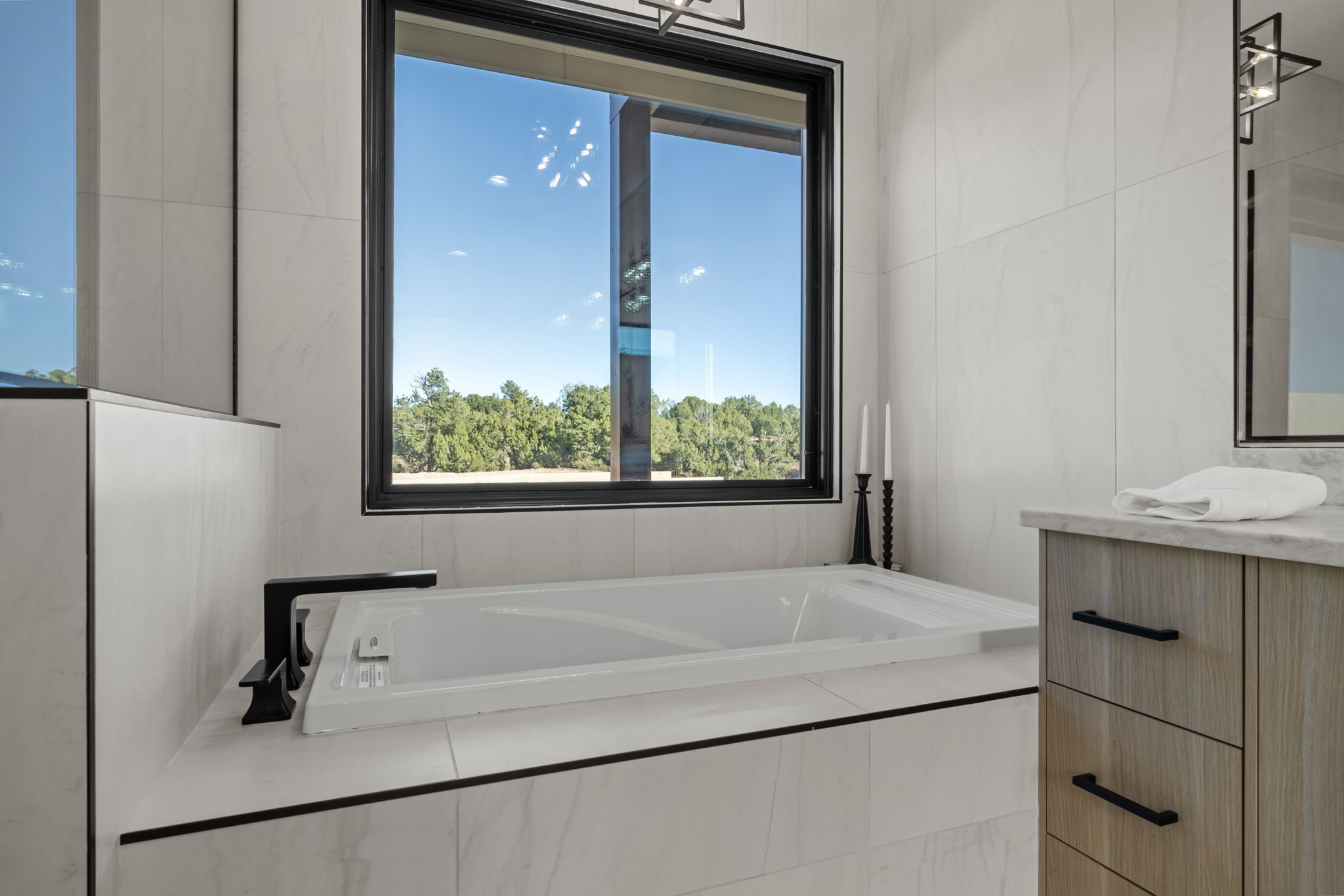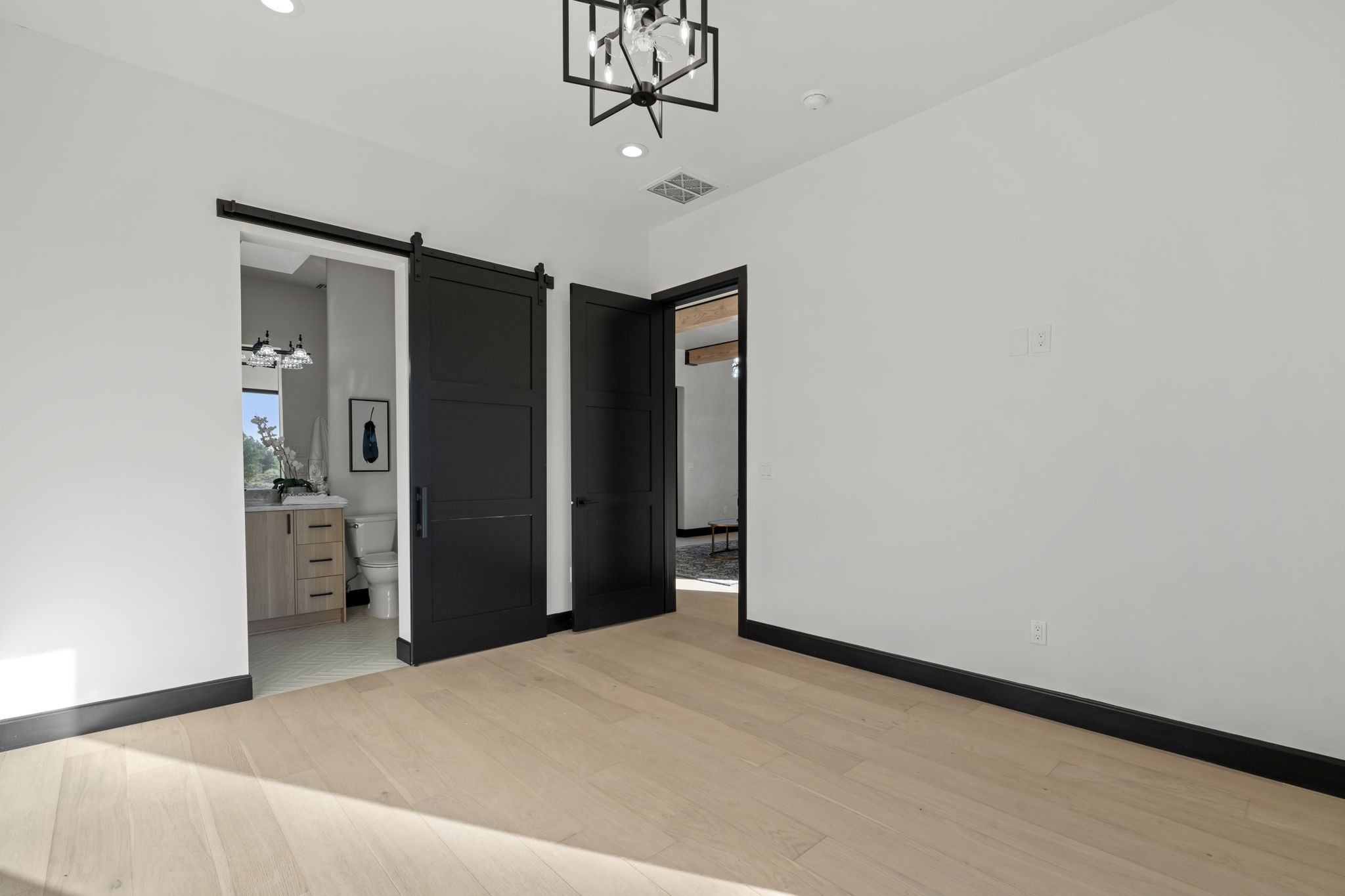 Nestled in the prestigious Las Campanas community of Santa Fe, this newly built custom estate blends modern architecture with timeless New Mexican charm. Situated on a 1.64-acre homesite overlooking two picturesque golf holes, the home captures breathtaking views of both the fairways and surrounding mountains.Built by Candelaria Homes, one of New Mexico's most respected luxury builders, this residence reflects exceptional craftsmanship and attention to detail in every corner--from its open floor plan to its refined finishes.Designed for comfort and sophistication, the single-story layout features heated floors throughout the main living and family areas, creating warmth and luxury in every season. A beautifully designed detached one-bedroom Casita offers the perfect retreat for guests, extended family, or a private studio.The gourmet kitchen impresses with bold dark finishes, high-end Sub-Zero appliances, a spacious center island, and a large butler's pantry, seamlessly combining style and function.A versatile bonus living area provides flexibility as a children's playroom, home library, or secondary living space. Expansive picture windows fill the home with natural light, framing Santa Fe's stunning landscape and creating a seamless indoor-outdoor connection.With its open-concept great room, spacious patios, and sweeping golf course and mountain views, this Las Campanas masterpiece defines elevated desert living.