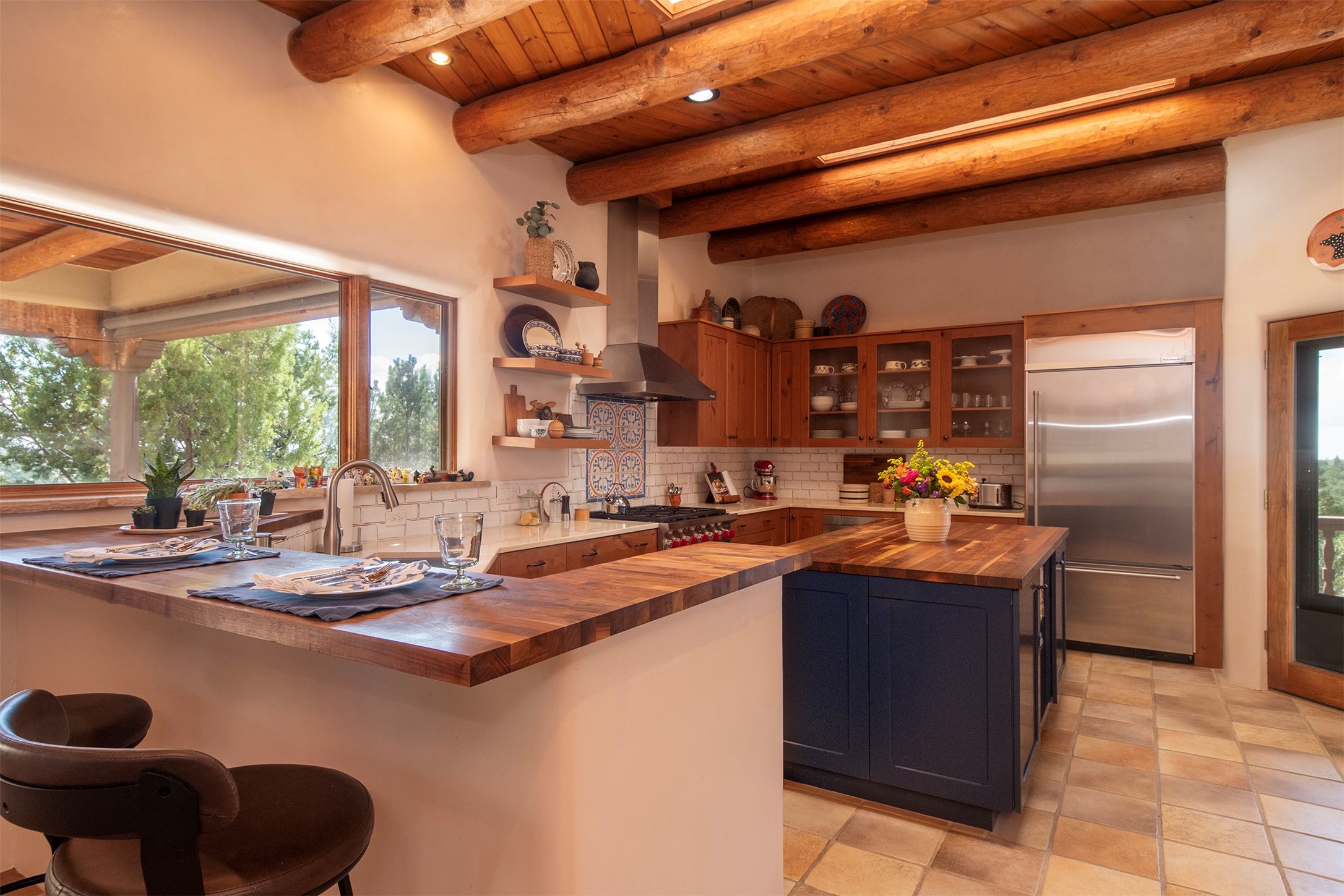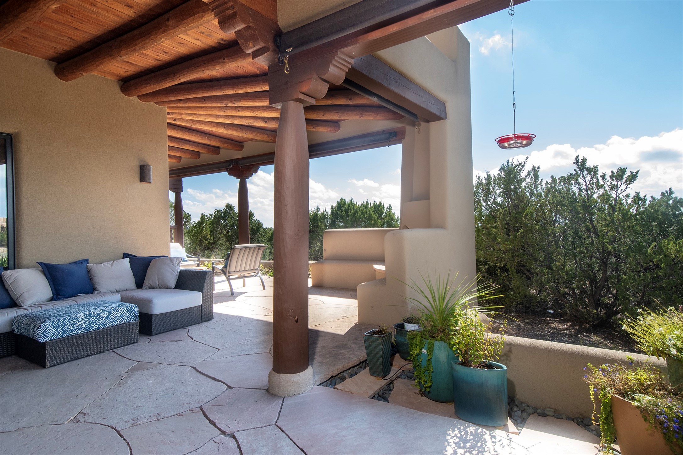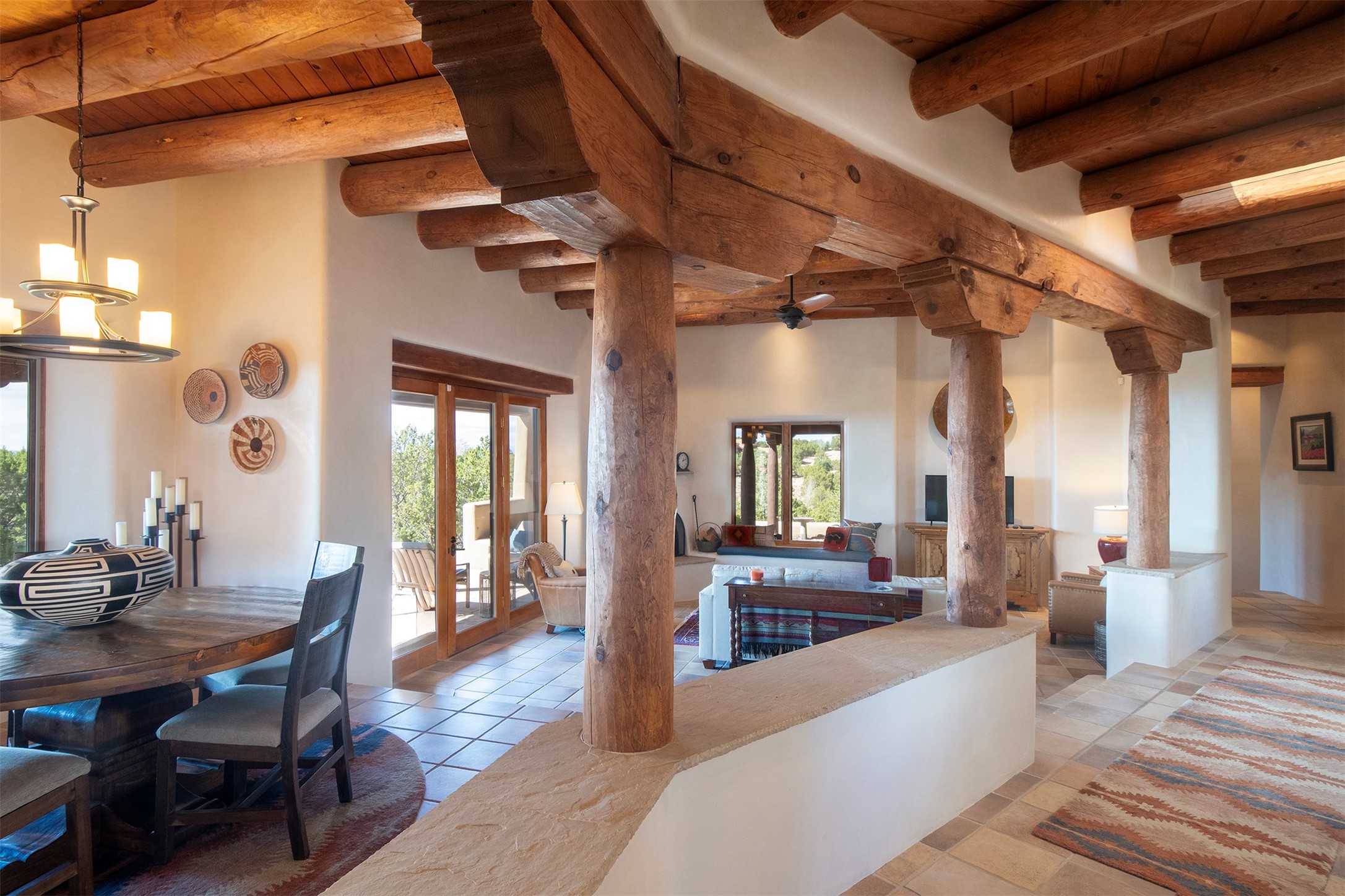 Set within the prestigious Las Campanas community, this exceptional 4-bedroom, 4-bathroom Santa Fe home showcases timeless Southwestern architecture blended with modern sophistication. Thoughtfully updated, the residence features numerous recent improvements. Expansive living spaces with soaring ceilings and large windows capture breathtaking mountain and sunset views. The gourmet kitchen, elegant dining area, and inviting outdoor patios create a seamless flow for entertaining or peaceful retreat. Offering access to world-class amenities, golf, and fine dining, 18 Arriba Circle represents the best of luxury living in Las Campanas--a perfect harmony of comfort, style, and Santa Fe charm.