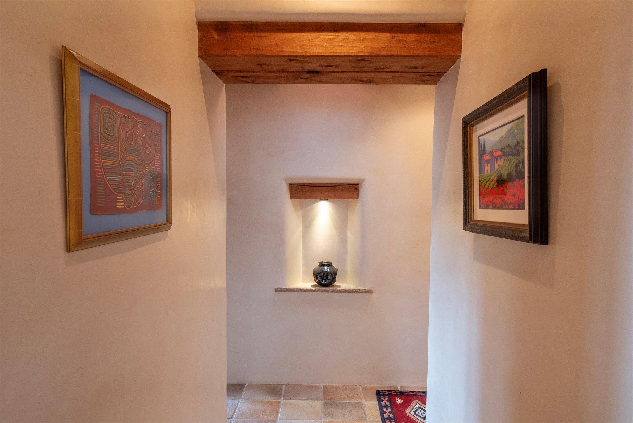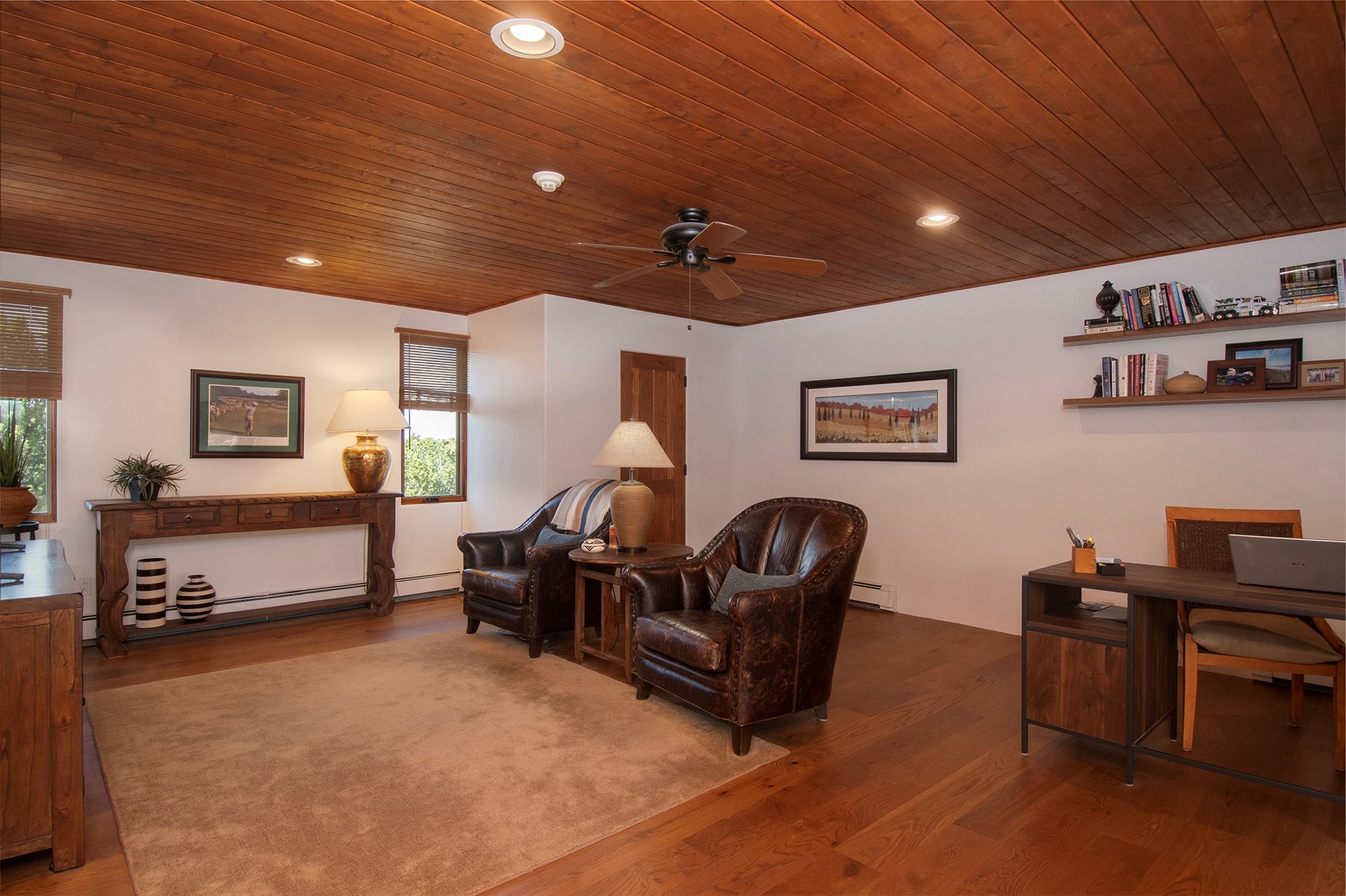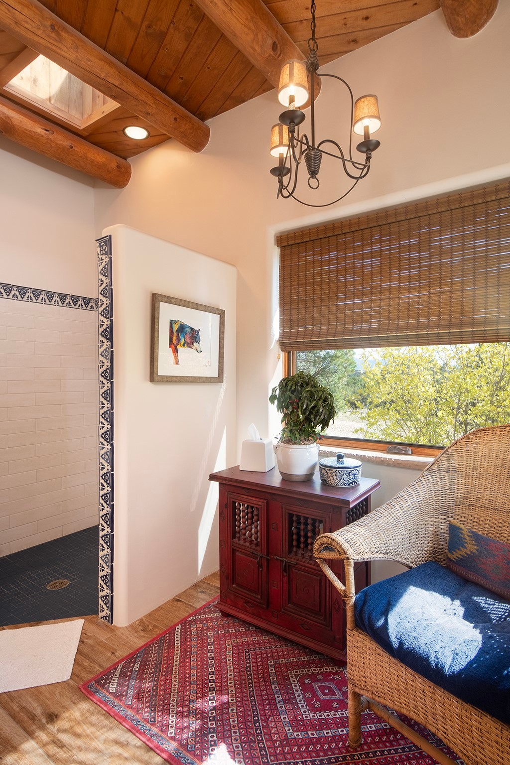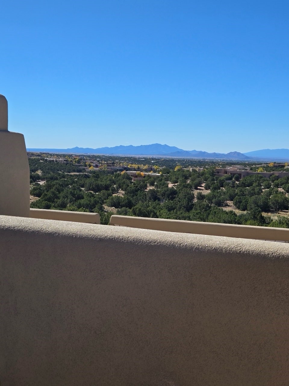 In the tree-studded rolling hills northwest of town are Las Campanas and a host of other developments and neighborhoods of larger, private lots and newer homes, most with city services and utilities. The land here sits between the city and the arroyos that carry rainwater to the Rio Grande, just a few miles west, creating a landscape almost like ocean waves rolling into shore.