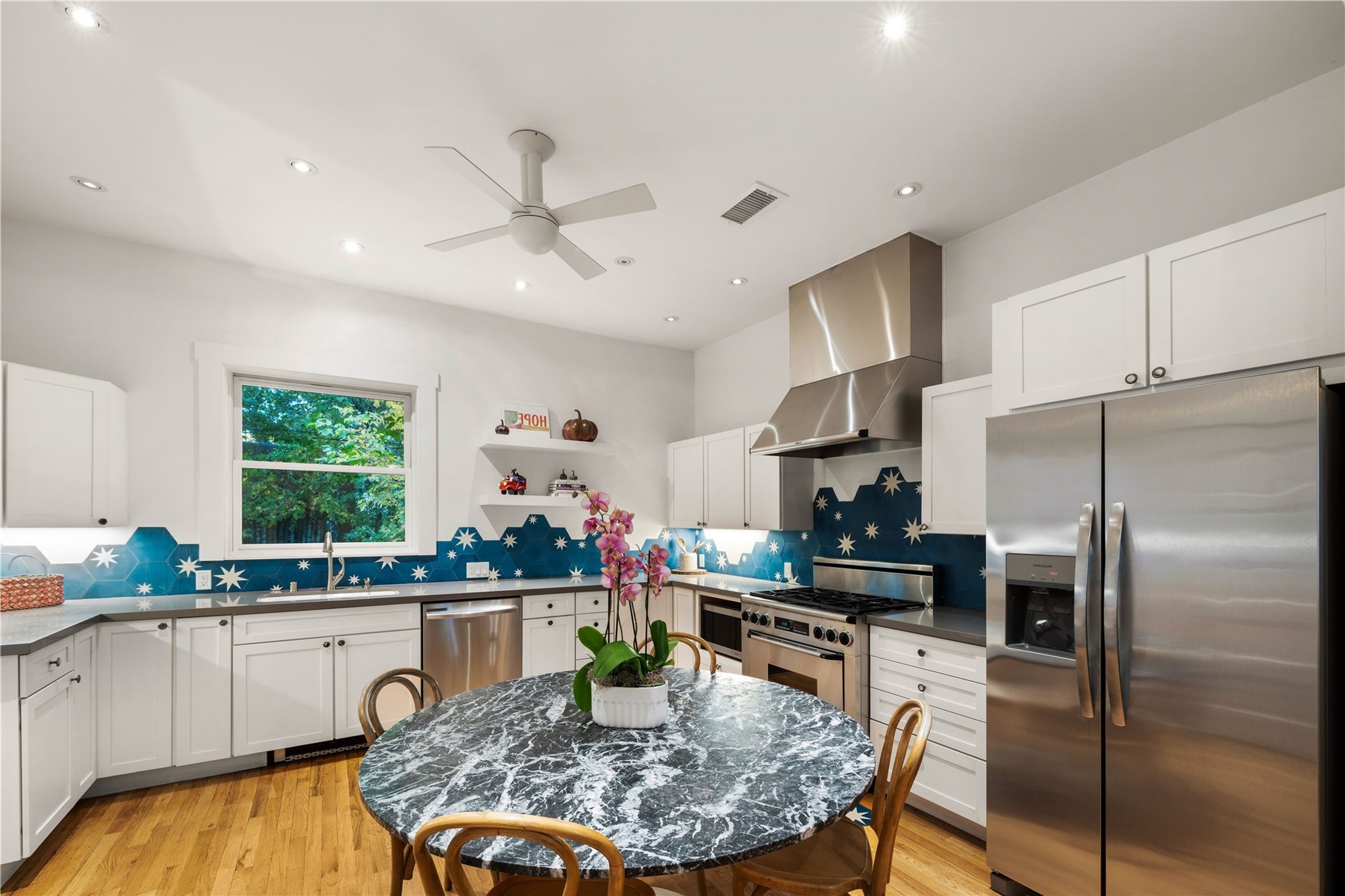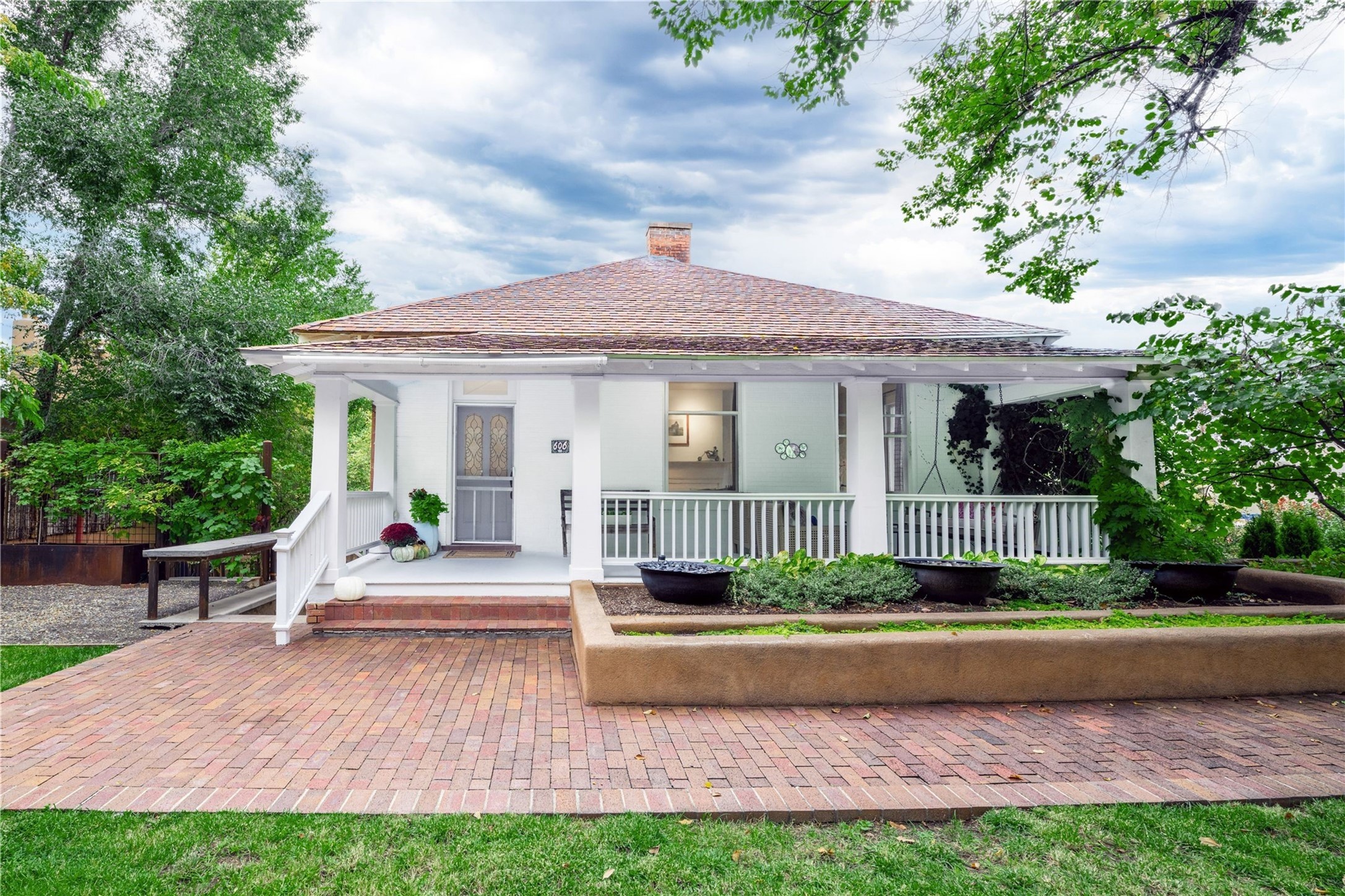 Palace Avenue is Santa Fe's coveted crown jewel of streets--people wait years for an opportunity to own a home here. Elegant, prestigious, and with that magical old Santa Fe feel. You're moments from Canyon Road's galleries, steps to Santa Fe's best restaurants, at the epicenter of the city's internationally celebrated arts scene. Walk through the front gate, and the first thing you see is the magnificent garden by landscape architect Alana Markle, whose work is featured in Sunset magazine and Su Casa. Mature trees offer cooling dappled shade, and the bubbling fountain provides a calming soundtrack. The generous front porch with a classic swing invites you to pause--morning coffee, evening wine and conversations. The adobe wall surrounding the home provides privacy. Fruit trees line the side of the property. Step inside this treasure of a home and discover what makes it so special: soaring ceilings, incredible interior design, and light that pours through every room. The living room glows with natural brightness, hardwood floors gleam beneath those high ceilings, and a wood-burning brick fireplace that becomes the heart of winter evenings. Move into the kitchen designed for people who actually cook--a chef's stove, upgraded appliances, and a Moroccan tile backsplash. The kitchen opens up to another living area with exposed brick and a picturesque bay window. The primary suite is your sanctuary--hardwood floors, high ceilings, walk-in closet with built-in storage, and a spa-like bathroom with clawfoot soaking tub and natural light. Downstairs is cozy and inviting: a den with thick exposed stone walls and three bedrooms, each with generous storage. Outside, Alana Markle's design continues to shine--thoughtfully curated spaces for al fresco dining, a hot tub for unwinding under the stars. Plenty of room to expand parking, plant a full garden, or even add a swimming pool. You're not buying potential--you're buying perfection already grown by one of the region's most sought-after landscape architects.