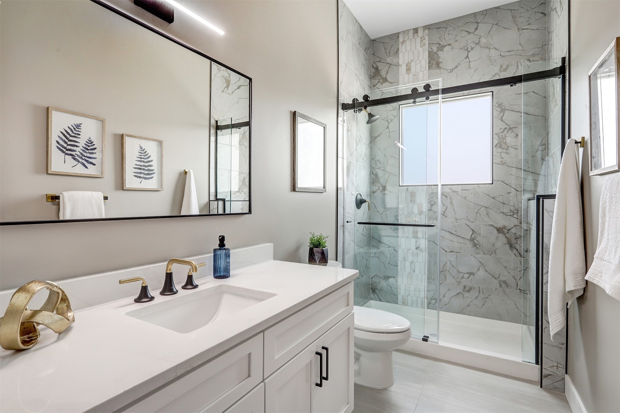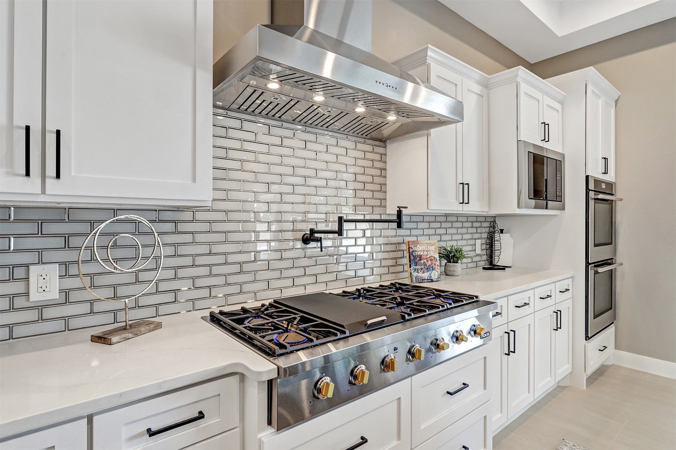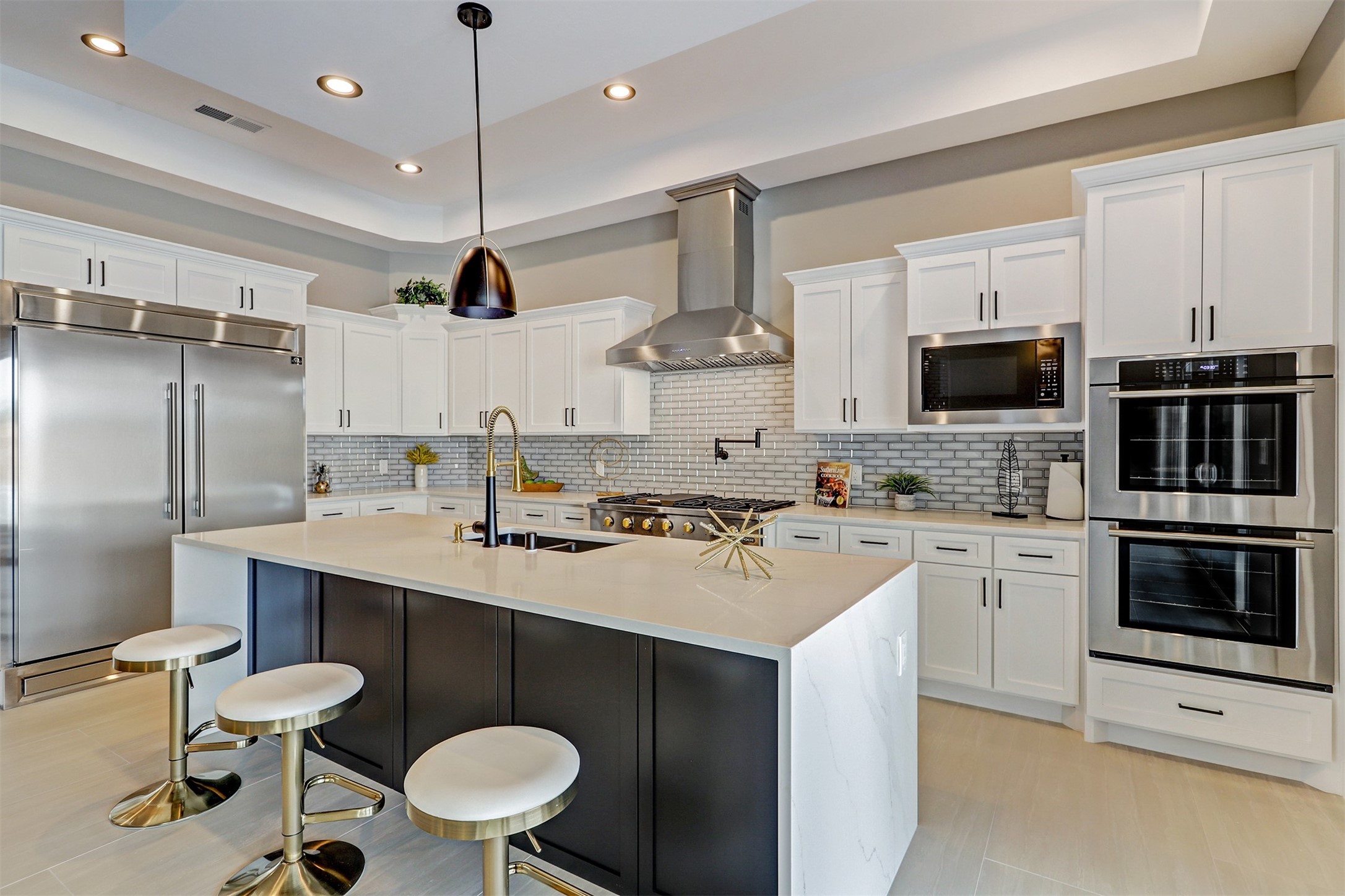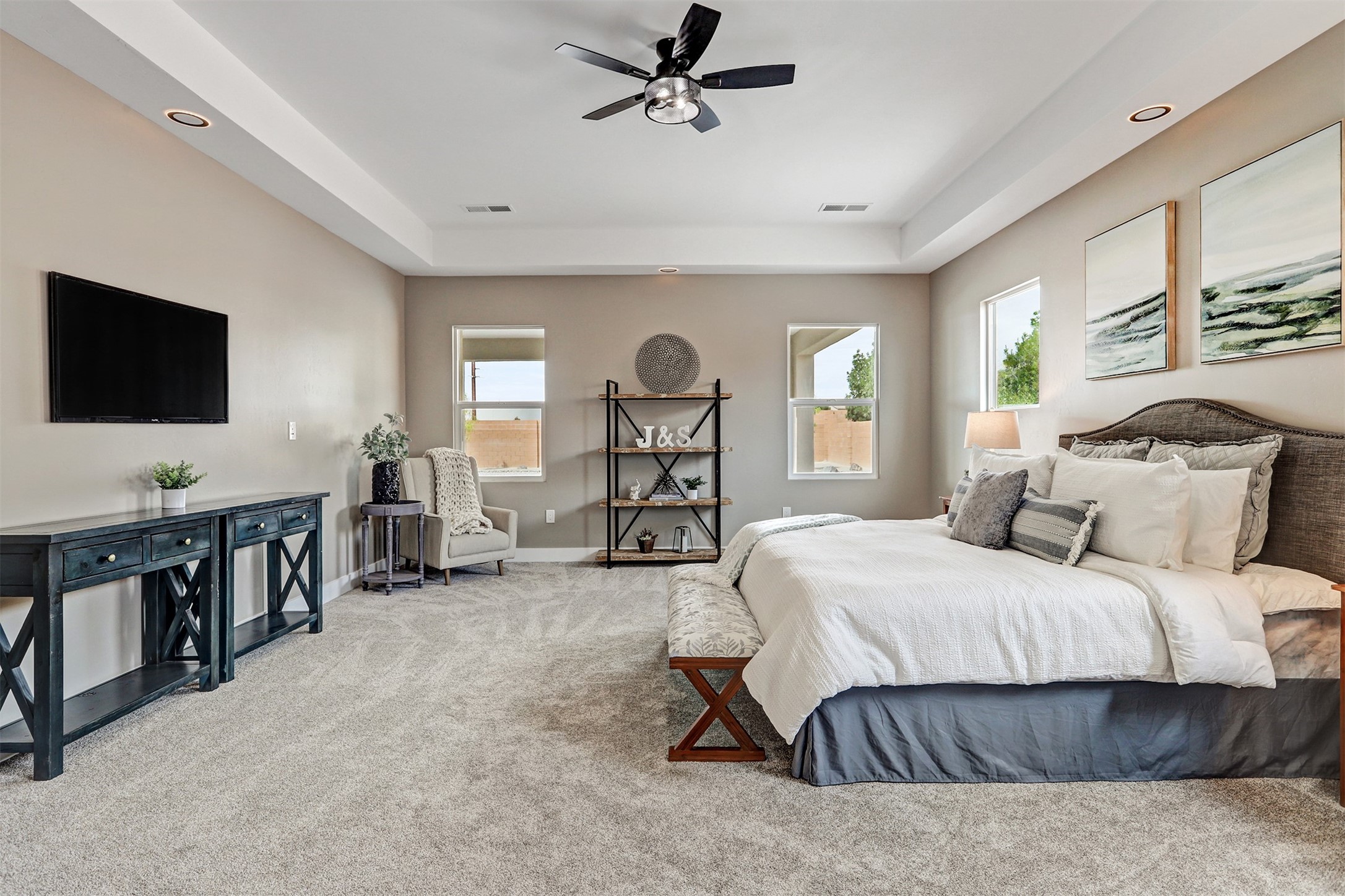 Step into luxury with this newly-built, single-story dream home that perfectly blends contemporary elegance with desert charm. Featuring soaring ceilings, 5 spacious bedrooms (2 primary suites), 3 beautifully designed bathrooms, and an oversized/ finished 2-car garage including tall doors--perfect for parking your dream truck--this home is thoughtfully crafted for comfort, functionality, and style. Walk through the sleek entry hall into an open-concept living space flooded with natural light. The gourmet kitchen boasts handmade custom cabinetry, a dual-door built-in refrigerator, premium stainless steel appliances, gas cooktop, range hood, garbage disposal, and a massive island with bar seating perfect for entertaining. Enjoy the convenience of a built-in coffee bar and a built-in wine bar with wine cooler, ideal for morning routines and evening gatherings. Retreat to the luxurious primary suite, complete with a huge closet, a spa-inspired bathroom with dual vanities, soaking tub, and a spacious walk-in shower. All bedrooms offer generous closet and storage space. Other special features include expensive oversized tile floors, refrigerated air, energy-efficient LED lighting, and a custom electric fireplace in the living area featuring multiple flame color options and built-in heat ventilation for year-round ambiance. Entertain in style opening the indoors outside through large sliding doors that lead to a spacious covered patio and huge low-maintenance yard with ample space to build your dream swimming pool. Backyard access available through custom wrought iron gates. The professionally designed xeriscape landscaping adds style with ease of upkeep. This home is packed with high-end upgrades, thoughtful design, and modern conveniencesall in a peaceful neighborhood with excellent access to quickly zip in and out of the city. Seller including a one year full warranty, 2 year warranty on major plumbing / mechanical / electric, and an 8 year structural warranty.