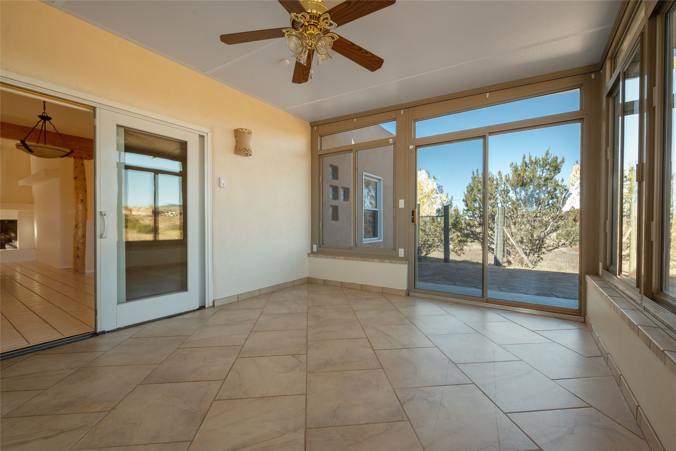 Home for the holidays in the sought-after Eldorado at Santa Fe community! Residents enjoy outstanding amenities including scenic walking and biking trails, dog park, greenbelts, basketball and tennis courts, pickleball, and a seasonal swimming pool. This inviting, move-in ready home has been freshly painted and features a heated sunroom filled with natural light--perfect for a studio, office, or relaxation space. The oversized, finished two-car garage offers abundant storage, while ample guest parking ensures convenience. Nestled on a cul-de-sac bordering a greenbelt, the property provides privacy and open views. The fenced yard offers pet security, and the generous lot includes fenced and gated RV parking plus room for gardening, growing, or simply enjoying the outdoors. Experience stunning sunsets and sweeping vistas that make Eldorado so special. HOA fees are just $620 annually per household. Don't miss this opportunity--homes like this are rare and won't last long!
