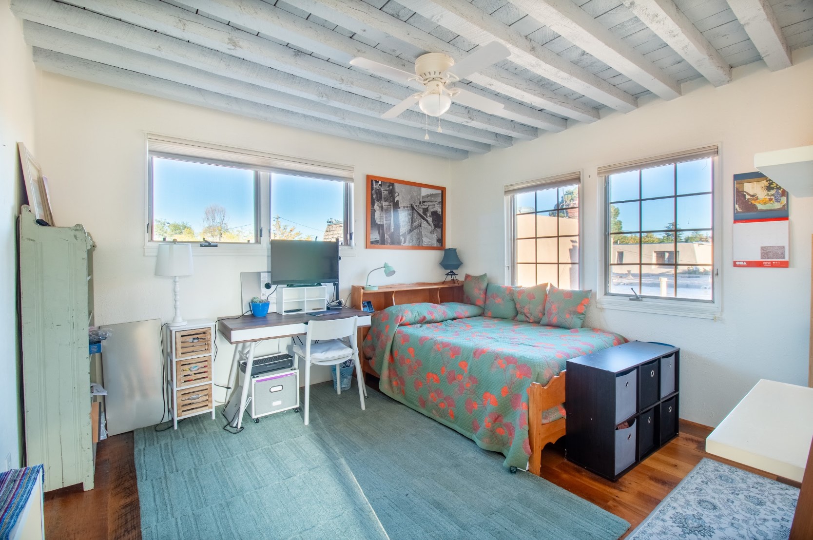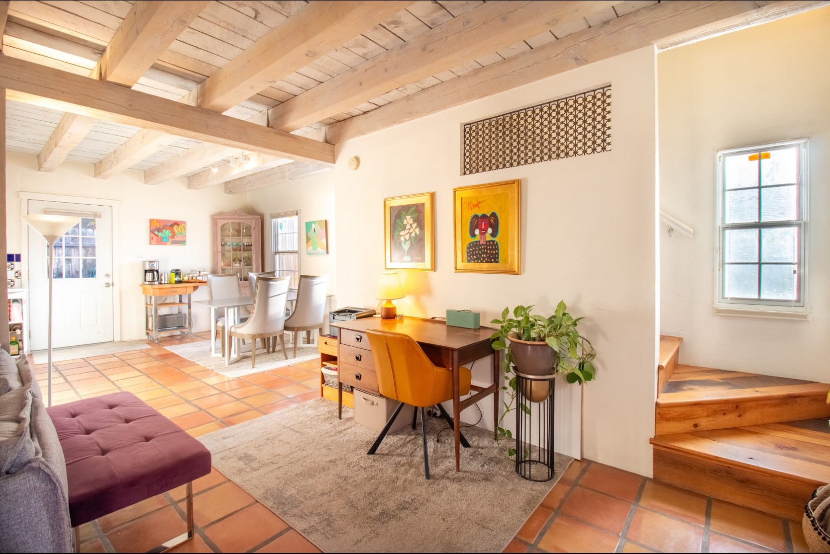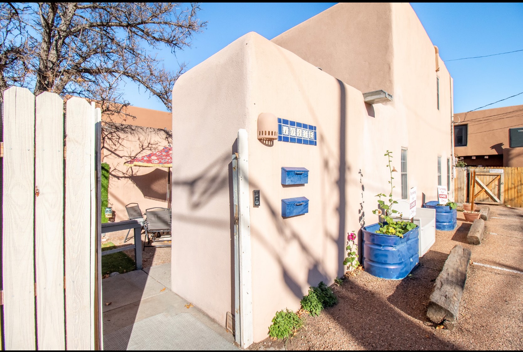 This income potential, light commercial or residential use property can function as one large home, two separate residences/rentals or a live/work setup. With an established rental history and an operating successful business, it presents a unique opportunity for investors, entrepreneurs, or those seeking a flexible lifestyle in one of Santa Fe's most desirable areas. Located in the South Capitol neighborhood and the Wood Gormley School District, this charming and versatile 3-bedroom, 2-bath, 1,771-square-foot condo offers flexibility, comfort, and business income opportunity. This upgraded home features classic Santa Fe style with Saltillo and Talavera tile, reclaimed oak wide-plank flooring, French doors, skylights, beams, and a kiva fireplace. The main level includes open living and dining areas that flow into a remodeled kitchen and a sunny south-facing courtyard--perfect for entertaining or relaxing. Upstairs, two bright bedrooms and a full bath offer comfortable private spaces. The attached unit on the first floor has its own private gated entrance, kitchen/living space, bedroom, flex room, and bath, making it ideal for guests, tenants, or a separate small business. Additional highlights include mini-splits, a new furnace, private laundry area, extra storage, and dedicated parking spaces. Conveniently located near downtown, South Capitol Rail Runner station, Clafoutis, Trader Joe's, parks and many of Santa Fe's best restaurants, this property blends charm, versatility, and location in a way that's rarely available.