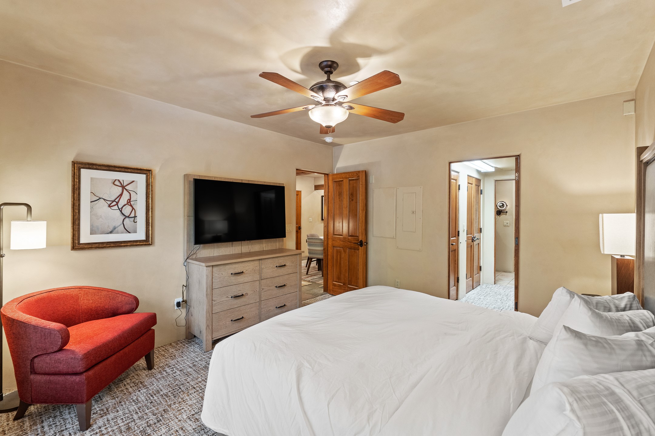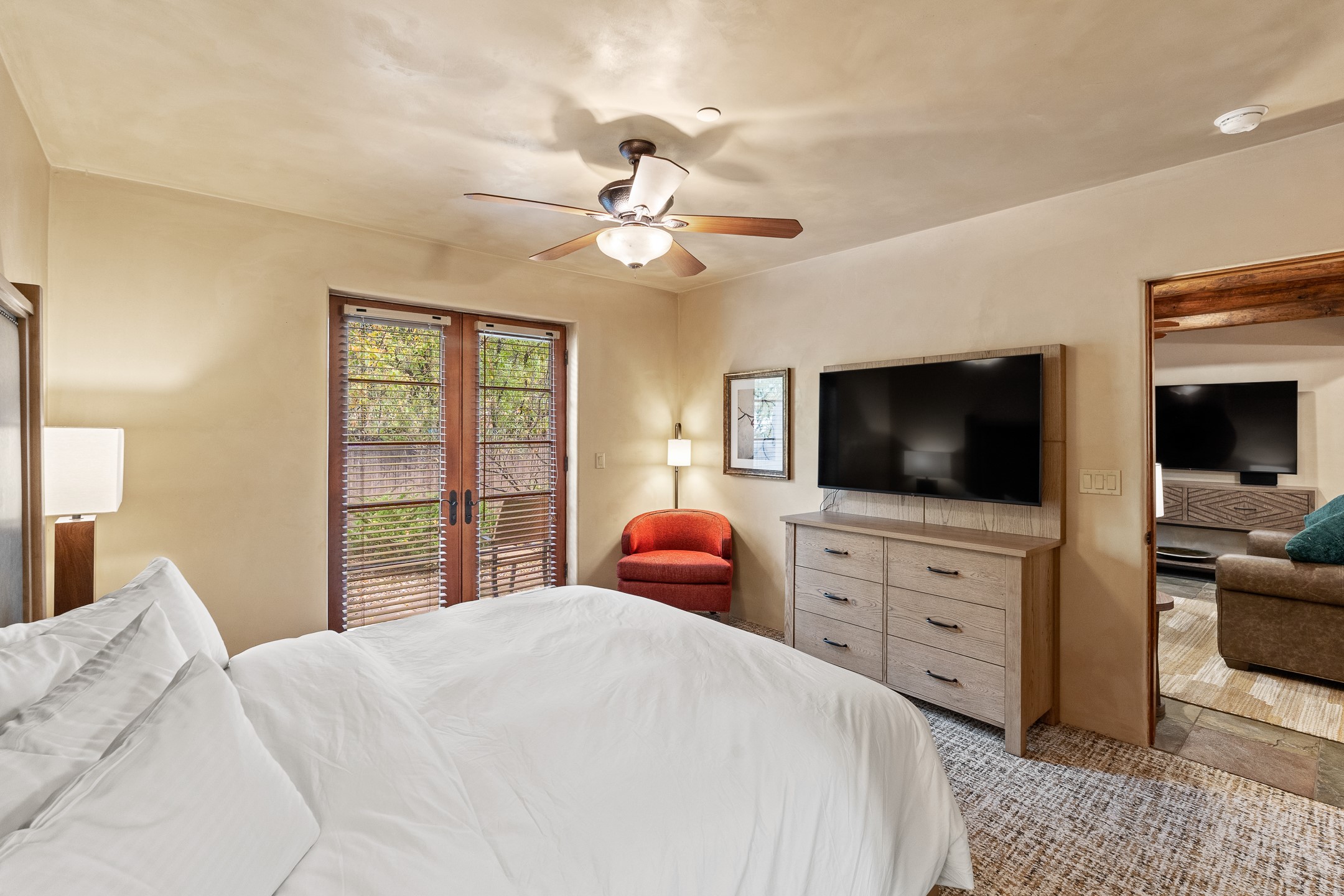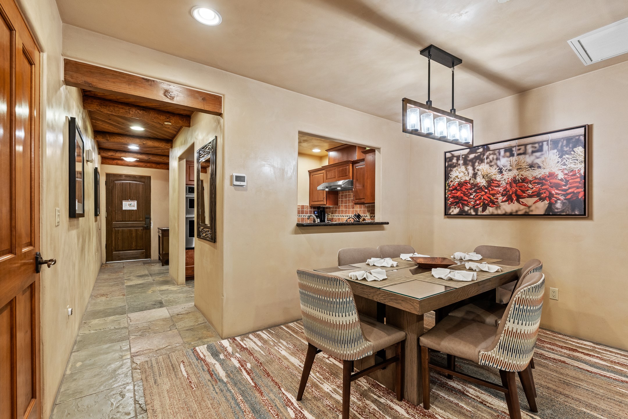 This is a fractional ownership offering: Eighth Share Estate H, consisting of an undivided 12.5% (one-eighth) interest as tenant-in-common in Eighth Share Unit 48 at El Corazon de Santa Fe. It is a deeded 1/8th share in Terra floorplan #48H. Owners are entitled to 4 weeks per year, with the possibility of more time if it's available. Two luxurious bedrooms and bathrooms, 1300 sqft, all single level. There is a main living room with fireplace, state-of-the-art kitchen with stainless steel appliances, separate dining area, master bath with dual vanities and jetted tub, private patio, and outdoor and covered garage parking available, accessed with key code. On-site gym, beautiful outdoor gathering spaces, gated property. Walk everywhere from this condo in the heart of downtown. Owners can exchange time through the Hyatt Vacation Club and Registry Collection.
