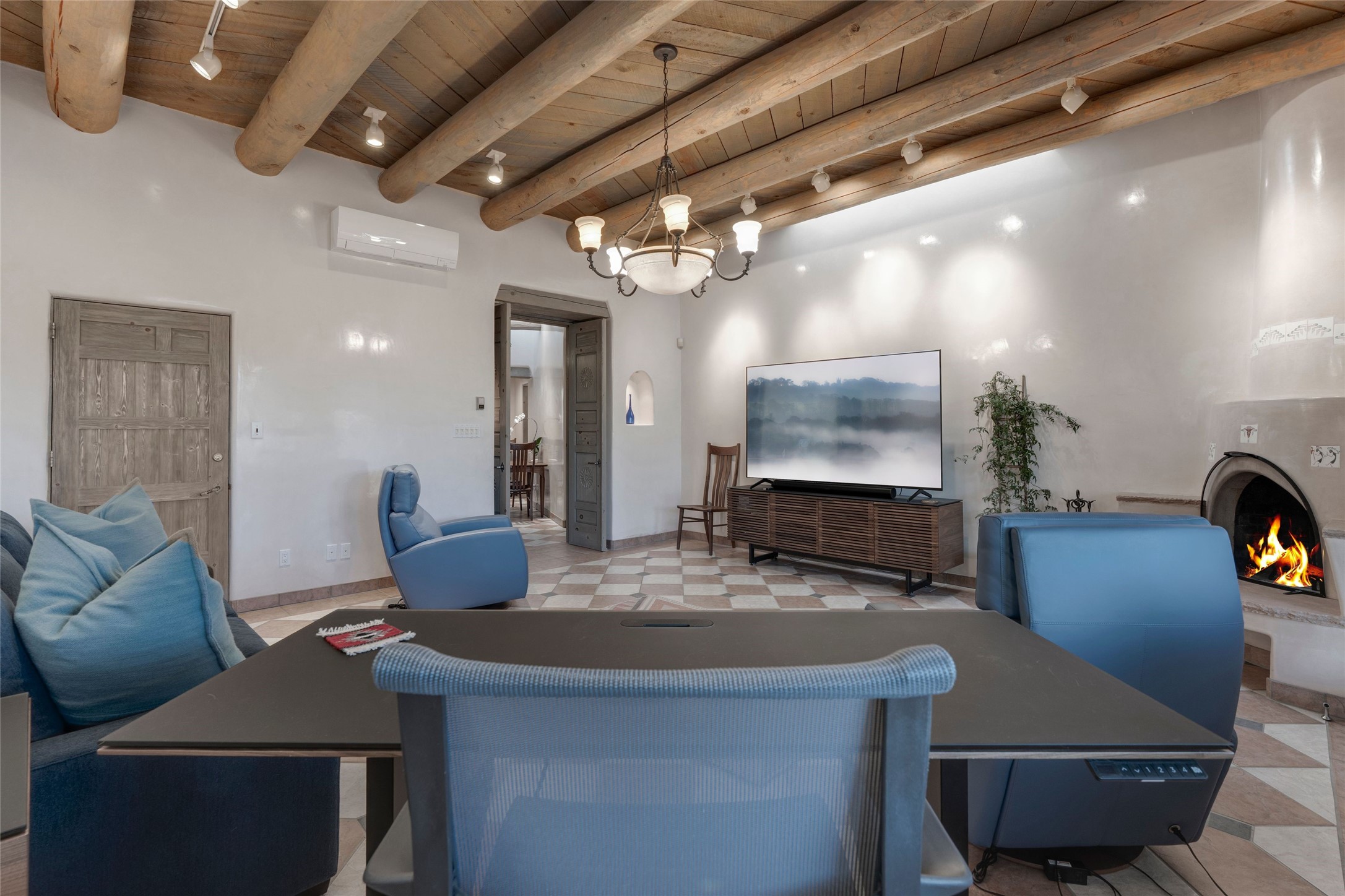 This authentic Santa Fe Home has Mountain Views and Timeless Details.Just five minutes from the Santa Fe Plaza, this classic pueblo-style home is nestled in the north hills with beautiful views of Sun and Moon Mountain. Traditional New Mexico finishes include hand-troweled plaster walls, vigas, tile and wood floors, and five kiva fireplaces throughout. The flexible floor plan offers spacious living and dining areas, two kitchens, cozy private spaces, and excellent indoor-outdoor flow. Expansive portals wrap around the home, providing multiple areas to relax and take in the surrounding mountain scenery. With no HOA and on over an acre of land there is room to expand or add a casita. Additional conveniences include a 2-car garage, air conditioning, steam shower and hot tub for star-gazing.A true blend of old-world craftsmanship and modern livability, this home captures the essence of Santa Fe style--serene, soulful, and close to everything.