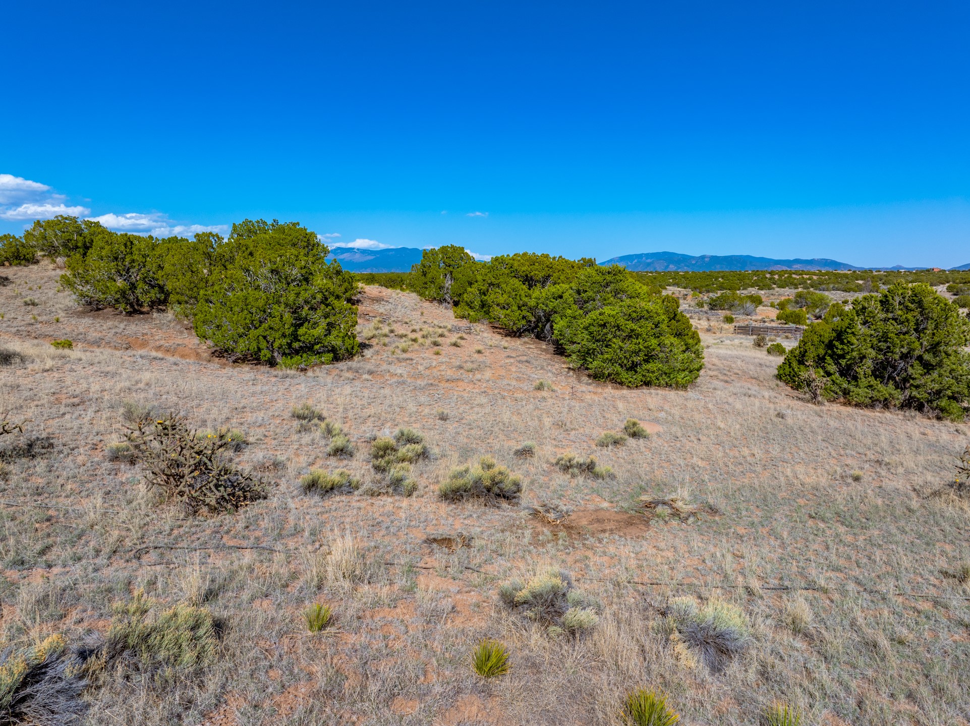 Tucked among the pinons and junipers, this peaceful property is located between rolling hills, with mountain views in the distance and privacy and quiet all around. This secluded property is located just off Caja del Rio near Las Campanas. Flat building sites and a shared well will make construction of your new home easier. Come see this magical piece of land today!