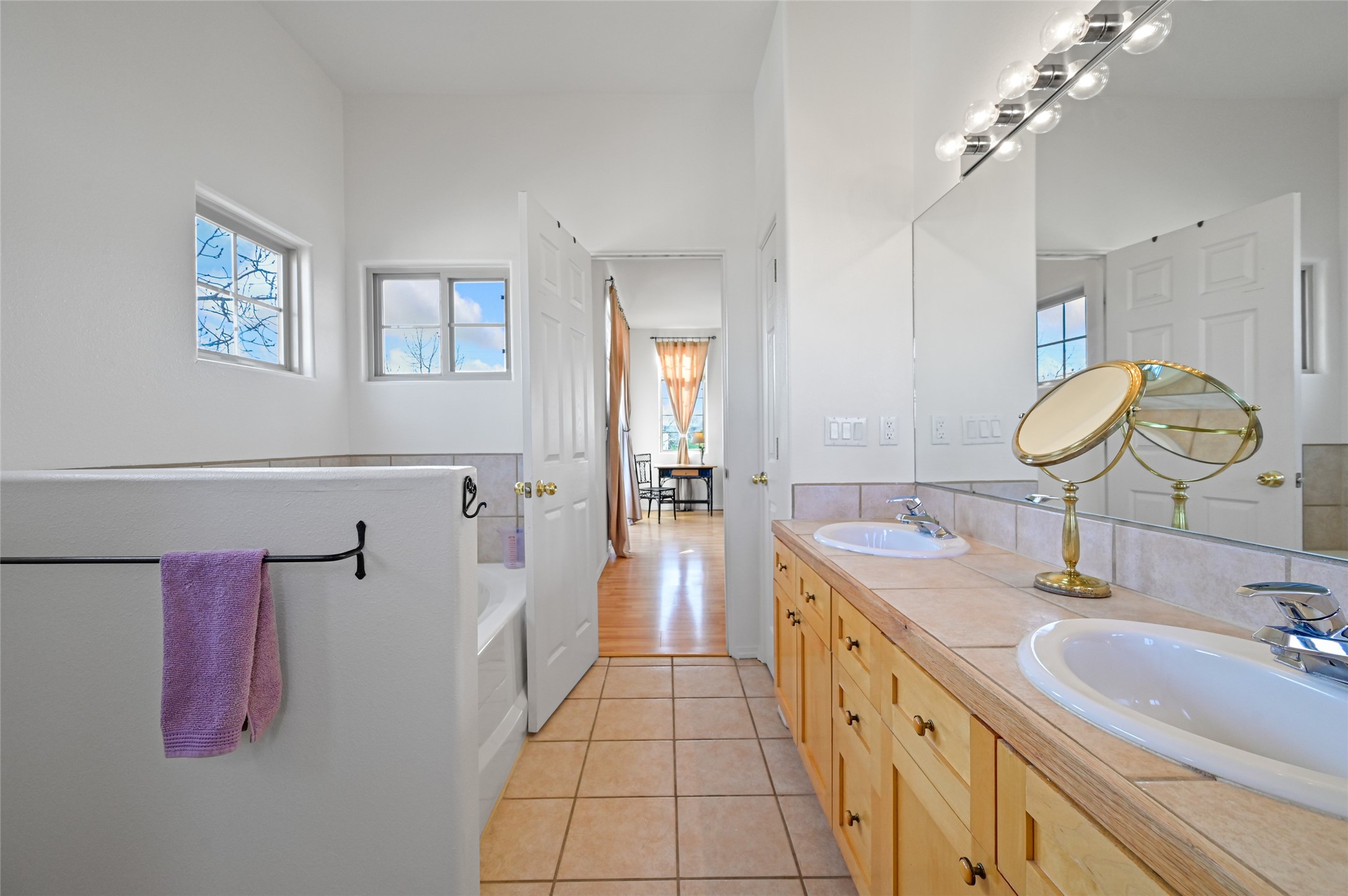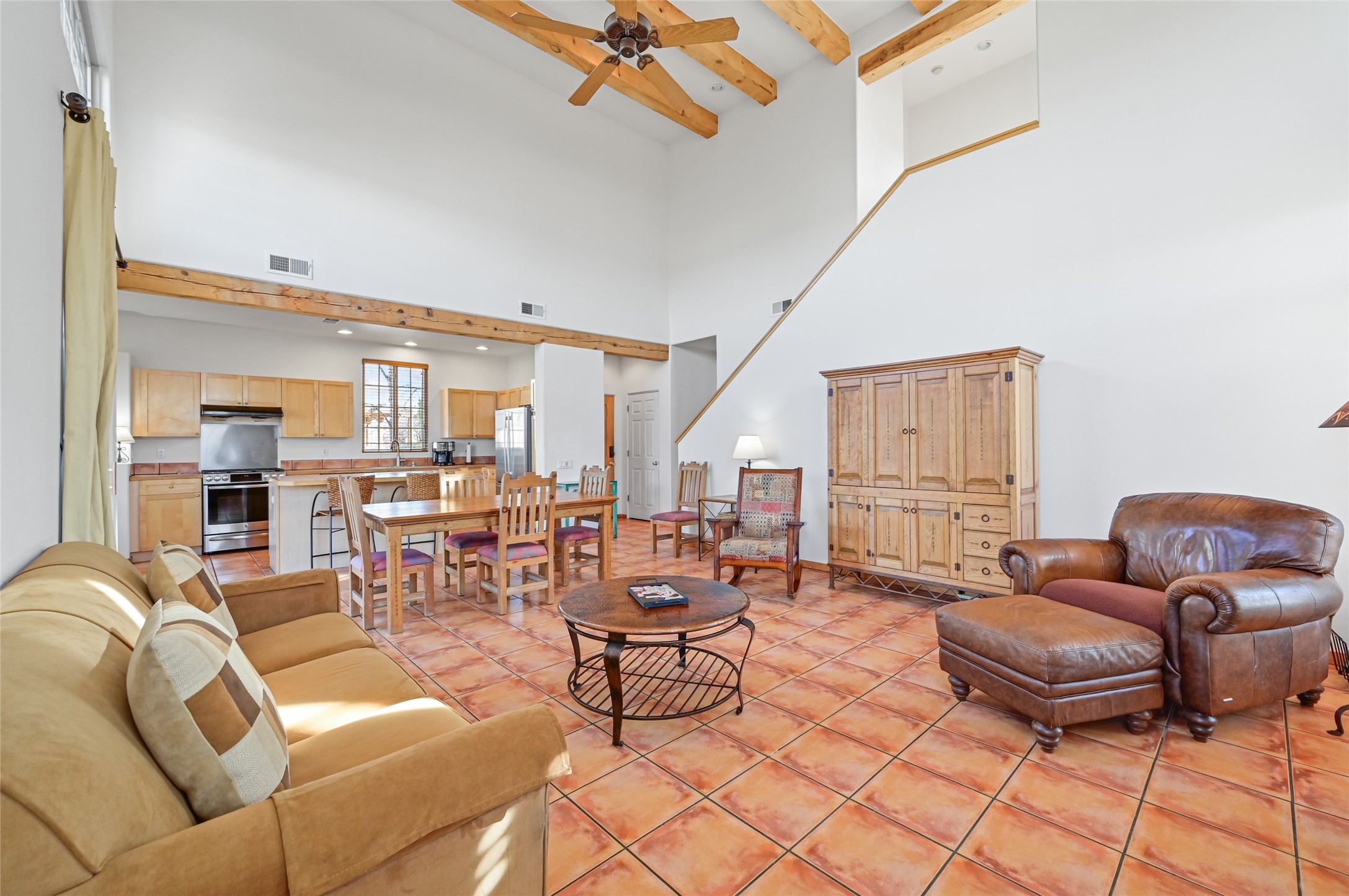 There is a comfy cozy feeling with this home. The gathering areas of the living room, dining room, kitchen and breakfast nook all flow nicely together. yet the Cathedral beamed ceilings add a feeling of elegance. Views from the two second story decks are situated to take advantage of both of Santa Fe's beautiful mountain ranges, as well as sunsets and sunrises. The club house community of Nava Ade offers an outdoor pool and hot tub (seasonal) along with locker rooms, sauna, work out room and community room. The trail system is part of the Chamisa and Las Soleras Trails which is great for walkers, runners, bikers or anyone just wanting to get out