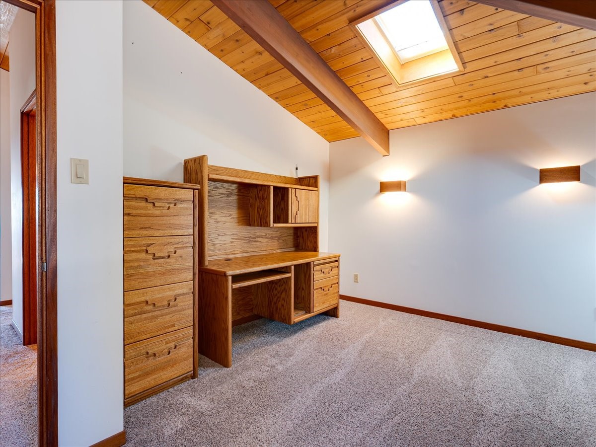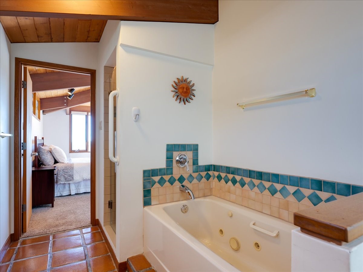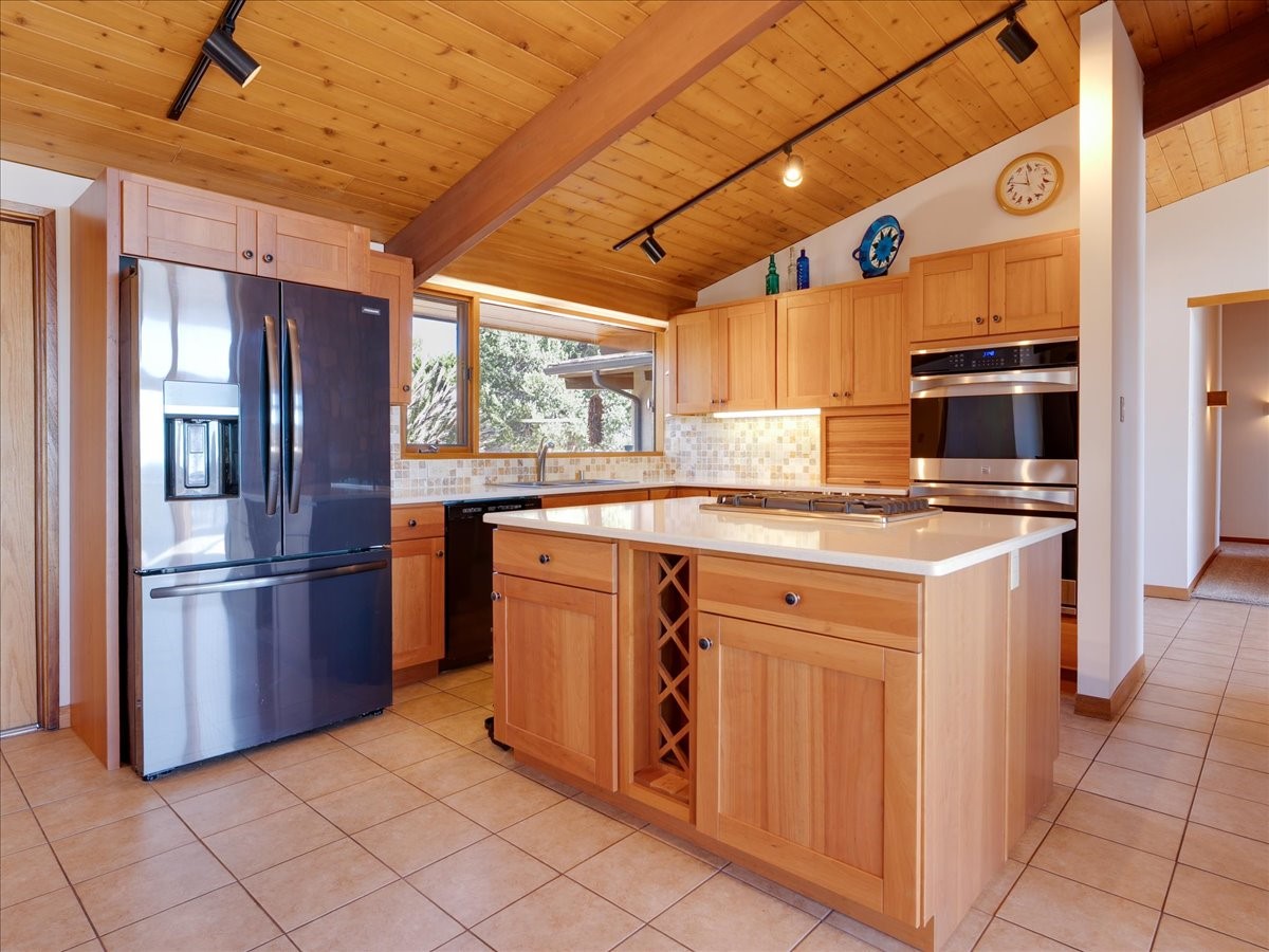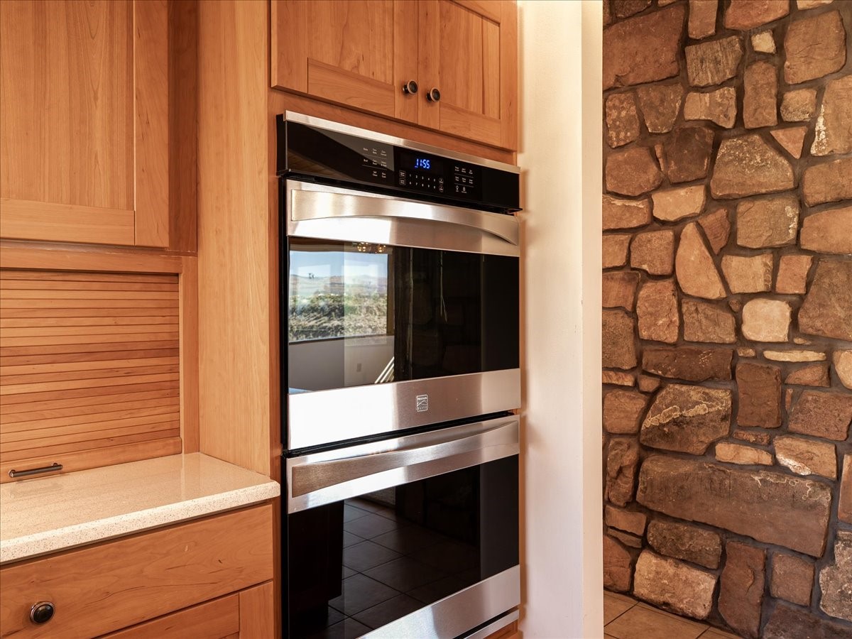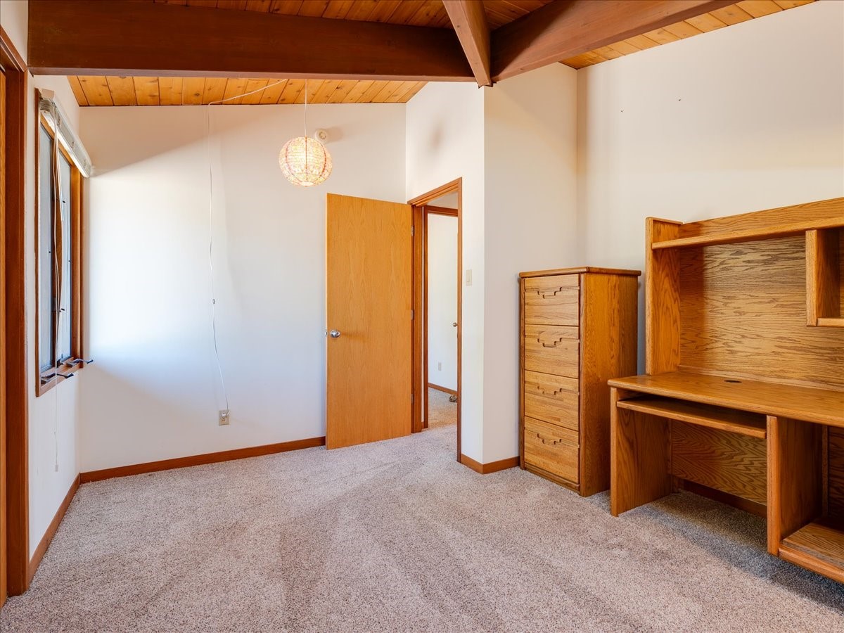 Located on prestigious Barranca Mesa, this stunning home welcomes you with immaculate landscaping and exceptional curb appeal. Inside, wood-beamed ceilings and a striking rock fireplace create a warm, natural ambiance inspired by biophilic design. Expansive picture windows frame views of Bayo Canyon. Step onto the balcony and enjoy unobstructed vistas of the Sangre de Cristo Mountains, an ideal spot for morning coffee or golden sunsets. A study or bonus room sits just off the main living area, offering flexibility for work or relaxation. The open kitchen features a large island, rich cabinetry, and abundant storage. A well-planned laundry room with additional storage and a tucked-away microwave adds to the home's thoughtful design. Wood ceilings continue through all three bedrooms, adding warmth and continuity. The sunny primary suite includes its own private balcony overlooking Bayo Canyon, a spacious walk-in closet, and a spa-like bathroom with Saltillo tile flooring. Two additional bedrooms, a full guest bath, and a powder room complete the floor plan. Enjoy year-round comfort with in-floor radiant heat and air conditioning. Picture cozy winter evenings by the fireplace as snow falls across the canyon, or quiet summer nights watching the sun dip behind the mountains. This is Mesa living at its best. Schedule a private showing today.
