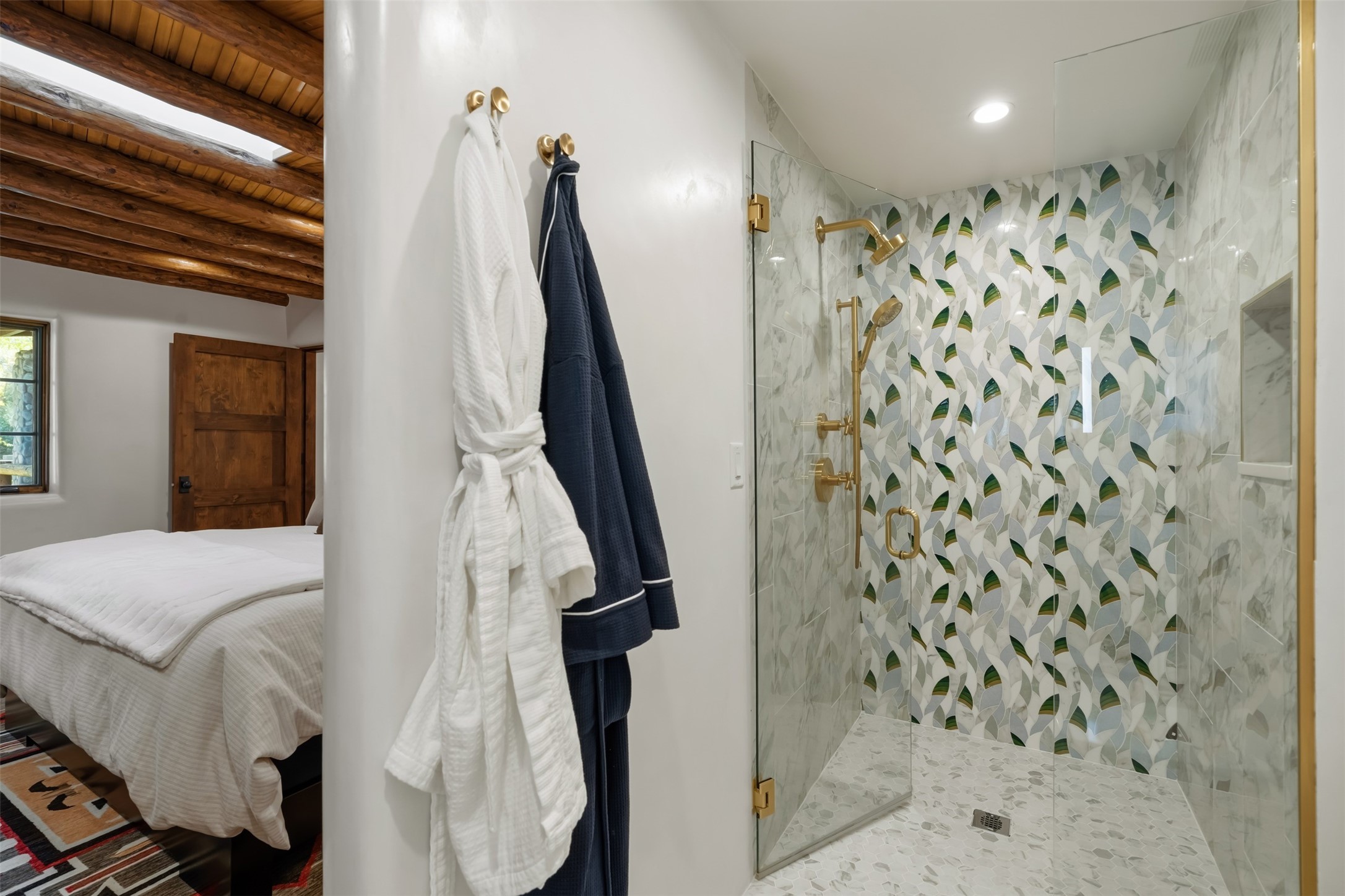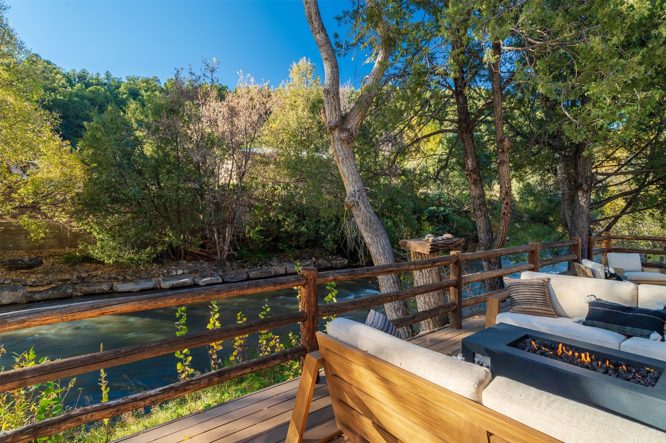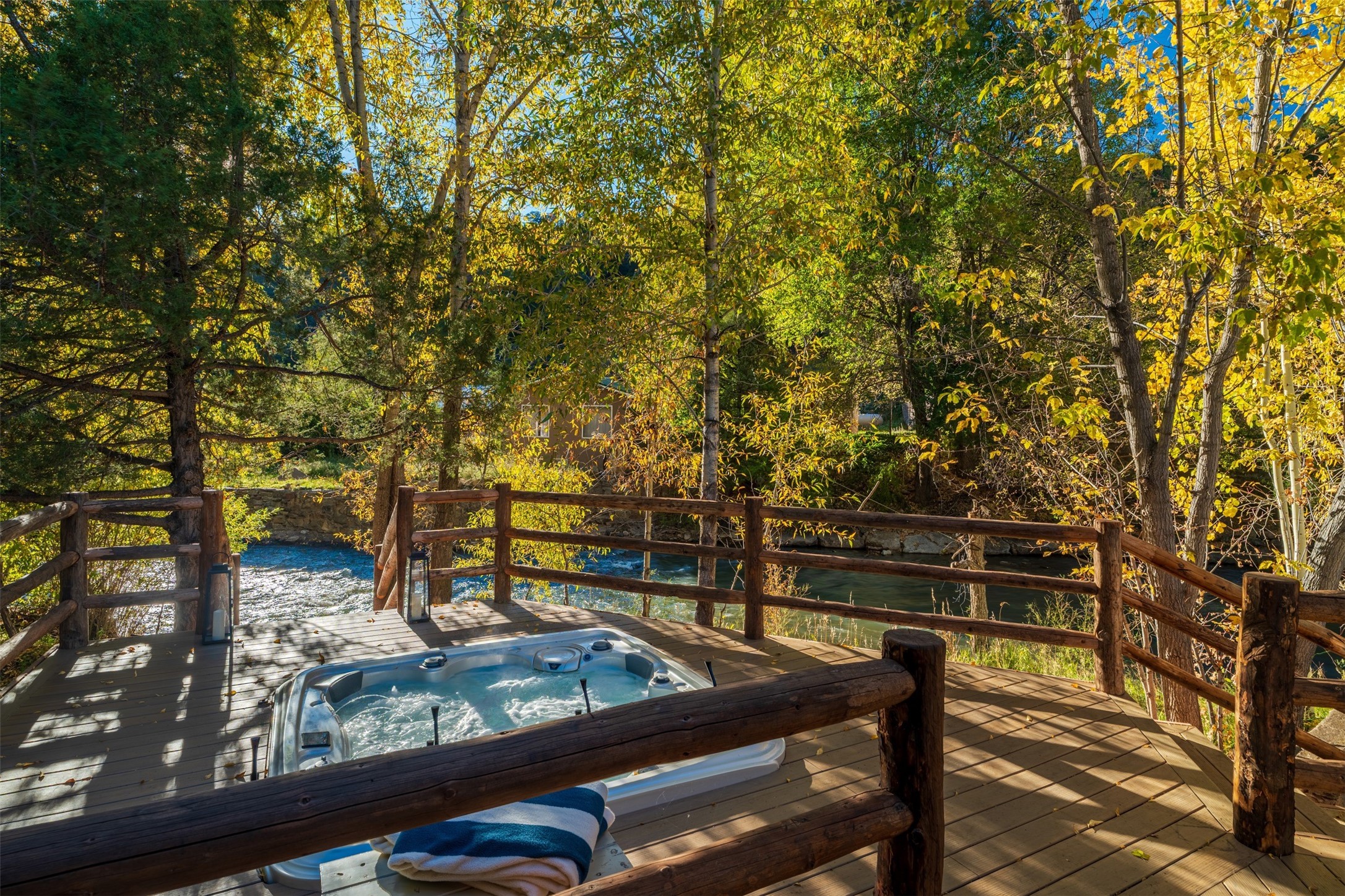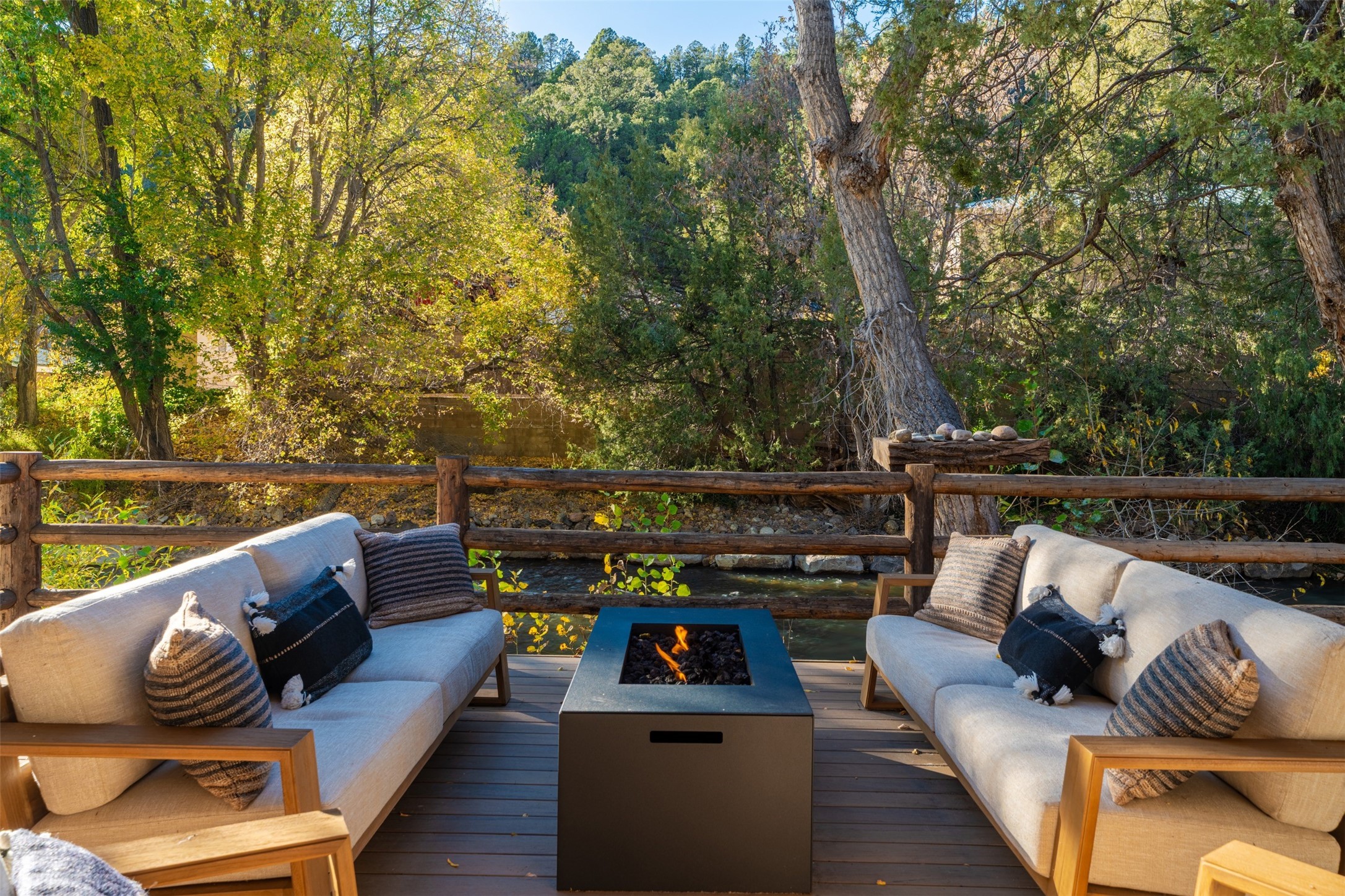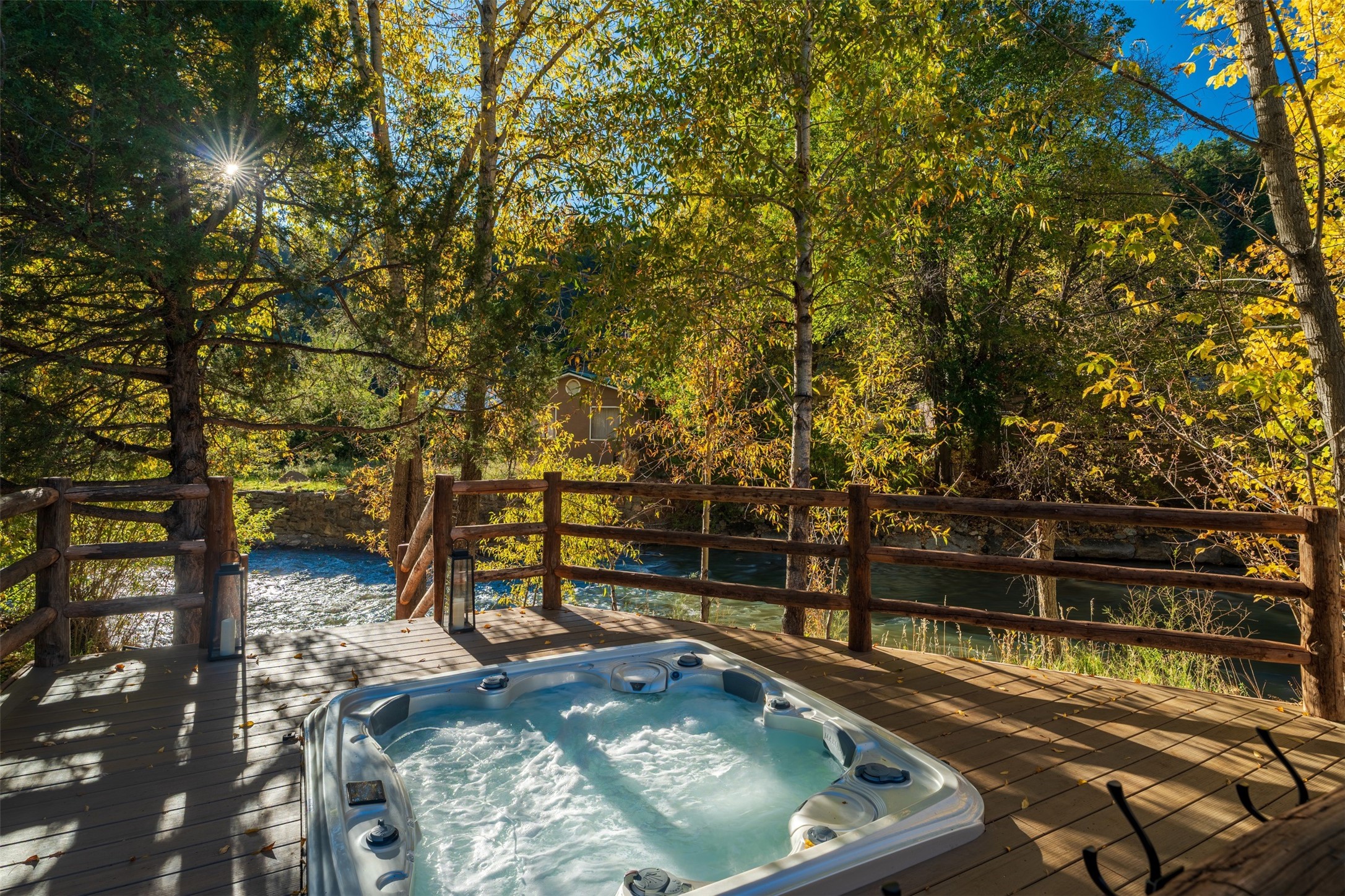 Welcome to 14 The Ledge, a rare offering in the heart of Pecos, NM, where tranquility meets luxury. This exquisite 2,439-square-foot estate is nestled on 5.35 acres of prime Pecos Riverfront, boasting 362 feet of private river access. Perfectly remodeled, this home features three ensuite bedrooms, each offering a private sanctuary for relaxation. The chef's kitchen features a large island, Sub-Zero fridge, under-counter ice maker, and Viking Tuscany range, dishwasher, and hood beautifully accented by smooth plaster walls and artisan tile throughout.Step outside to discover covered outdoor living spaces, complete with a hot tub, ideal for entertaining or unwinding amidst nature. The property is adorned with charming features such as an antique wood stove, gas kiva fireplaces, and a potbelly stove, enhancing its rustic elegance. Recent upgrades include new stucco, a new roof, and new windows, ensuring modern comfort and efficiency.The oversized finished garage provides ample space for vehicles and storage, while the additional outbuildings, make this property horse-friendly. The guest house offers studio potential, making it an artist retreat or writer's haven. A private well and new septic system further enhance the self-sufficiency of this secluded oasis.Located near the Santa Fe National Forest and Lisboa Springs, this property offers unparalleled opportunities for fly-fishing and outdoor adventures. With no HOA restrictions, this estate is perfect for seasonal or full-time living. The option to purchase furnished makes this a turnkey opportunity for discerning buyers.14 The Ledge is more than a home; it is a lifestyle. Whether you seek a peaceful retreat or an active outdoor haven, this property offers the best of Northern New Mexico living. Experience the serenity and beauty of this exceptional estate, where every detail has been thoughtfully curated for the ultimate in comfort and style.