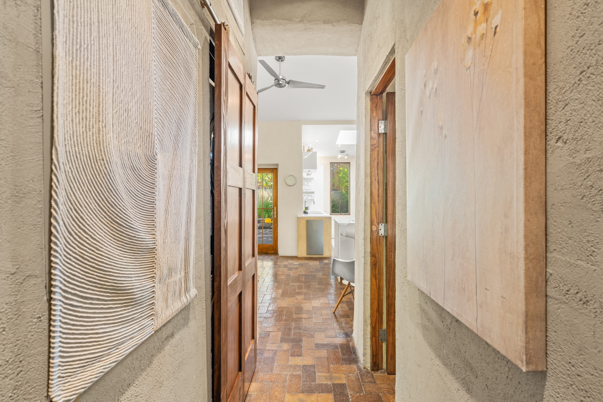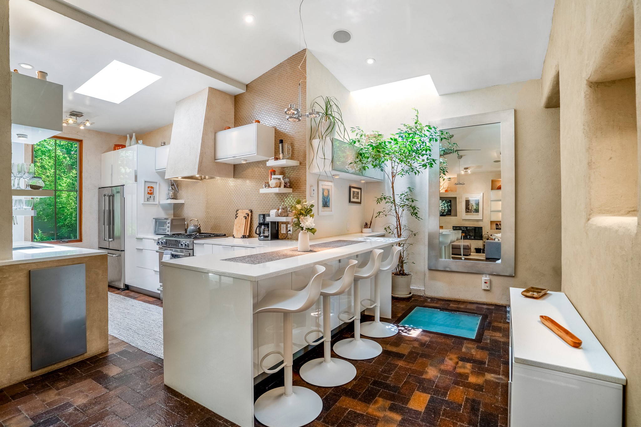 Unique Contemporary condo in one of the most convenient Santa Fe locations. You can walk to the DeVargas Mall, the historic Santa Fe Plaza or the Railyard district in just minutes !! Constructed in 2009 by award winning architect Andrea Caraballo, this 2 bedroom 2 bathroom condo has a level of fit and finish you just don't find in most condos. Old world Italian stucco meets new world modern stainless steel appliances, high end cabinets, Silestone countertops, gorgeous brick pavers and unique lighting. This property has in-floor radiant heating, central air conditioning, built-in sound system, wood / gas fireplace and a large concrete basement for storage. There are 2 outdoor living spaces with comfortable seating and a beautiful water feature. Did I mention it has 3 dedicated parking spaces? Combining the superior architectural design elements, the abundance of storage in every room, the lovely outdoor patios and the modern new mechanical systems... this is a rare beauty just waiting for the next owner.Please don't miss out on this very special property !!