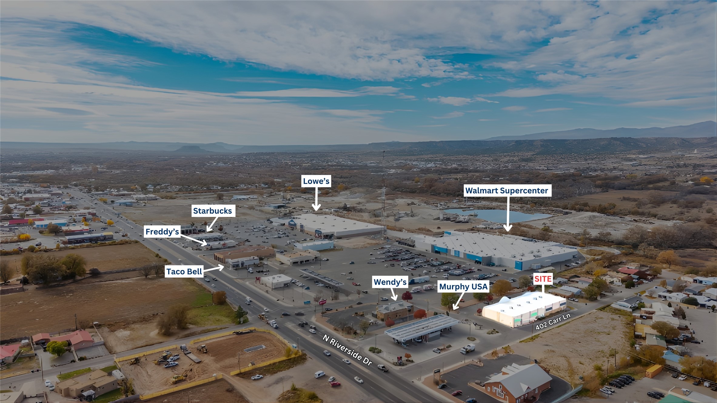 Prime retail center located in a high-traffic retail corridor shadow-anchored by Walmart and surrounded by strong national retailers, including Lowe's, Petsense, Starbucks, CVS, Walgreens and more. Excellent visibility and access from Riverside Drive, Espaola's main commercial artery. Property Overview: Suite A: +/-5,000 SF previously occupied by Rue 21. Perfect for value retail, apparel, beauty supply and soft goods operators seeking open floorplans and strong customer flow. National co-tenancy and high visibility support high-volume shopping patterns. Efficient layout with flexible demising options.Suite B: +/-9,000 SF currently occupied by Dollar Tree. Available for occupancy after 1/31/2026. Well-suited for large-format retail such as furniture, electronics, fitness concepts, auto parts, urgent care and more. High ceilings and open floorplan to support a wide range of concepts. Location & Market Advantages: Situated in a high-traffic trade area with strong traffic counts, 32,000 VPD. Excellent visibility from N Riverside Drive with easy ingress/egress.Site Features: Ample surface parking to support high customer volumes. Prominent signage opportunities on building and monument. Modern faade with strong storefront exposure.A unique opportunity to join Northern New Mexico's thriving retail hub!