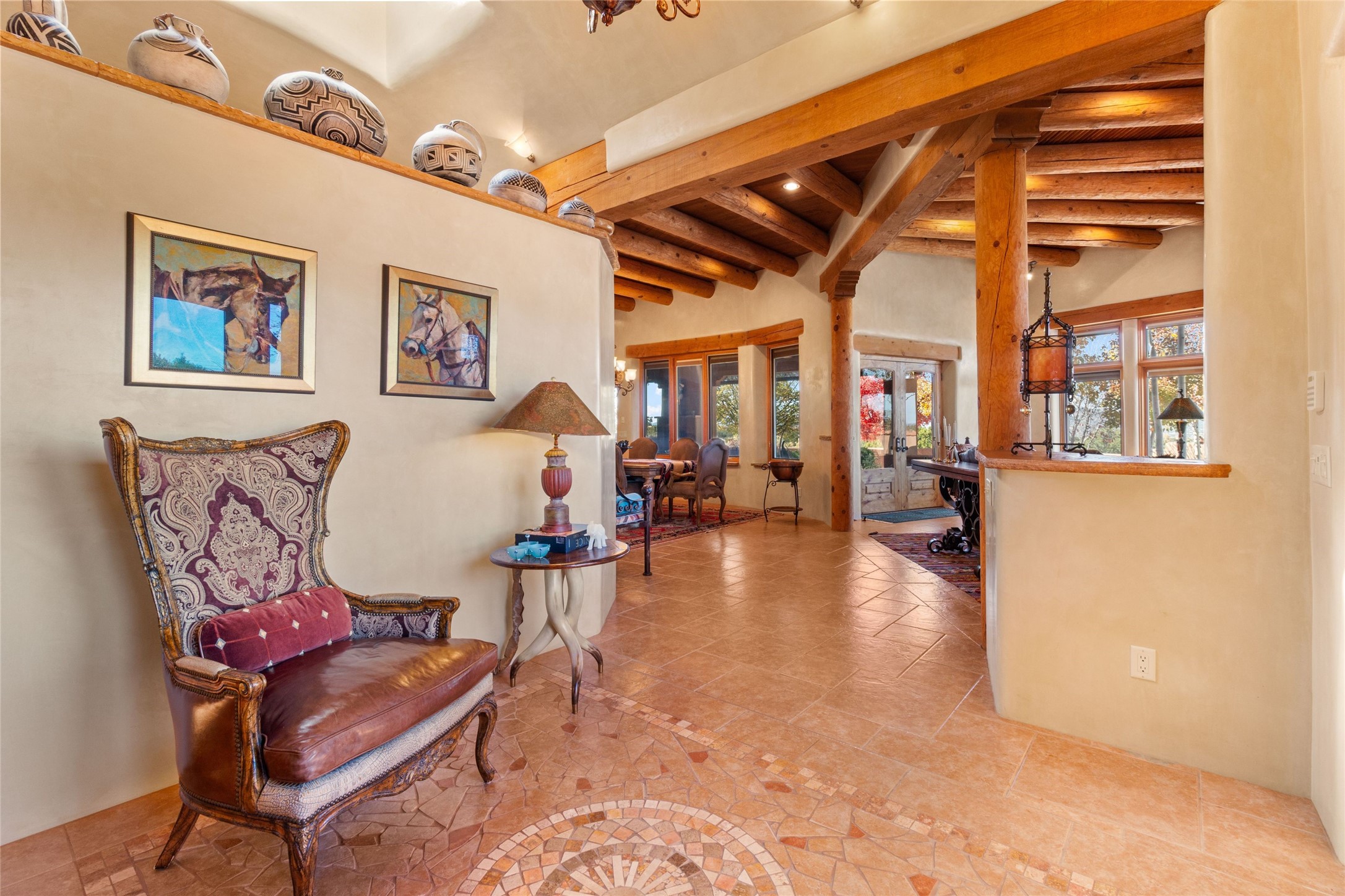 In the tree-studded rolling hills northwest of town are Las Campanas and a host of other developments and neighborhoods of larger, private lots and newer homes, most with city services and utilities. The land here sits between the city and the arroyos that carry rainwater to the Rio Grande, just a few miles west, creating a landscape almost like ocean waves rolling into shore.