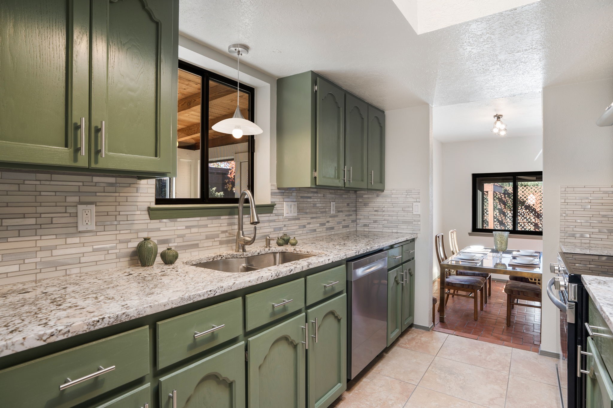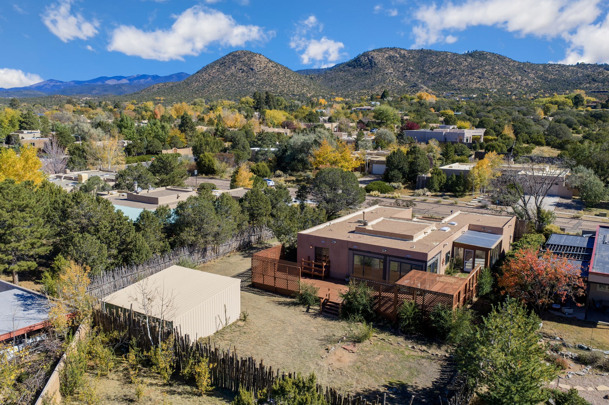 An exceptional opportunity awaits in one of Santa Fe's most cherished communities, DeVargas Heights. The floor plan is both practical and elegant with the separate dining room off the updated Kitchen, including new granite countertops. The inviting living area features a warm wood-beamed ceiling and a charming fireplace, setting a distinctly Santa Fe tone. Three bedrooms and two fully renovated bathrooms offer a blend of modern luxury and neighborhood charm.Enjoy year-round light in the large sunroom that provides a seamless transition to an expansive wrap-around deck and large backyard. Additional highlights include drivable access to the backyard and a flex room located conveniently off the garage, adaptable to your specific needs Best of all, this tranquil retreat is conveniently located less than 4 miles from the vibrant Santa Fe Plaza.