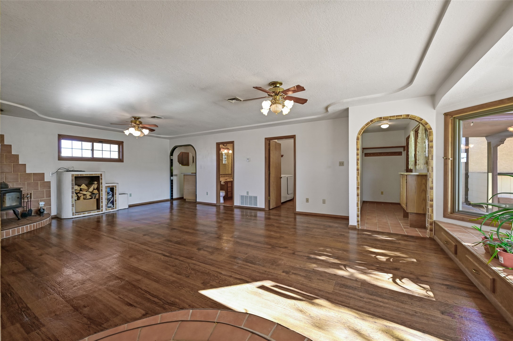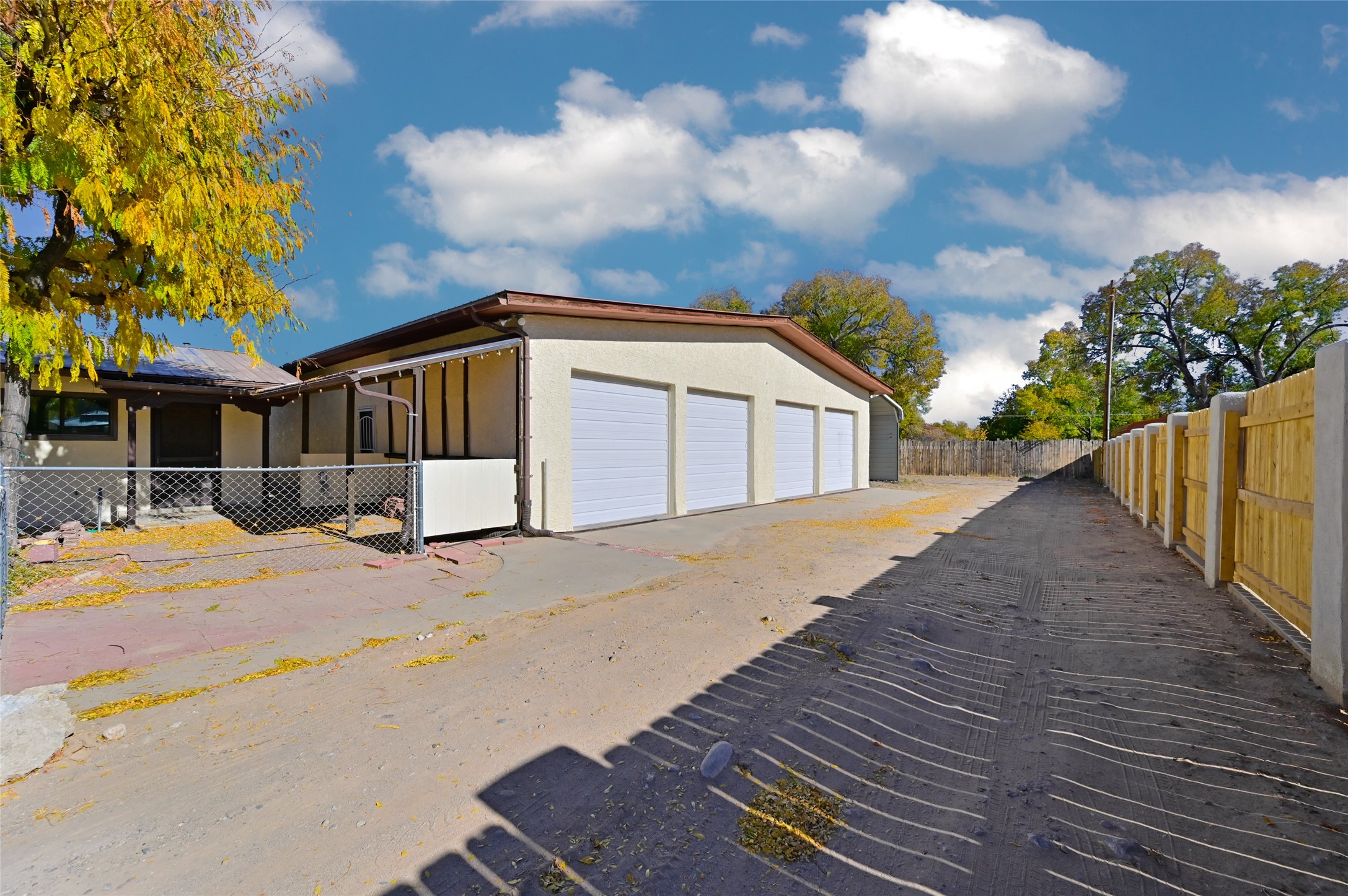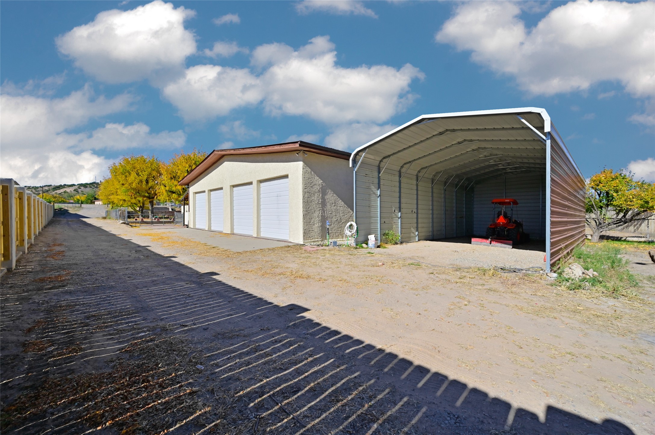 Discover a spacious and well-maintained 3-bedroom, 3-bath home with a 5-car garage, workshop, and RV parking--perfectly situated just north of Espaola. This 2,727 SF single-family home on a -acre lot offers exceptional space, versatility, and convenience in a peaceful Northern New Mexico setting. Inside, you'll find three bedrooms and three full bathrooms with a thoughtfully designed layout that provides comfortable, separate living areas. There is a wood-burning stove in the primary bedroom. The great room features updated flooring, recently replaced bay windows with Anderson windows, a wood-burning stove, mudroom, and wet bar. The laundry room includes a washer and dryer for added convenience. Perfect for car enthusiasts or hobbyists, the property includes a spacious 5-car garage with a dedicated workshop area and additional storage. There's also covered RV parking under a large carport next to the garage, along with ample extra parking for guests or equipment.The property is gated for privacy and security, and the yard is fenced. The entire -acre lot is fully enclosed together with the adjacent commercial property, which is also available for purchase (see MLS #202504908). Enjoy the best of both worlds--peaceful country living with easy access to Espaola's shops and amenities, plus short commutes to Los Alamos and Santa Fe. This home offers space, function, and opportunity--ideal for those seeking a flexible Northern New Mexico property with room to grow. New septic system installed September 2025.