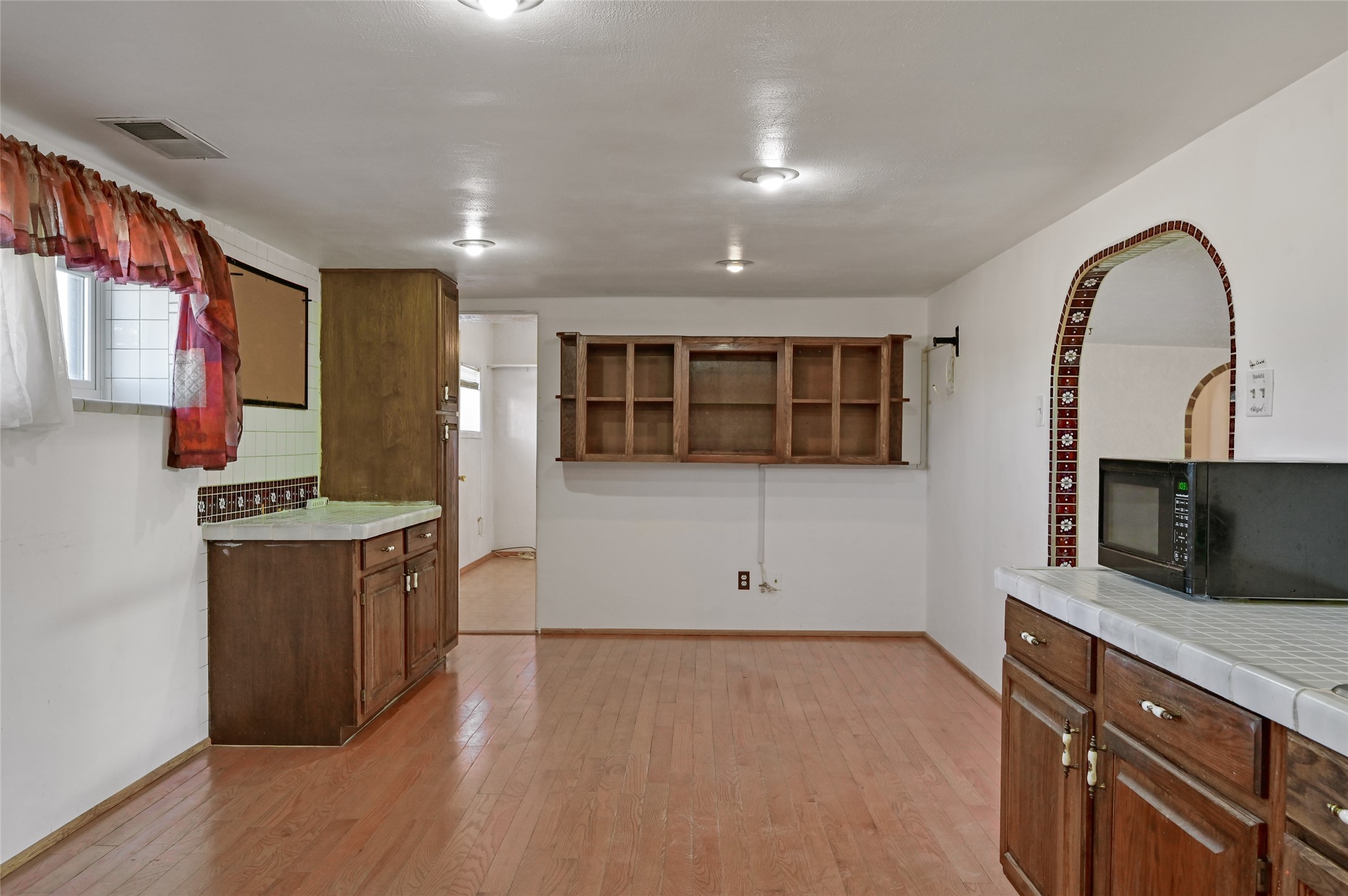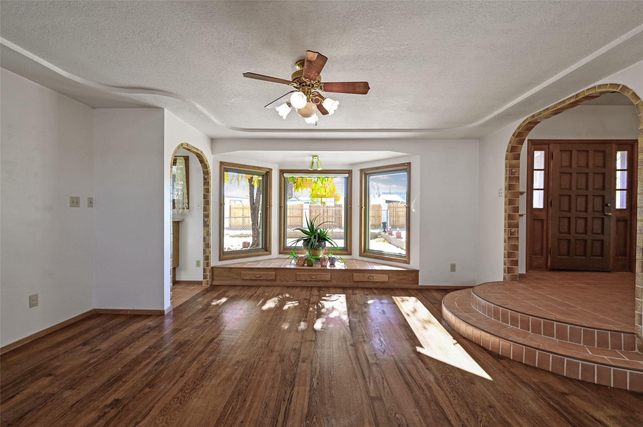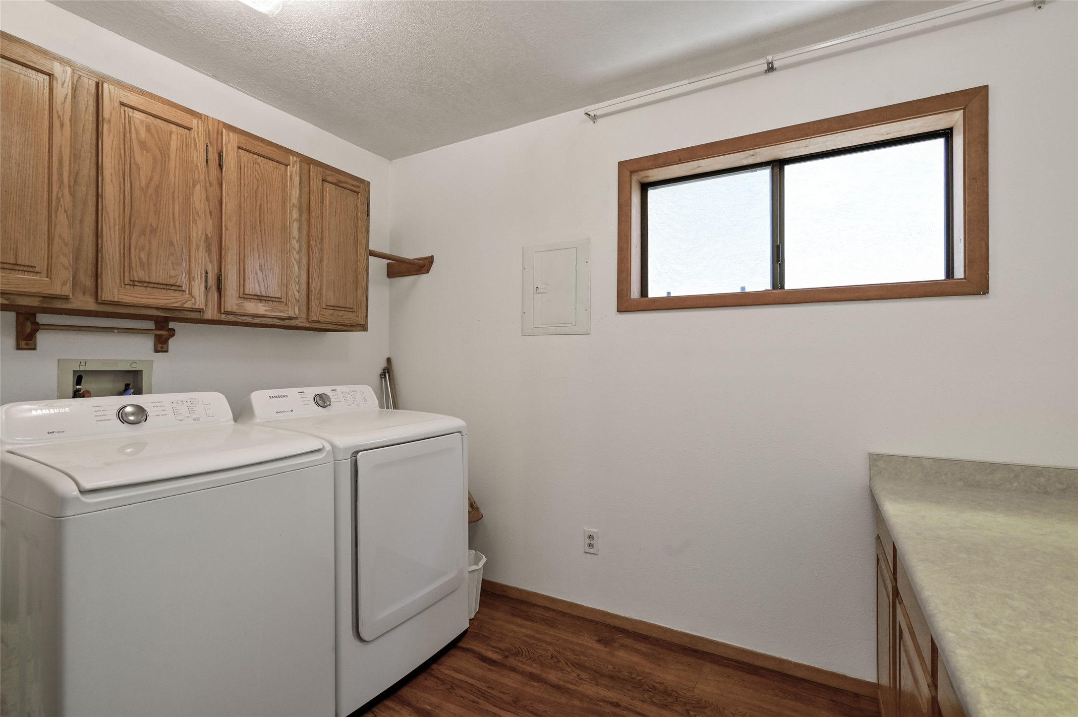 Discover a spacious and well-maintained 3-bedroom, 3-bath home with a 5-car garage, workshop, and RV parking--perfectly situated just north of Espaola. This 2,727 SF single-family home on a -acre lot offers exceptional space, versatility, and convenience in a peaceful Northern New Mexico setting. Inside, you'll find three bedrooms and three full bathrooms with a thoughtfully designed layout that provides comfortable, separate living areas. There is a wood-burning stove in the primary bedroom. The great room features updated flooring, recently replaced bay windows with Anderson windows, a wood-burning stove, mudroom, and wet bar. The laundry room includes a washer and dryer for added convenience. Perfect for car enthusiasts or hobbyists, the property includes a spacious 5-car garage with a dedicated workshop area and additional storage. There's also covered RV parking under a large carport next to the garage, along with ample extra parking for guests or equipment.The property is gated for privacy and security, and the yard is fenced. The entire -acre lot is fully enclosed together with the adjacent commercial property, which is also available for purchase (see MLS #202504908). Enjoy the best of both worlds--peaceful country living with easy access to Espaola's shops and amenities, plus short commutes to Los Alamos and Santa Fe. This home offers space, function, and opportunity--ideal for those seeking a flexible Northern New Mexico property with room to grow. New septic system installed September 2025.